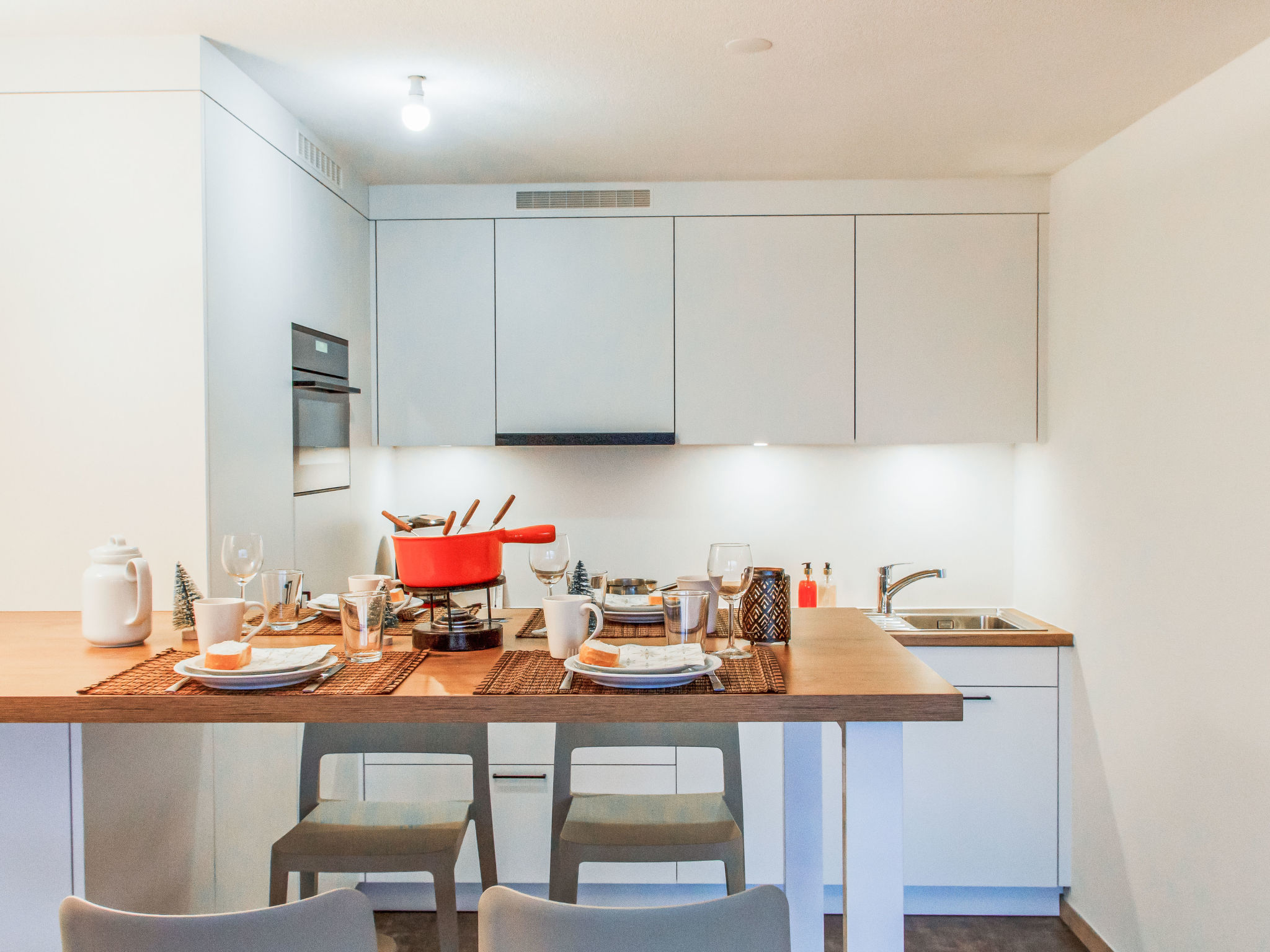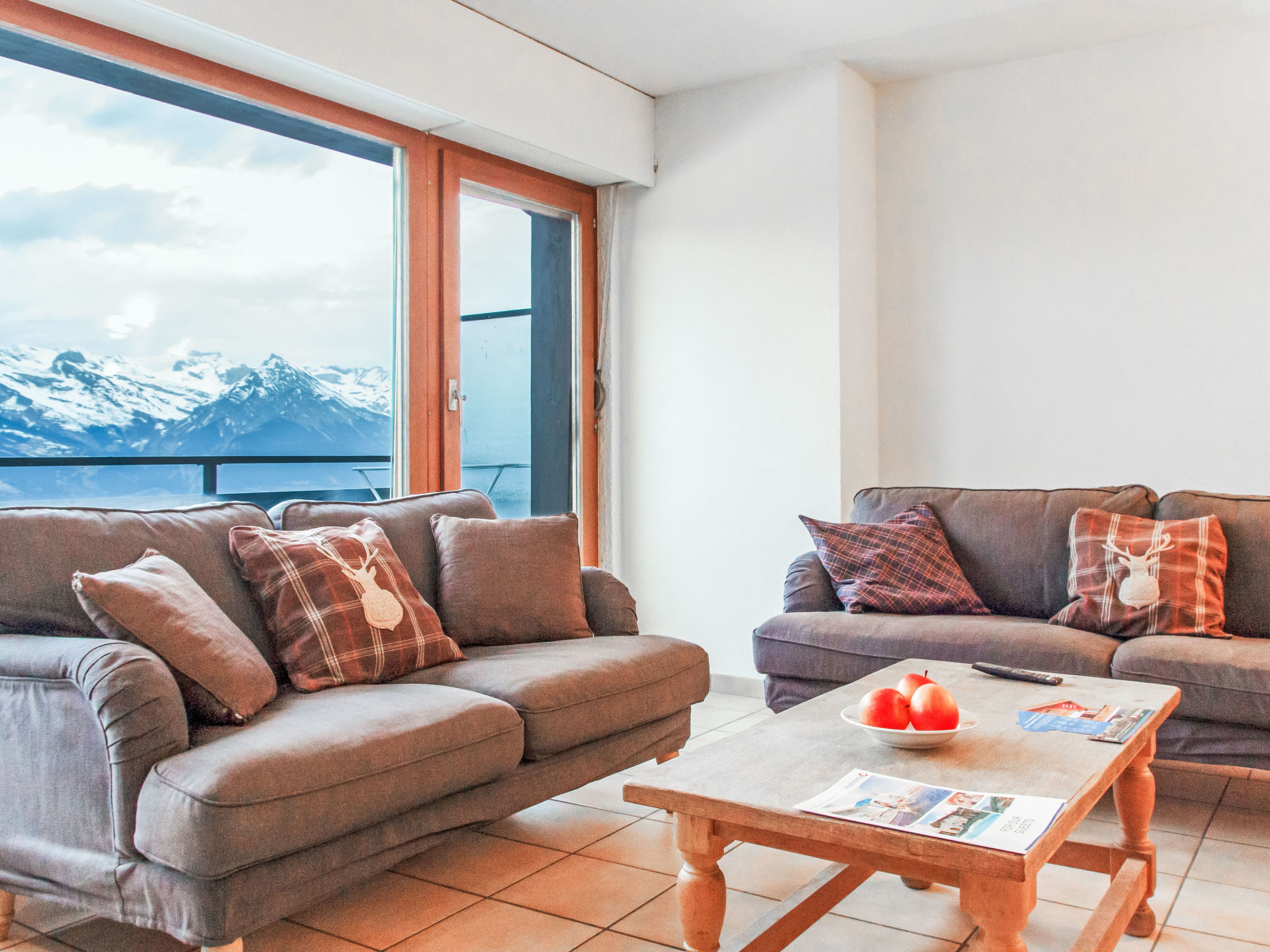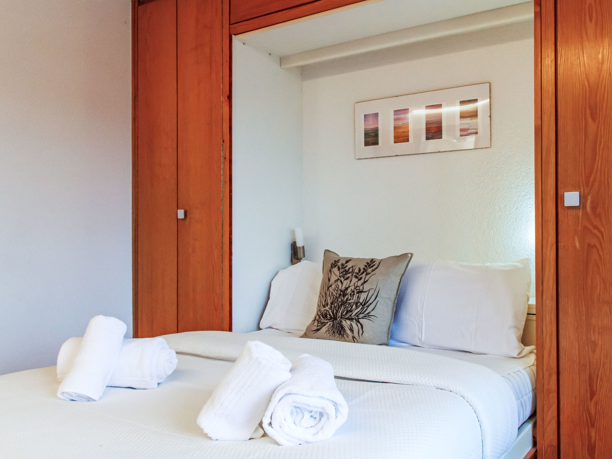 "Christiania I G8", 2-Zimmer-Wohnung 42 m2 im 8. Stock. Eingang mit 1 x 2 Etagenbetten (80 cm, Länge 180 cm). Wohn-/Esszimmer mit Kabel-TV und DVD. Ausgang zum Balkon. 1 Zimmer mit 1 franz. Wandschrankbett (140 cm, Länge 190 cm). Kochnische (Backofen, Fondue Set (Käse)). Bad/WC. Balkon, Nordlage. Schöne Sicht auf die Berge und das Tal. Bitte beachten: Nichtraucher-Unterkunft, kein Parkplatz.