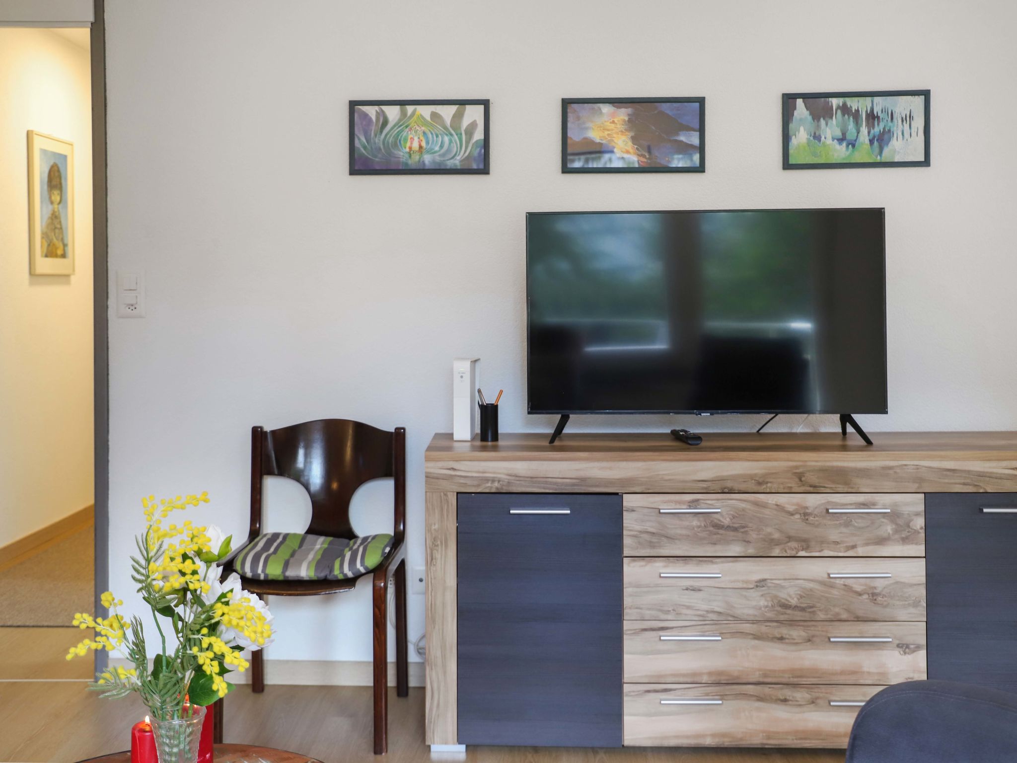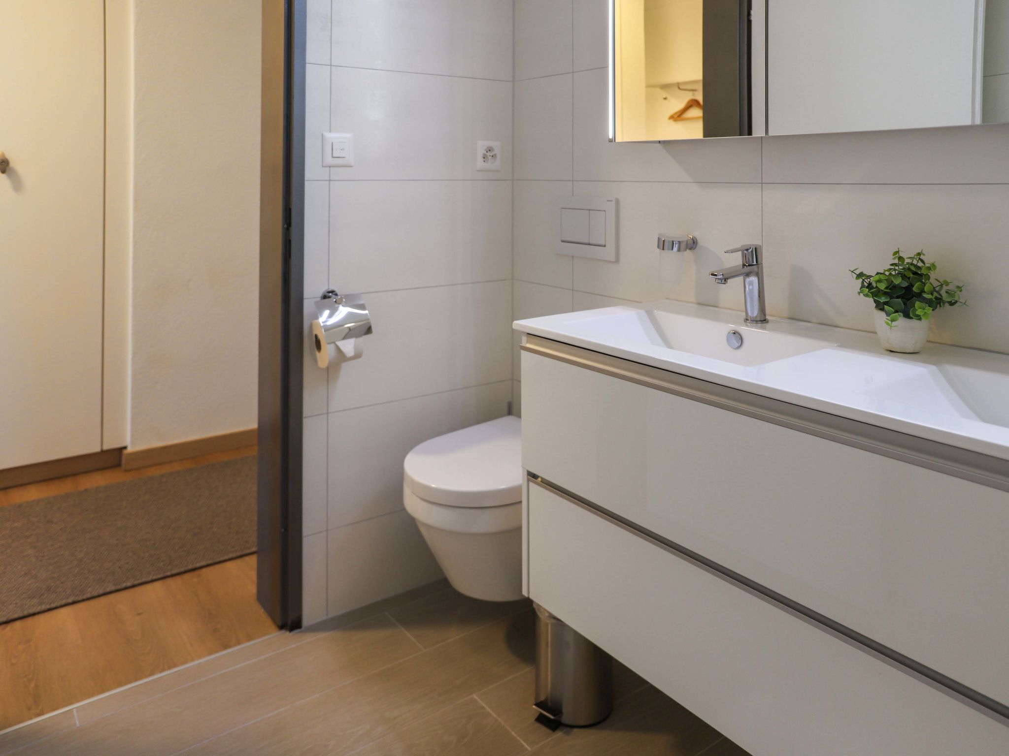 3-Zimmer-Wohnung 80 m2 im 3. Stock, Ostlage. Zweckmässig eingerichtet: Wohn-/Esszimmer mit 1 Diwanbett und Kabel-TV. 1 Zimmer mit 1 Doppelbett (2 x 90 cm). 1 Zimmer mit 2 Betten (90 cm). Küche (4 Kochplatten, Backofen, Geschirrspüler). Bad oder Dusche/WC, Doppelwaschbecken. Balkon, Ostlage. Schöne Sicht auf Park. Zur Verfügung: Internet (Wireless LAN, gratis). Parkplatz beim Haus. Bitte beachten: geeignet für Familien. Nichtraucher-Unterkunft. Apt Mit Rollstuhl max 70cm erreichbar. Badezimmer Türe 75cm.