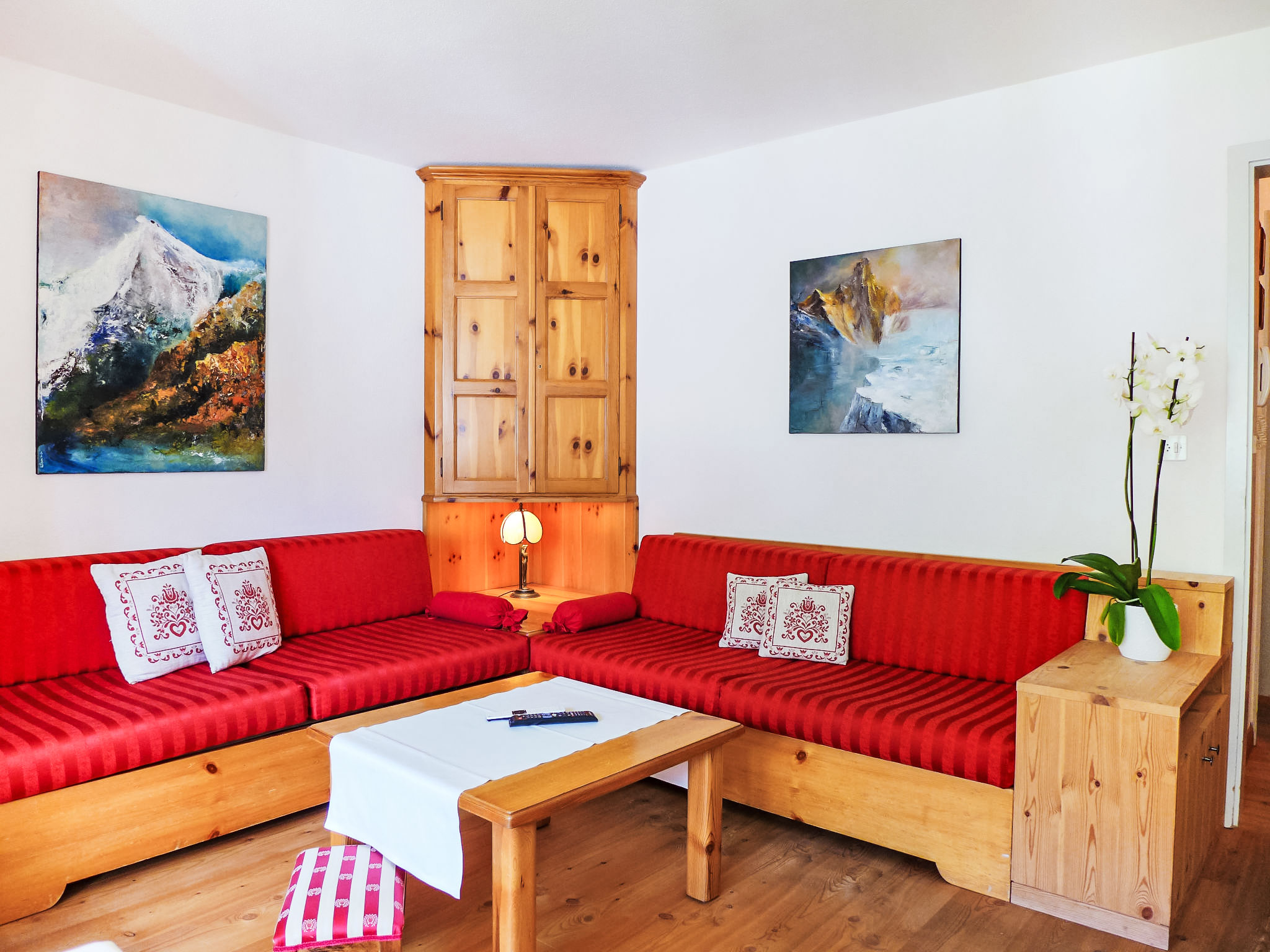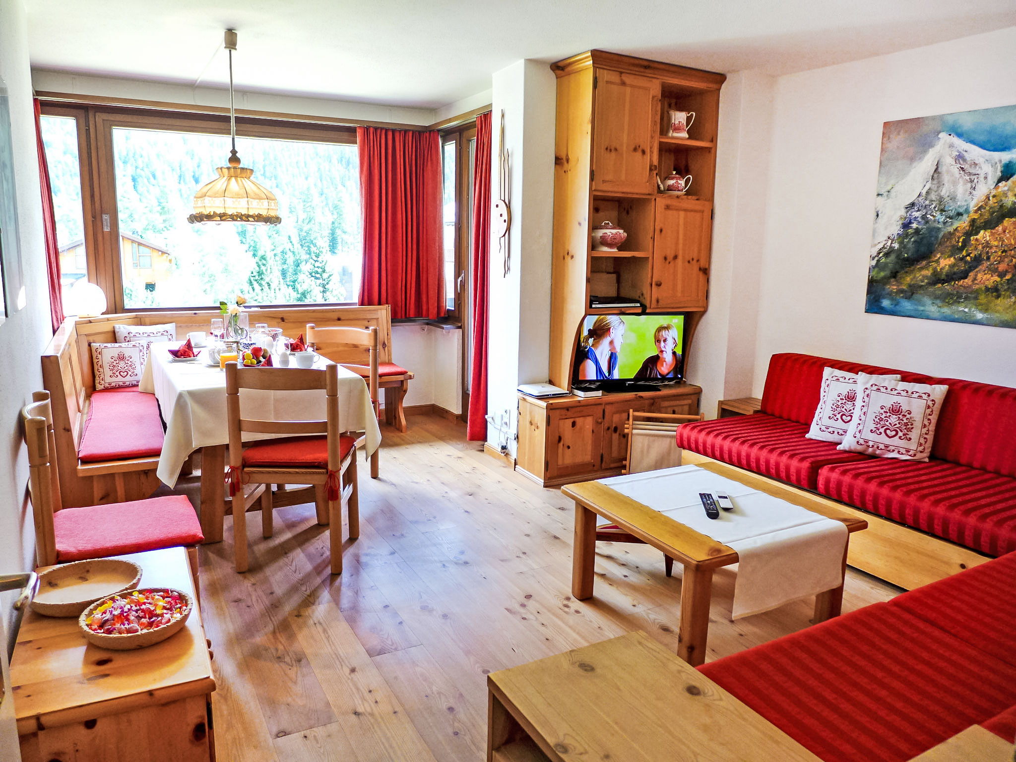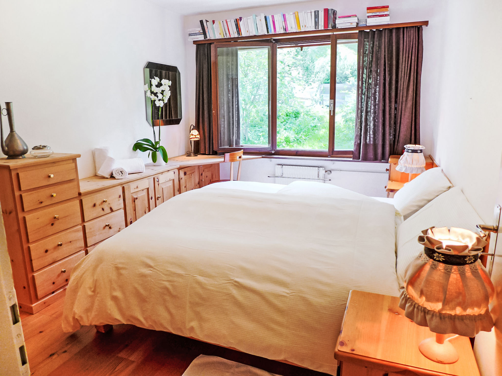 "Chesa Arlas D2", 3-Zimmer-Wohnung 70 m2 im 2. Stock. Hell, komfortabel und gemütlich eingerichtet: Wohn-/Esszimmer mit TV (Flachbildschirm), DVD. Ausgang zum Balkon. 1 Doppelzimmer mit 1 Doppelbett (2 x 90 cm, Länge 200 cm). 1 Zimmer mit 1 x 2 Etagenbetten (80 cm, Länge 190 cm). Kleine Küche (3 Kochplatten, Backofen, Geschirrspüler, Toaster, Wasserkocher, Mikrowelle, elektrische Kaffeemaschine, Kapseln für die Kaffeemaschine (Nespresso) extra). Bad/WC. Holzböden. Balkonmöbel, Liegestühle (1). Sehr schöne Panoramasicht auf die Berge und die Landschaft. Zur Verfügung: Bügeleisen, Haartrockner. Internet (Wireless LAN, gratis). Garage Nr. D2 auf dem Grundstück (1 Auto), Höhe 190 cm, Breite 210 cm. Bitte beachten: Nichtraucher-Unterkunft, Parkplatz nur für kleine Wagen.