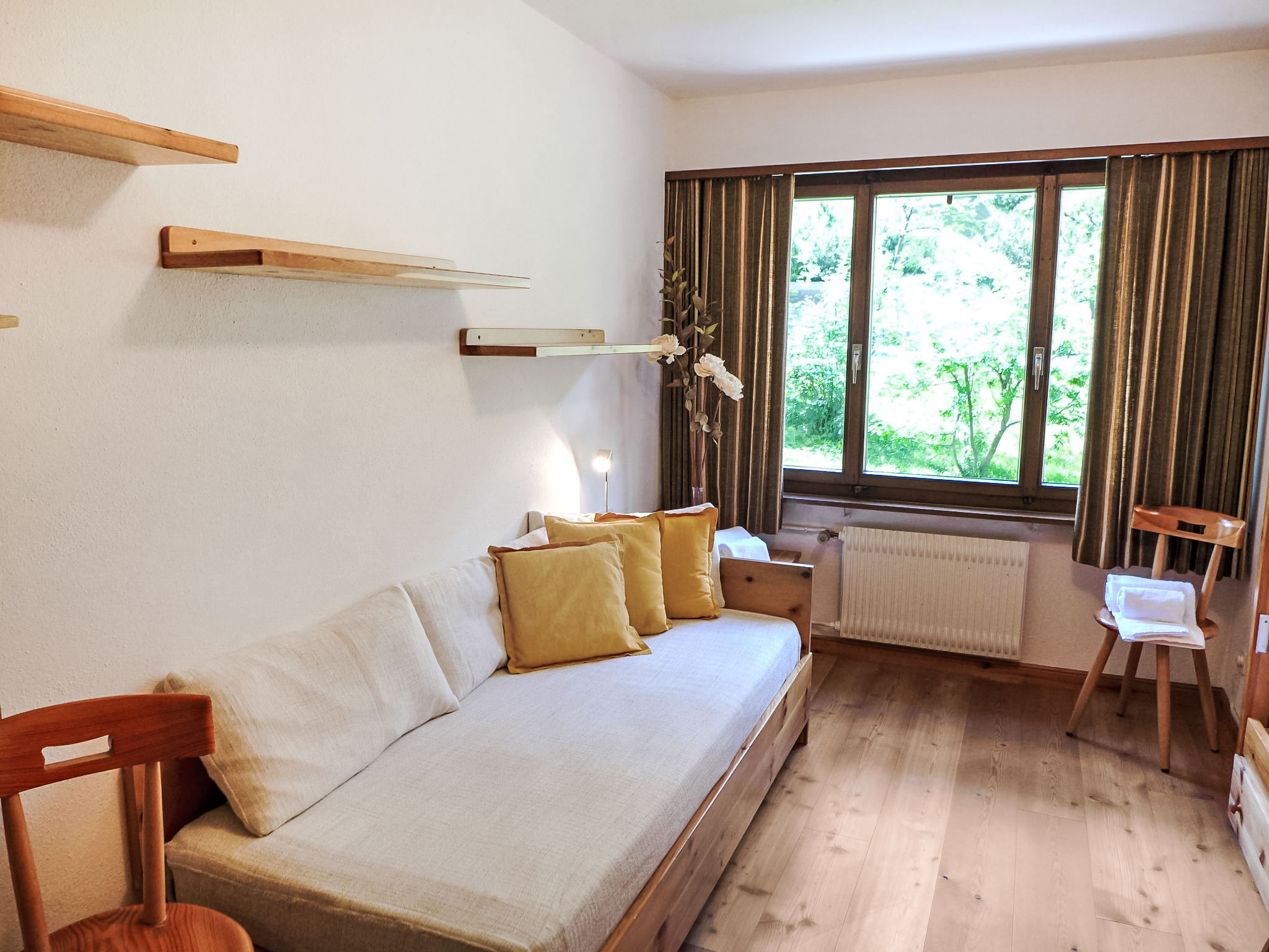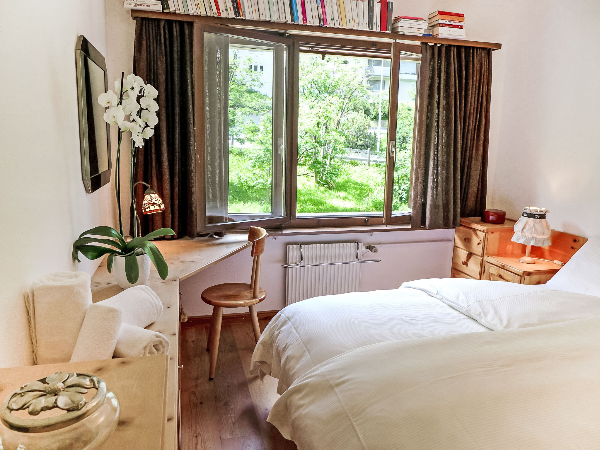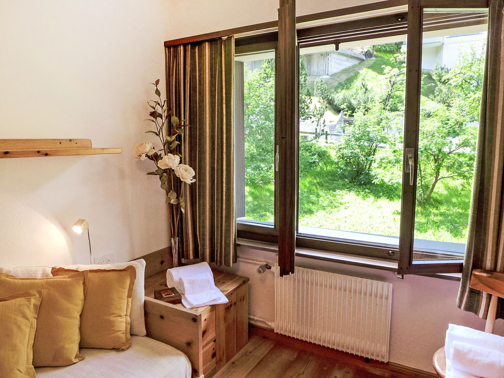 "Chesa Arlas D2", 3-Zimmer-Wohnung 70 m2 im 2. Stock. Hell, komfortabel und gemütlich eingerichtet: Wohn-/Esszimmer mit TV (Flachbildschirm), DVD. Ausgang zum Balkon. 1 Doppelzimmer mit 1 Doppelbett (2 x 90 cm, Länge 200 cm). 1 Zimmer mit 1 x 2 Etagenbetten (80 cm, Länge 190 cm). Kleine Küche (3 Kochplatten, Backofen, Geschirrspüler, Toaster, Wasserkocher, Mikrowelle, elektrische Kaffeemaschine, Kapseln für die Kaffeemaschine (Nespresso) extra). Bad/WC. Holzböden. Balkonmöbel, Liegestühle (1). Sehr schöne Panoramasicht auf die Berge und die Landschaft. Zur Verfügung: Bügeleisen, Haartrockner. Internet (Wireless LAN, gratis). Garage Nr. D2 auf dem Grundstück (1 Auto), Höhe 190 cm, Breite 210 cm. Bitte beachten: Nichtraucher-Unterkunft, Parkplatz nur für kleine Wagen.