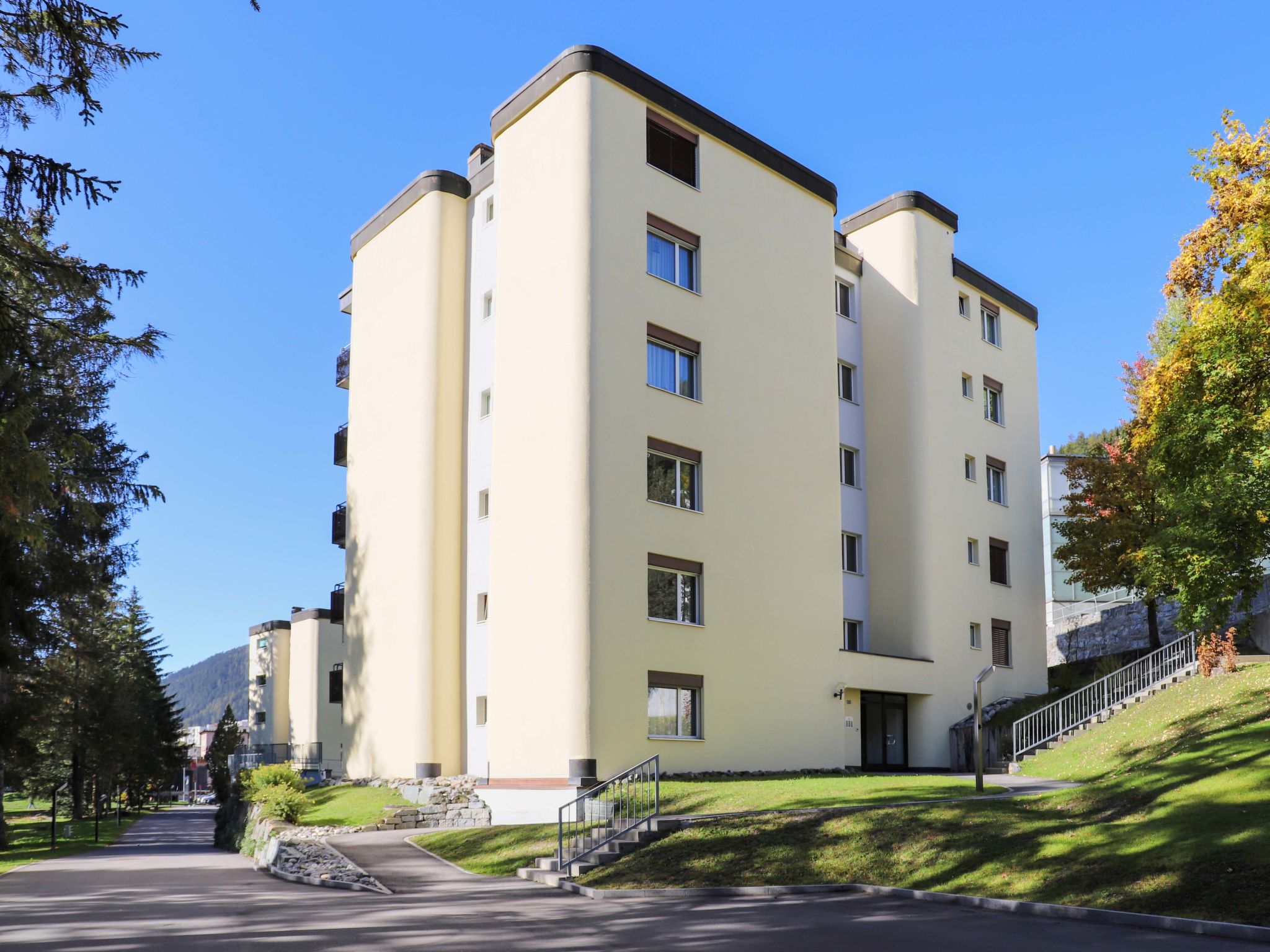 Davos-Platz: Komfortables Appartementhaus "Allod-Park". Im Ortszentrum, zentrale, ruhige Lage. Zur Mitbenutzung: Park. Im Hause: Empfang, Restaurant, Bar, Wireless LAN, Fahrstuhl, Skiraum, Zentralheizung, Waschmaschine, Wäschetrockner (zur Mitbenutzung, extra), Skischuhtrockner. Brötchenservice, Getränkeservice und Frühstück möglich. Zufahrt bis zum Haus. Parkplatz, Gemeinschaftsgarage. Maße: Höhe 210 cm. Supermarkt 800 m, Einkaufszentrum 400 m, Bushaltestelle 100 m, Bahnstation "Davos-Platz" 1.2 km, Freibad, Hallenbad 200 m. Golfplatz 2 km, Tennis 4 km, Tennishalle 4 km, Reitstall 5 km, Sportzentrum 200 m, Luftseilbahn 1.5 km, Bergbahn 600 m, Skibushaltestelle 50 m, Skischule 1.5 km, Kinderskischule 1.5 km, Langlaufloipe 1 km, Eisfeld 200 m. Bitte beachten: Be- und Entladen am Ferienhaus möglich. Die Mietobjekte können sich in Lage, Größe und Beschaffenheit des Grundstücks unterscheiden. Die Mietobjekte können sich in Wohnfläche, Raumaufteilung, Ausstattung und Einrichtung unterscheiden. Rodelbahn Schatzalp-Davos. Garagenplätze auf Anfrage: im Sommer CHF 35.00/Woche, im Winter CHF 70.00/Woche. WLAN an oder in der Nähe der Rezeption. Besonderheiten: wöchentlicher Raclette- und Fondue-Abend. Mahlzeiten können im Restaurant bestellt werden. Reservierung von Eintrittskarten für Veranstaltungen.