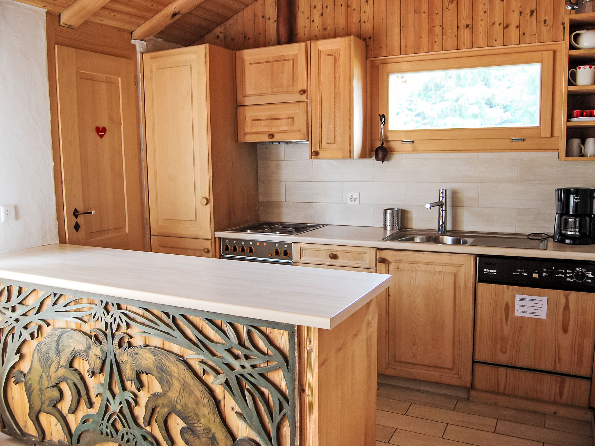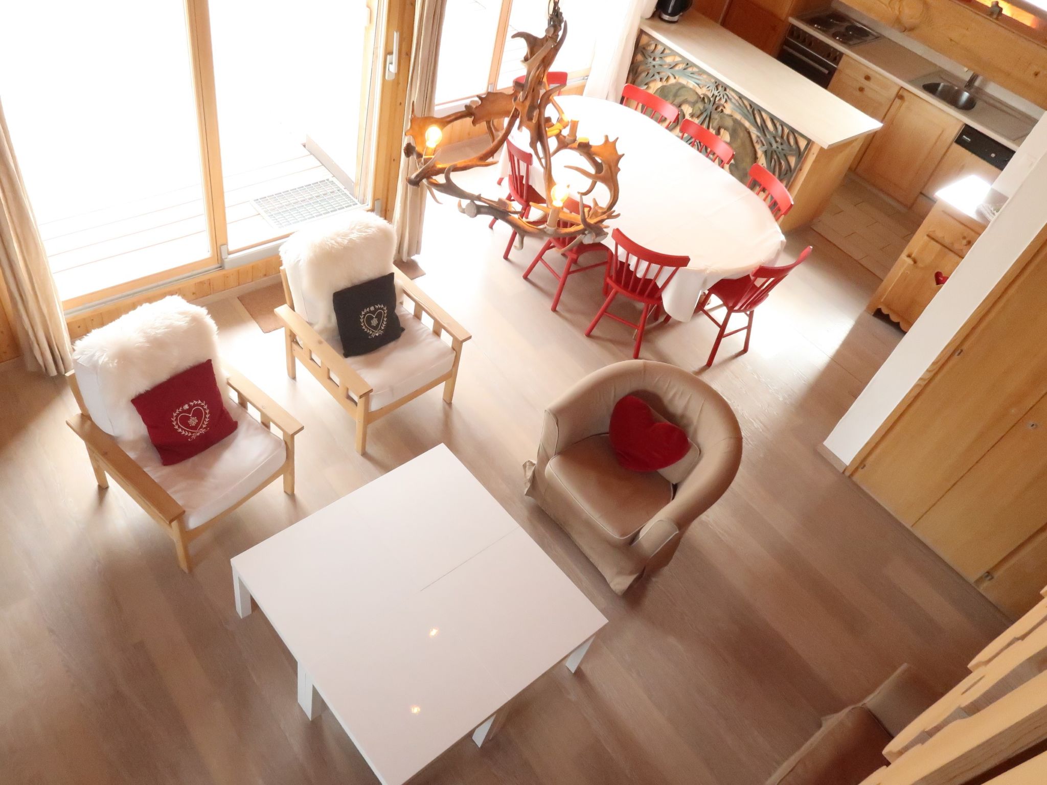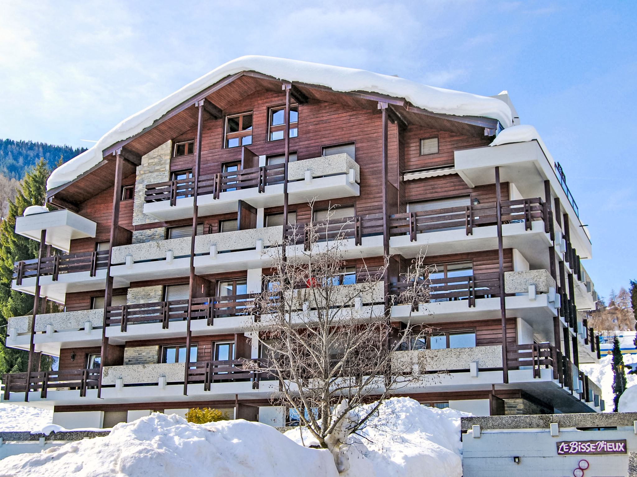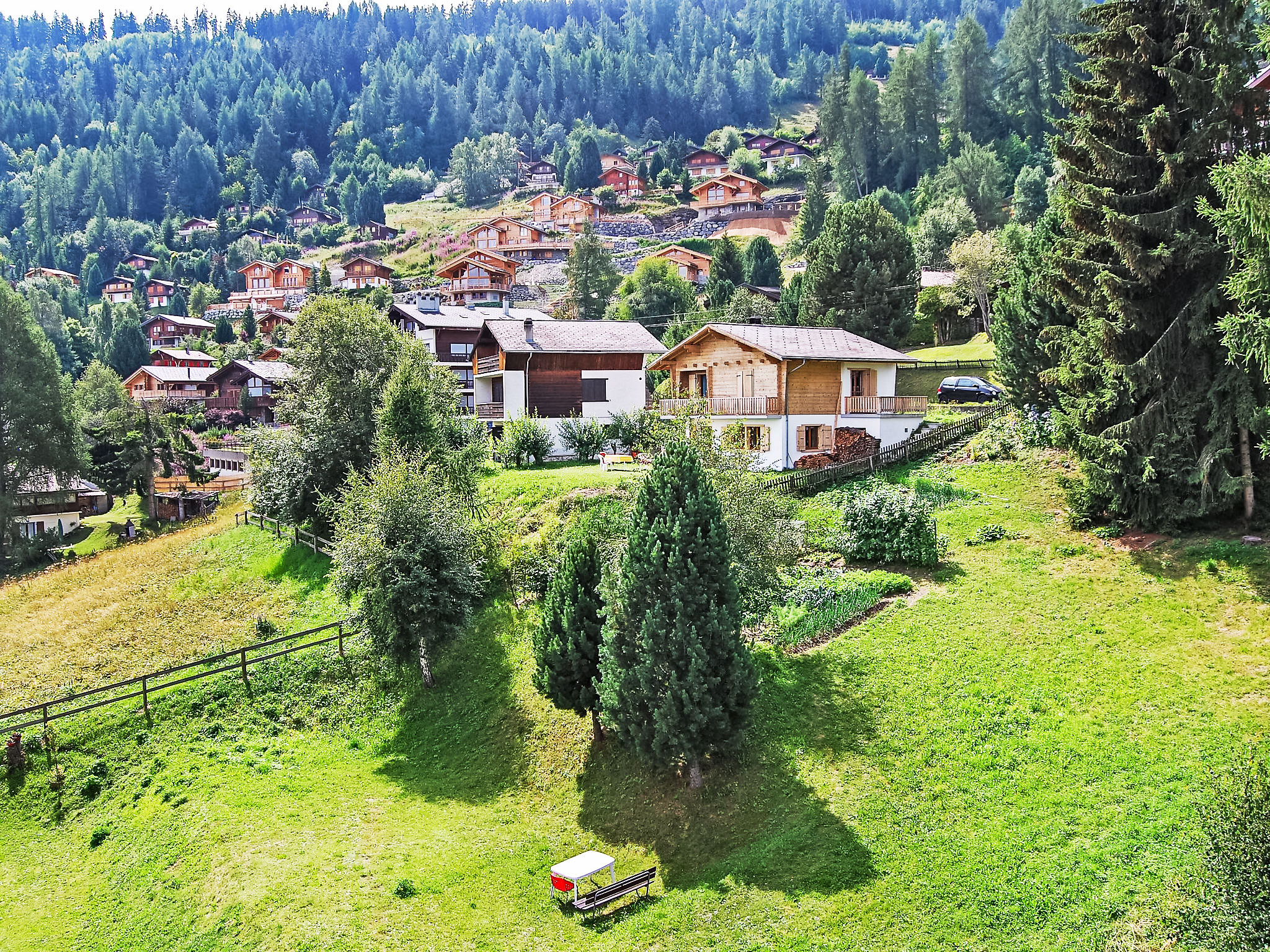 "Bisse-Vieux A-4", 4-Zimmer-Attikawohnung 100 m2 auf 2 Stockwerken im 4. Stock. Hell, teilweise abgeschrägt, mit viel Holz eingerichtet: Wohn-/Esszimmer mit Panoramafenster mit offenem Kamin. Ausgang zur Terrasse, Richtung Süden und Richtung Osten. 1 Zimmer mit 1 franz. Bett (160 cm, Länge 190 cm). Ausgang zum Balkon, Richtung Norden und Richtung Osten. 1 Zimmer mit 1 franz. Bett (1 x 150 cm, Länge 190 cm). Offene Küche (4 Kochplatten, Backofen, Geschirrspüler, Mikrowelle, elektrische Kaffeemaschine, Kapseln für die Kaffeemaschine (Nespresso) extra, Fondue Set (Käse)). Dusche, sep. WC. Obergeschoss: 1 abgeschrägtes Zimmer mit Dachfenster mit 2 Betten (90 cm, Länge 190 cm). Abgeschrägter, offener kleiner Salon, Deckenhöhe 100 - 170 cm mit Kabel-TV und DVD. Dusche/WC. Balkon, Nordostlage, Terrasse 10 m2, Südlage und Ostlage. Balkonmöbel. Schöne Sicht auf die Berge, das Tal und die Ortschaft. Zur Verfügung: Internet (Wireless LAN, gratis). Garage Nr. 11. Bitte beachten: Nichtraucher-Unterkunft.