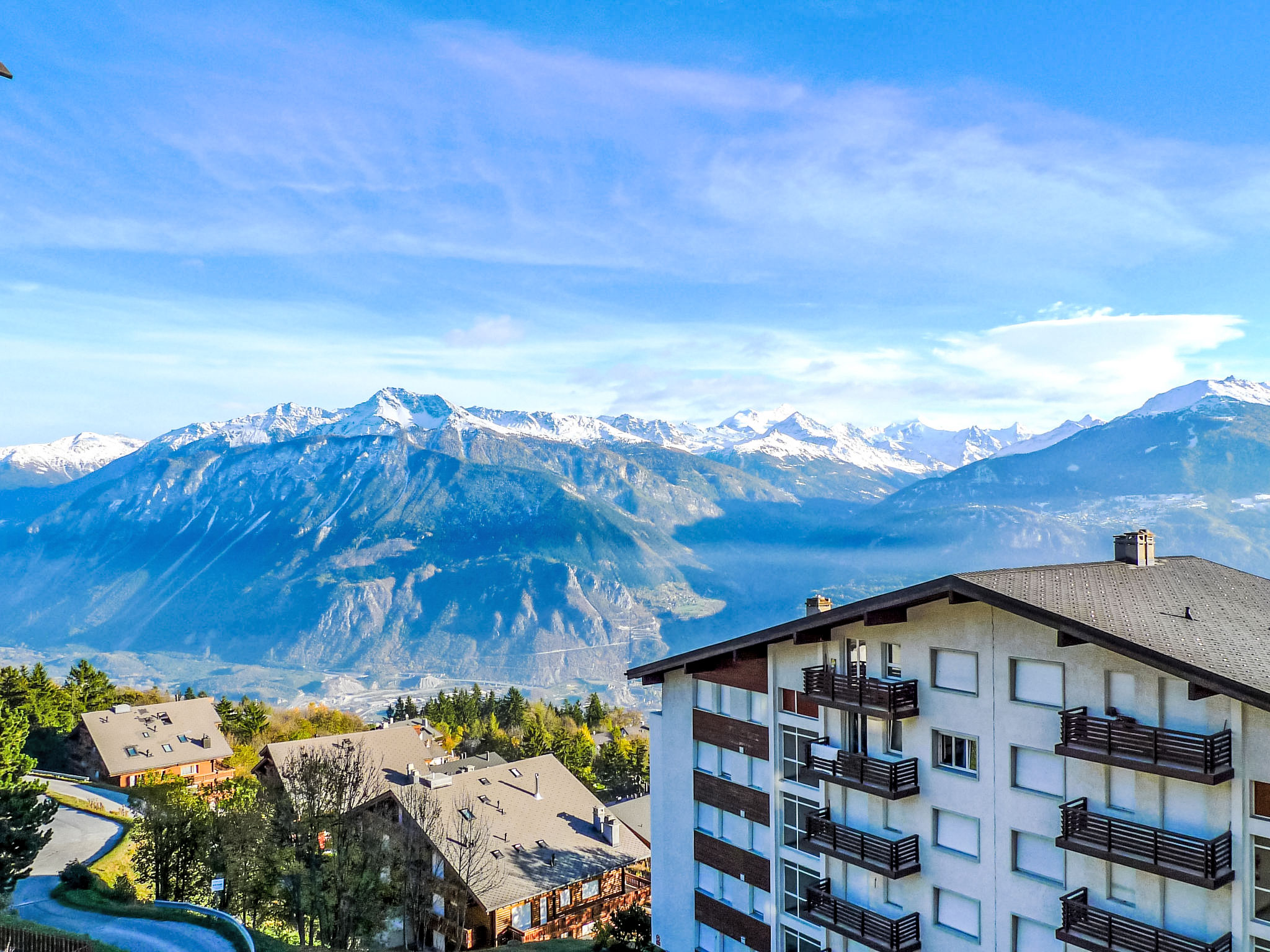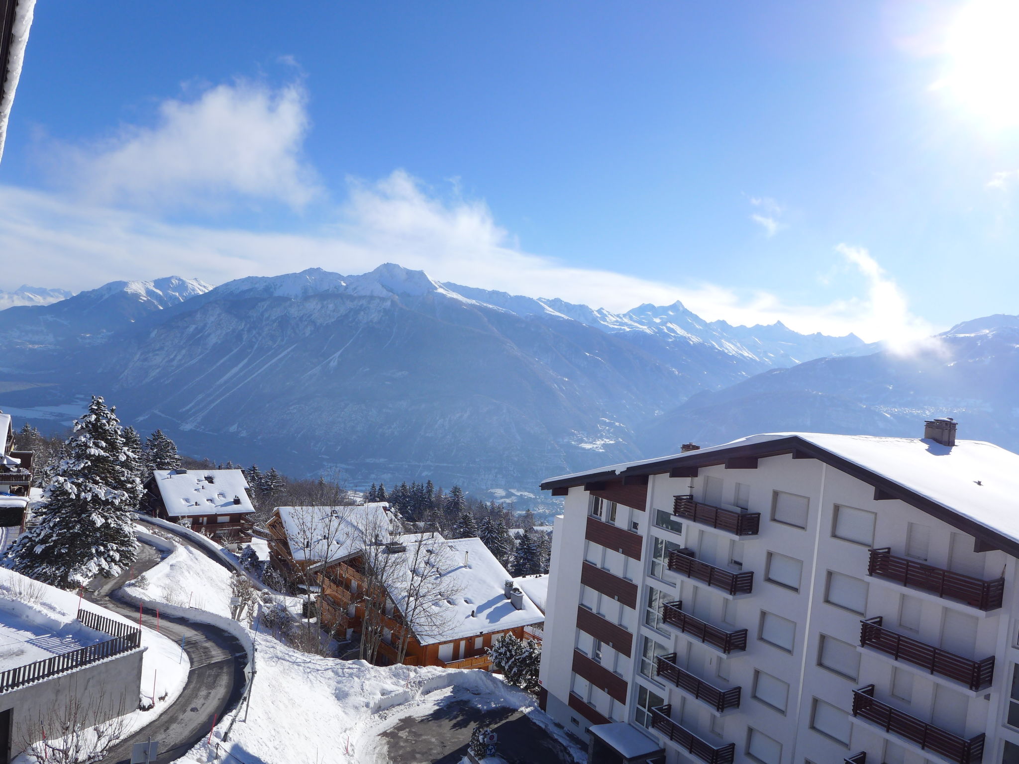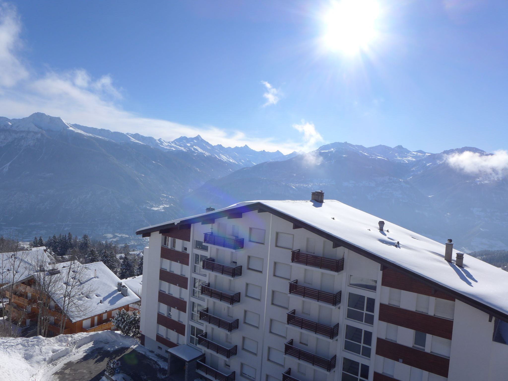 Mehrfamilienhaus "Armorial". Unterhalb von Montana, im Ortsteil la Combaz, am Ortsrand, 2 km vom Zentrum von Montana, ruhige, sonnige Lage. Im Hause: Fahrstuhl, Skiraum, Waschmaschine, Wäschetrockner (zur Mitbenutzung, extra). Parkplatz (beschränkte Anzahl) beim Haus. Restaurant 200 m, Bushaltestelle "Comba" 200 m. Skisportanlagen 1.3 km.