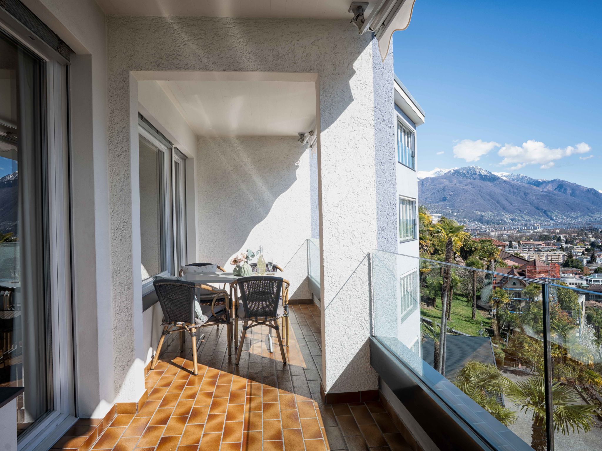 "Suite Classic", 2-Zimmer-Wohnung 70 m2 im 3. Stock, Südlage. Wohn-/Esszimmer mit 2 Wandschrankbetten, Sat-TV und Radio. 1 Doppelzimmer mit Bad/WC. Kochnische (Backofen, elektrische Kaffeemaschine, Kapseln für die Kaffeemaschine (Nespresso) extra). Sep. WC. Grosser Balkon. Herrliche Sicht auf den See, die Berge und die Ortschaft. Zur Verfügung: Internet (Wireless LAN, gratis). Bitte beachten: Nichtraucher-Unterkunft, Nichtraucher-Haus. Maximal 1 Haustier/Hund erlaubt.