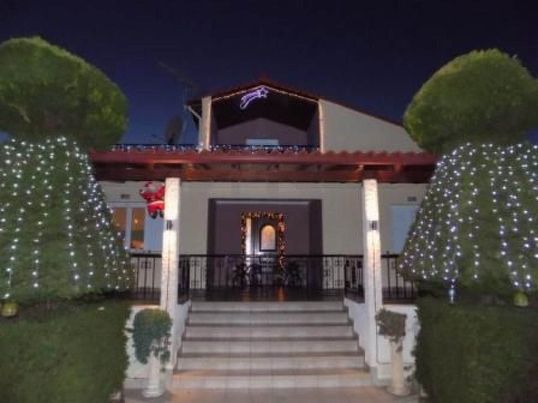 Das Haus wurde 2006 gebaut, hat eine Wohnfläche von 176 m² und ist sehr komfortabel und luxuriös eingerichtet und dekoriert. Im ersten Stock, rund um eine 120 m² große überdachte Terrasse mit großem Esstisch und Baboo-Sofa sowie dem rosa Ponk-Tisch. Im Inneren, das Esszimmer neben der offenen Küche, komplett ausgestattet mit Kühlschrank, Dunstabzugshaube, Geschirrspüler, Einbauküche, Elektroherd, Kaffeemaschine, Espressomaschinen und andere Geräte und Küchenutensilien notwendig. Das Haus besteht aus 3 Schlafzimmern mit Doppelbetten 1,60 1,80 und ein Schlafzimmer mit 1,80 oder zwei Einzelbetten, bzw... Ein Badezimmer mit Dusche und WC und ein Badezimmer mit Badewanne und WC. Es gibt auch eine Waschmaschine und einen Haartrockner. Vom Flur aus führt eine Treppe in das Wohnzimmer im zweiten Stock. Dort gibt es 1 Schlafzimmer mit Doppelbett (1,40 breit) und ein Badezimmer mit Toilette und Dusche. Die Terrasse ist mit Blick auf das Meer.
