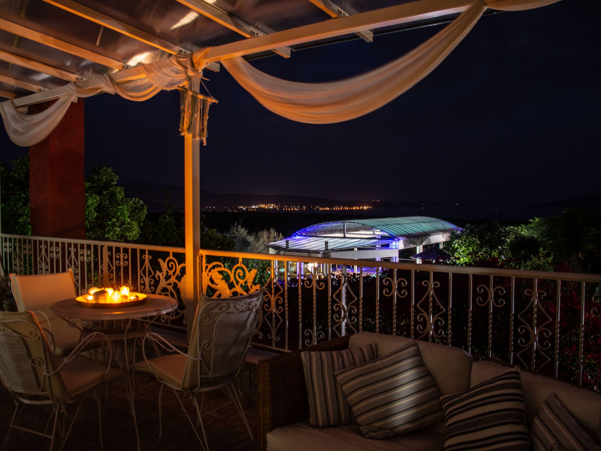 Umgeben von 2000 m² Platz, sorgt für volle Privatsphäre. Auf dem Grundstück befinden sich duftende Blumen, Oliven- und Zitronenbäume und ein voll ausgestatteter Grill, ein Spielplatz, auf dem Kinder stundenlang spielen können. Sie haben einen privaten Pool von 50 m², komplett ausgestattet mit Sonnenschirmen, Liegestühlen und Außendusche. Parkplatz vorhanden. Der Poolbereich wird derzeit bis zum Frühjahr 2020 modernisiert. Nach der Umgestaltung kann der Pool wetterunabhängig genutzt werden. Es erwartet Sie eine 4 Meter hohe Überdachung mit speziellem transparentem Material, so dass Sonne, Luft und Licht in den Pool gelangen können, aber die gefährliche UBA-UBV-Strahlung in den heißen Sommermonaten herausgefiltert wird. Es wird ein schöner Ort mit diskreter Beleuchtung sein.