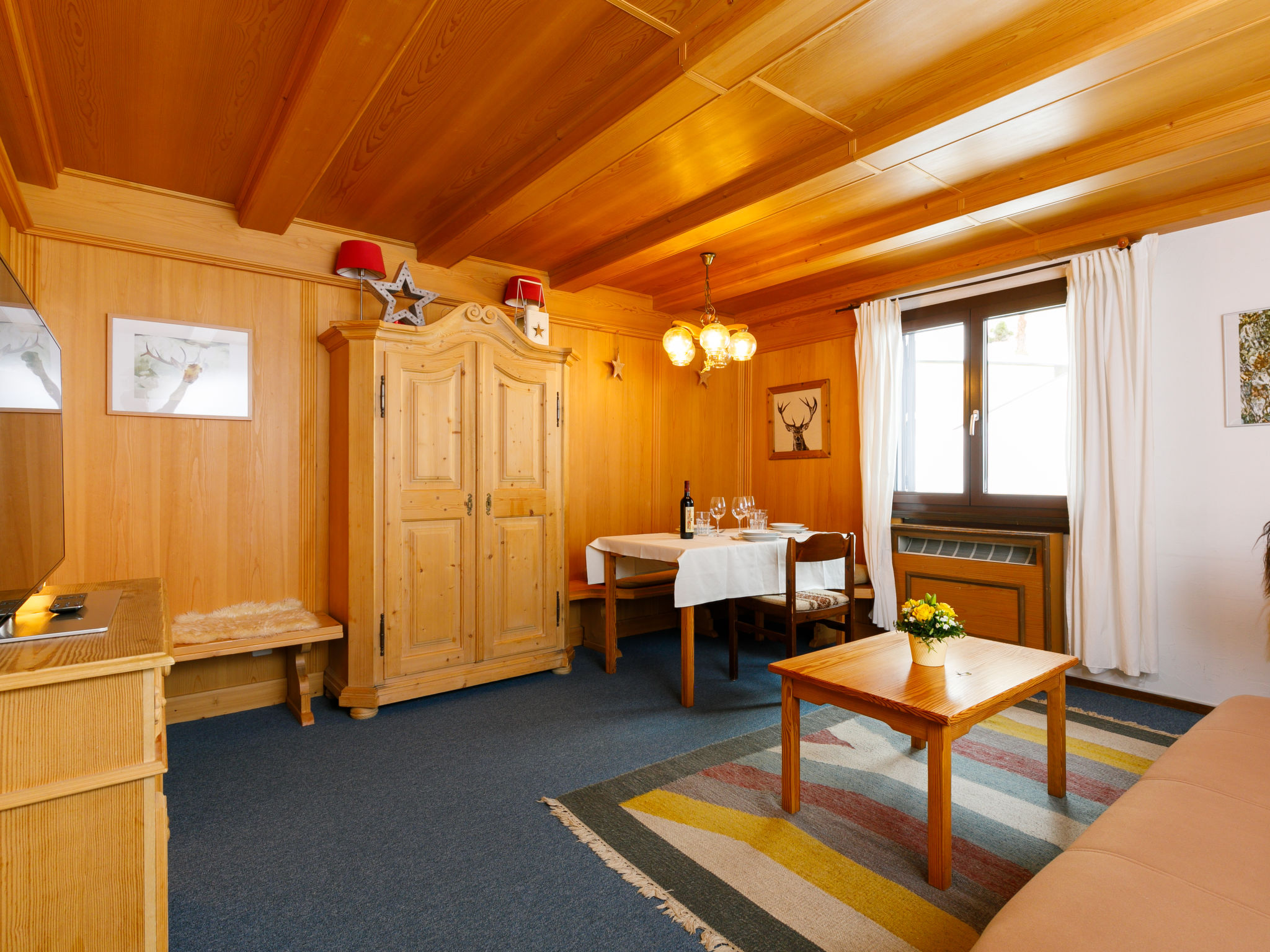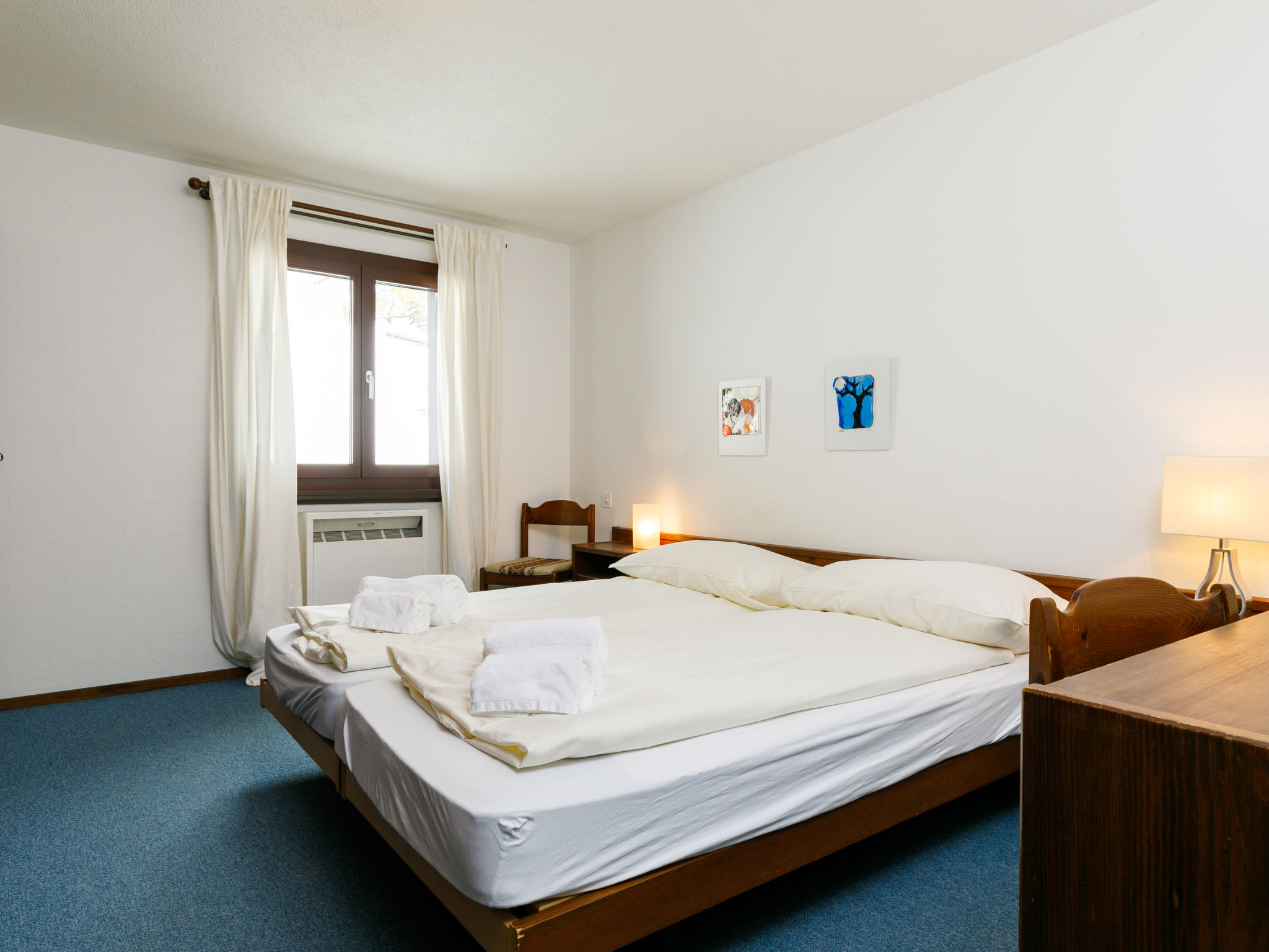 "23-1", 2-Zimmer-Wohnung 50 m2, im Erdgeschoss, Nordlage. Zweckmässig eingerichtet: Wohn-/Esszimmer mit 1 Doppeldiwanbett, TV und Radio. 1 Zimmer mit 2 Betten. Küche (Backofen, Geschirrspüler). Bad/WC. Maximal 1 Haustier/Hund erlaubt.