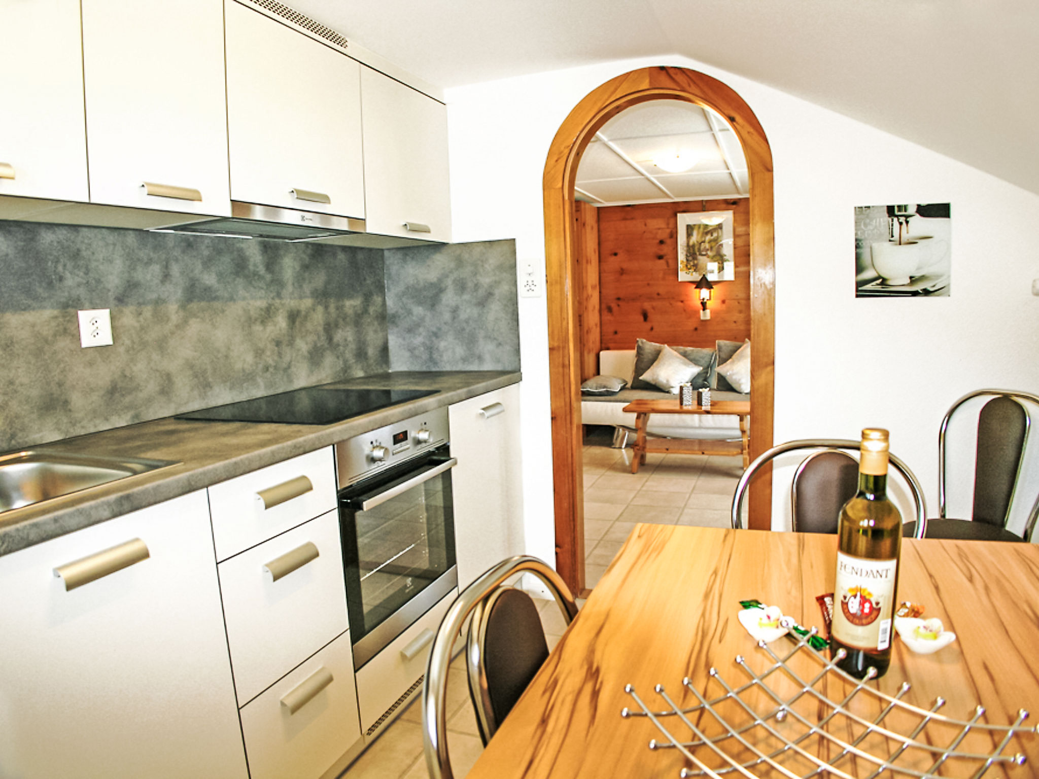 "Bergfink Dachgeschoss", 3-Zimmer-Wohnung 51 m2 im 3. Stock. Teilweise abgeschrägt, renoviert im Jahre 2013, schön und gemütlich eingerichtet: Wohnzimmer mit Sat-TV (Flachbildschirm), Stereoanlage. Ausgang zum Balkon, Richtung Westen. 1 abgeschrägtes Doppelzimmer mit 2 Betten. Ausgang zum Balkon, Richtung Süden. 1 kleines Zimmer mit 2 Betten. Abgeschrägte Küche (Backofen, Geschirrspüler, 4 Glaskeramikherd Platten, elektrische Kaffeemaschine) mit Esstisch. Bad/WC. Balkon. Balkonmöbel, Liegestühle (2). Schöne Sicht auf die Berge und die Landschaft. Zur Verfügung: Internet (Wireless LAN, gratis). Parkplatz beim Haus. Bitte beachten: Nichtraucher-Unterkunft. 1 Haustier/Hund erlaubt. Empfehlung: Das Studio CH3925.360.2 ist auf dem gleichen Stock und ideal dazubuchbar für 2 weitere Personen.