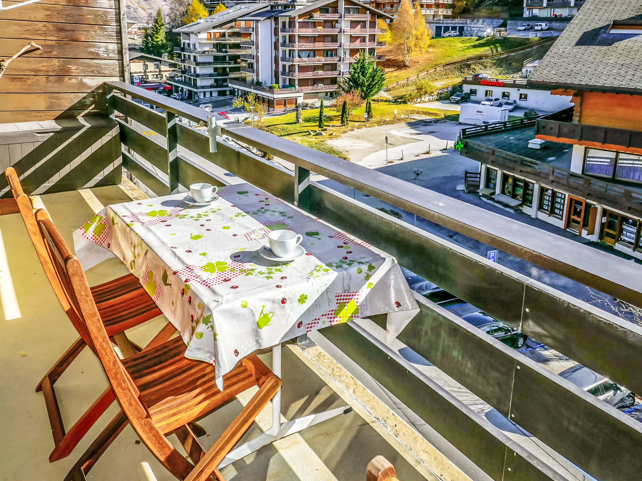 Residenz "Beau-Séjour". Im Ortszentrum. Im Hause: Restaurant, Fahrstuhl, Skiraum, Waschmaschine, Wäschetrockner (zur Mitbenutzung, extra). Parkplatz (beschränkte Anzahl). Einkaufsgeschäft, Supermarkt, Bäckerei 50 m, Bushaltestelle "Nendaz Station" 300 m, Freibad 500 m. Golfplatz 18 km, Tennis 500 m, Gondelbahn 300 m, Skibushaltestelle 100 m, Eisfeld 50 m, Kinderspielplatz 300 m. Bekannte Skigebiete sind gut erreichbar: Nendaz-Tracouet 1 km. Wandergebiete: Bisse du Milieu 600 m. Bitte beachten: Gratis Skibus. In diesem Haus sind weitere Ferienwohnungen mietbar.
