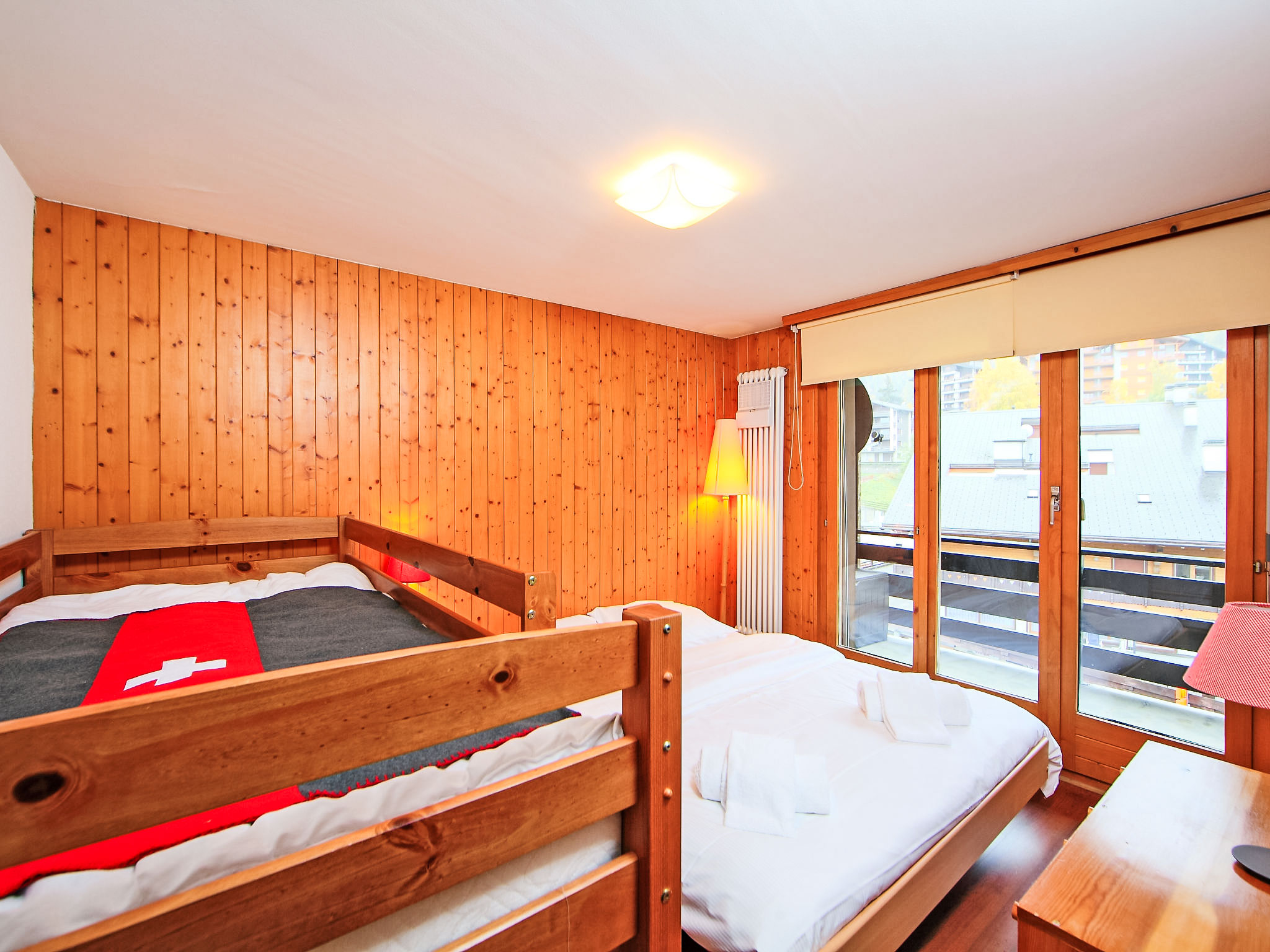 "Beau-Séjour 24", 2-Zimmer-Wohnung 33 m2 im 4. Stock, Südlage. Objekt geeignet für 3 Erwachsene + 1 Kind. Zweckmässig eingerichtet: Wohn-/Esszimmer mit 1 Doppeldiwanbett (135 cm, Länge 190 cm), Kabel-TV und DVD. Ausgang zum Balkon, Richtung Süden. 1 Zimmer mit 1 Bett (80 cm, Länge 180 cm), 1 franz. Bett (160 cm, Länge 200 cm). Ausgang zum Balkon, Richtung Süden. Offene Küche (3 Kochplatten, Backofen, Racletteofen, Fondue Set (Käse)). Bad/WC. Balkon 10 m2, Südlage. Sicht auf die Berge und die Ortschaft. Zur Verfügung: Kinderhochstuhl, Haartrockner. Internet (Wireless LAN, gratis). Bitte beachten: Nichtraucher-Unterkunft. 1 Haustier/Hund erlaubt.