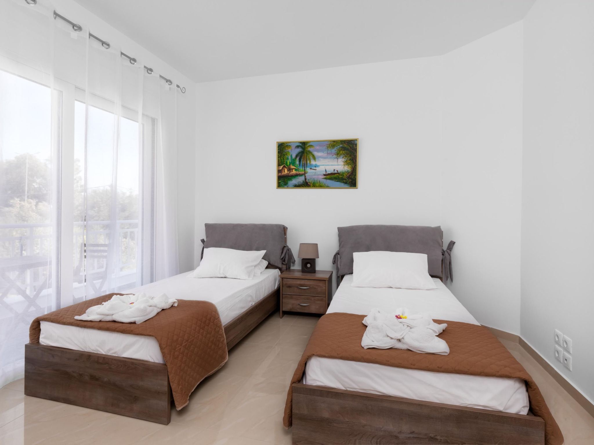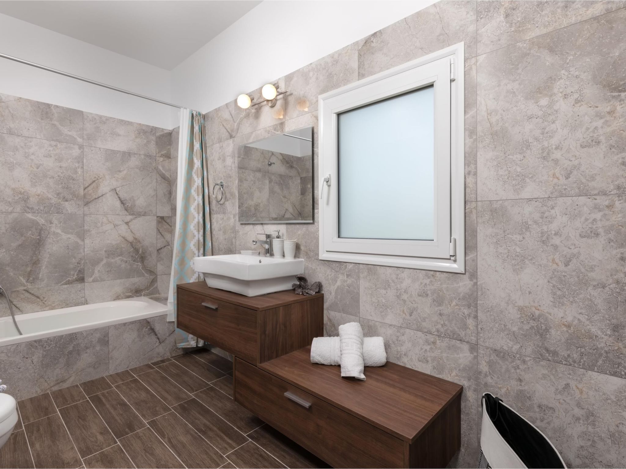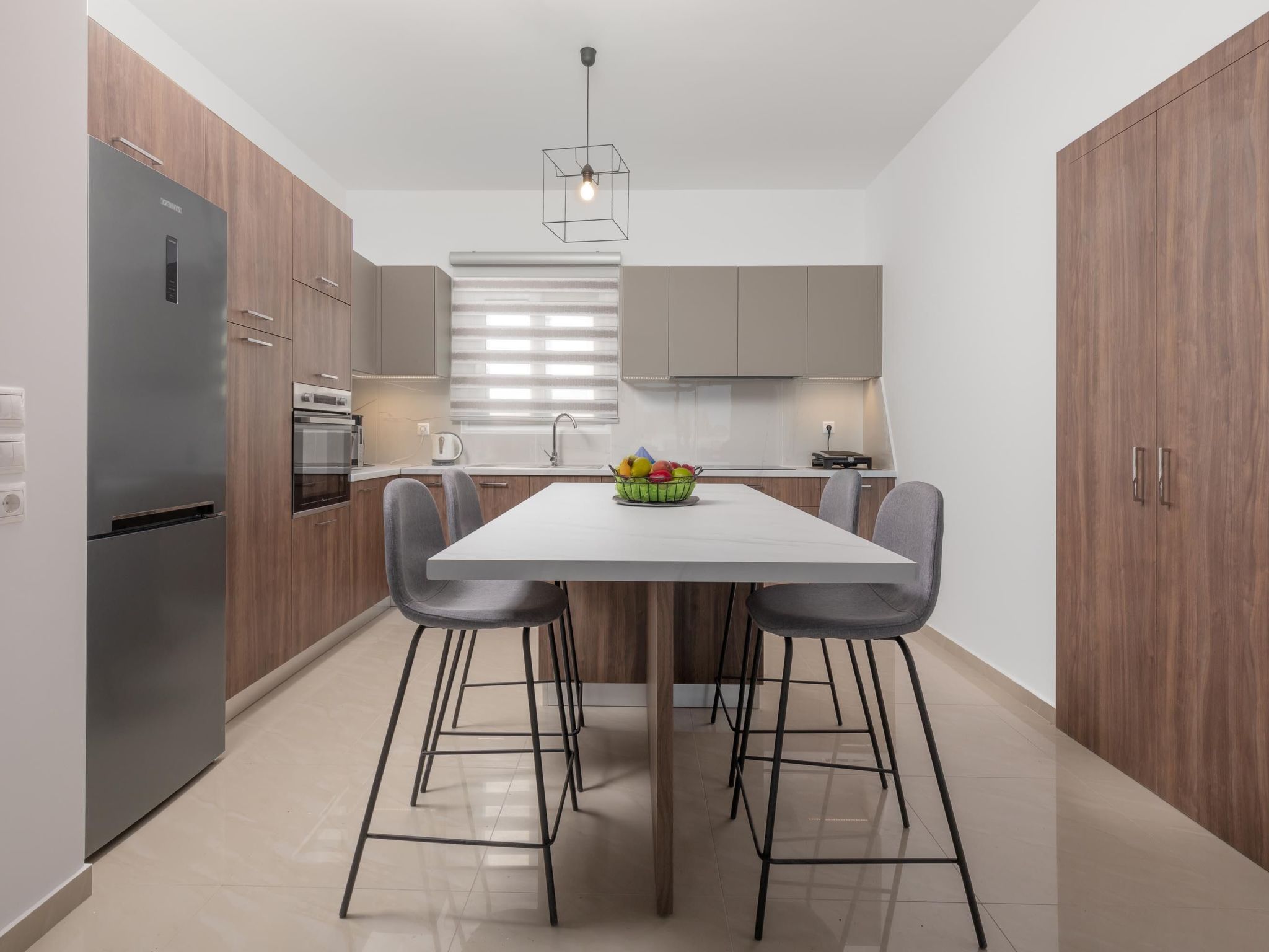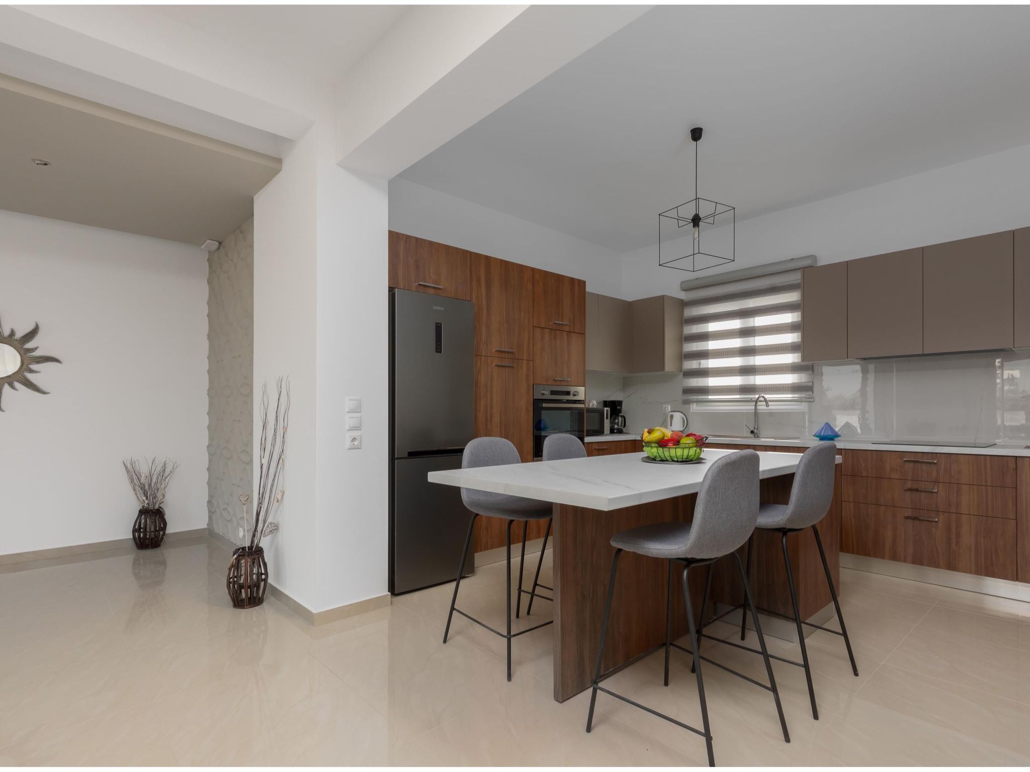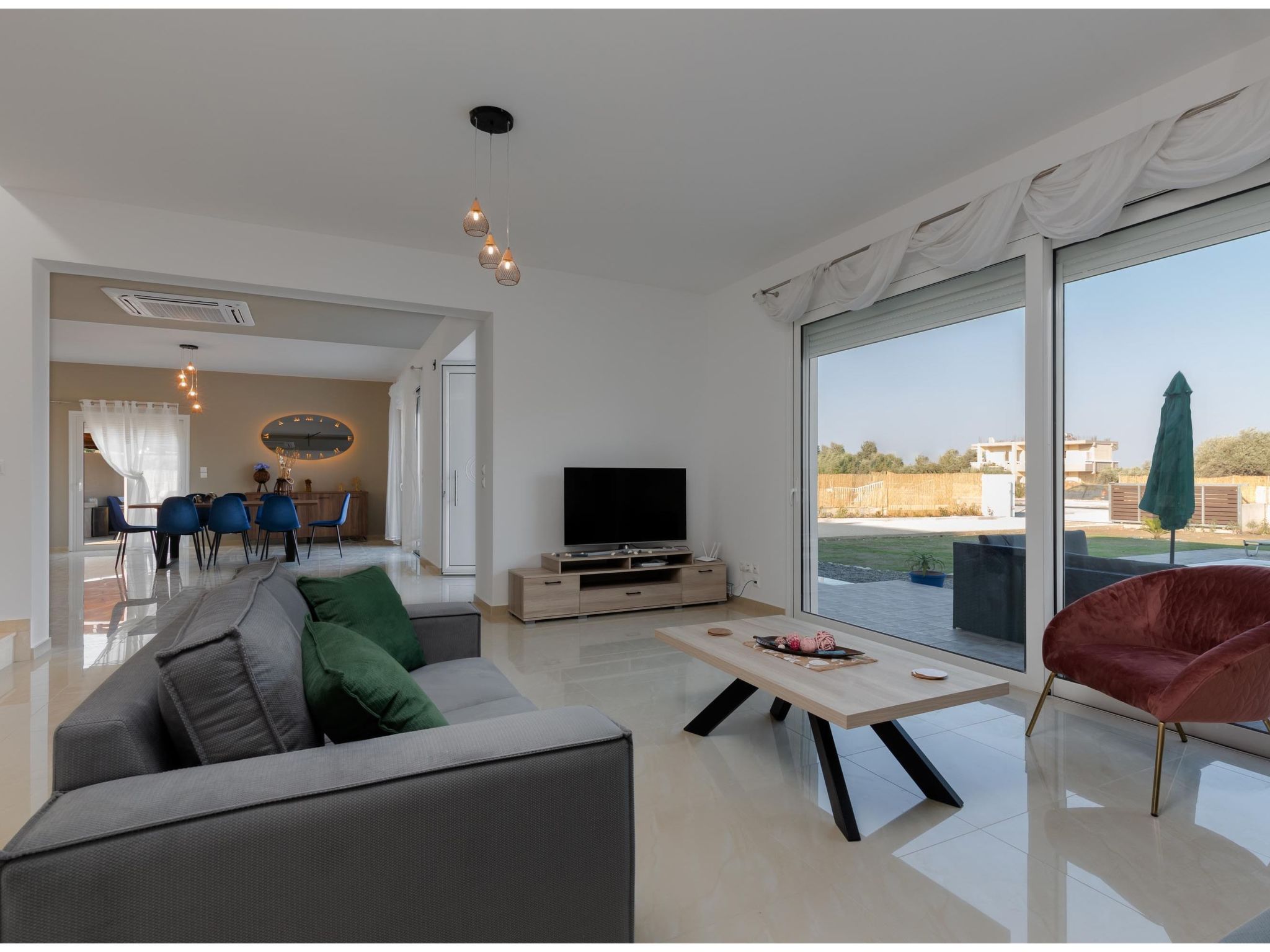 Diese moderne Villa hat 4 unglaubliche Schlafzimmer. Die meisten Schlafzimmer sind voll klimatisiert und zwei von ihnen haben einen Balkon. 3 der Schlafzimmer haben Doppelbetten und das andere hat zwei Einzelbetten. Eines der Doppelbettzimmer hat ein eigenes Badezimmer mit einer Dusche. Ein Schlafzimmer ist nicht klimatisiert. Es gibt ein weiteres Badezimmer mit einer Badewanne und einem WC. Die Gäste finden eine schöne, voll ausgestattete Küche vor, die für die Zubereitung aller Mahlzeiten geeignet ist, sowie eine Sitzecke. Außerdem gibt es ein Wohnzimmer mit einem Smart-TV, wo Sie sich entspannen können. Es gibt kostenlosen WIFI-Zugang im gesamten Haus. Der Außenbereich ist genauso schön wie der Innenbereich. Es gibt einen fantastischen privaten Swimmingpool, wo Sie unvergessliche Momente unter der Sonne der Ägäis verbringen können. Außerdem gibt es einen Grillplatz und Möbel, um ein Treffen mit Ihren Lieben zu genießen, während Sie eine köstliche Mahlzeit zubereiten.