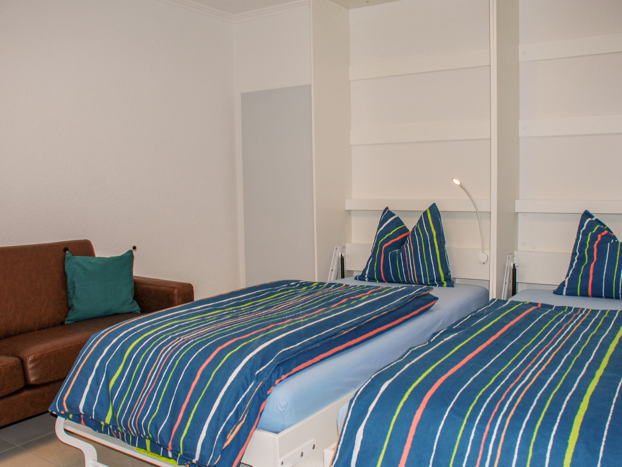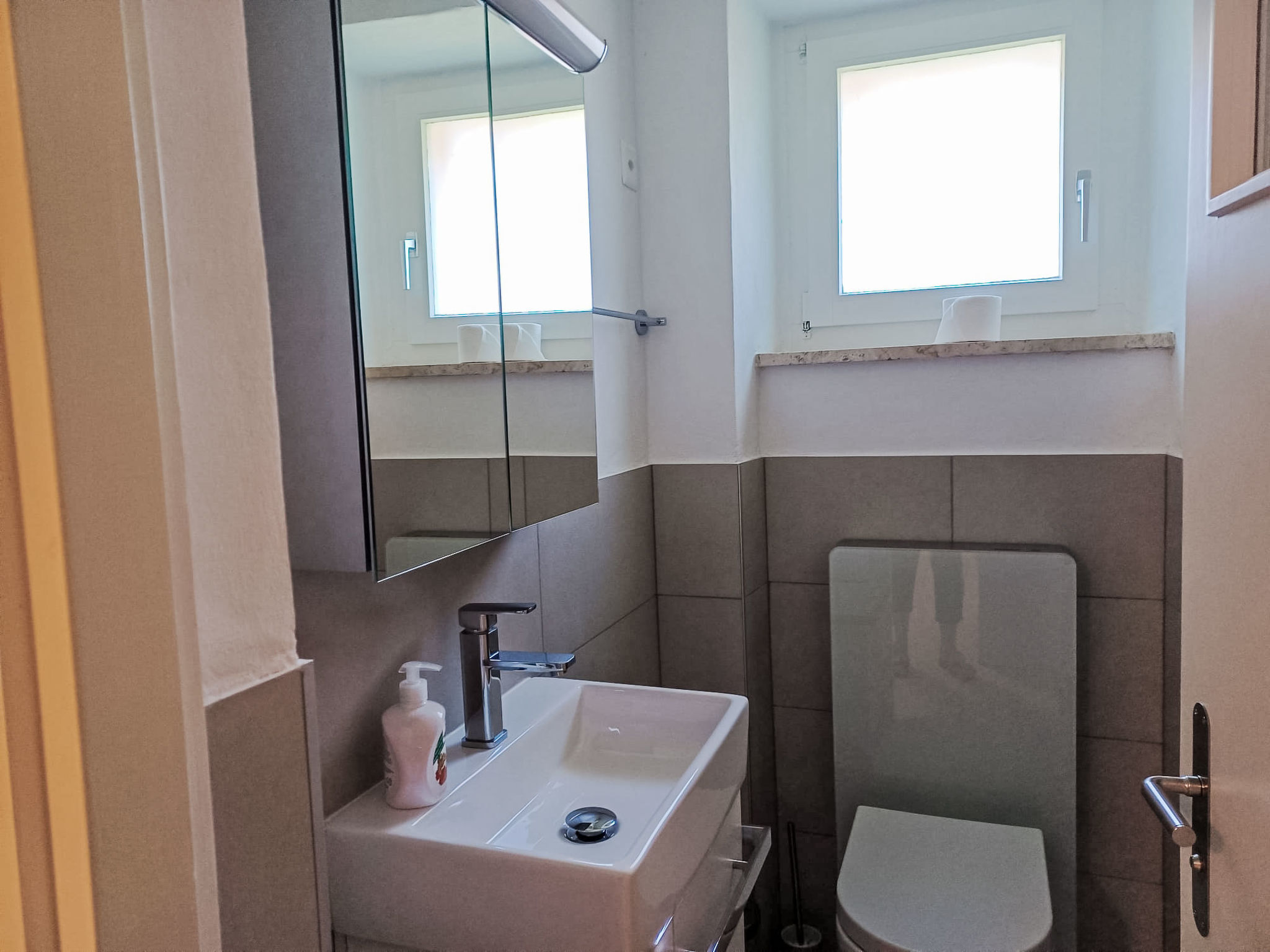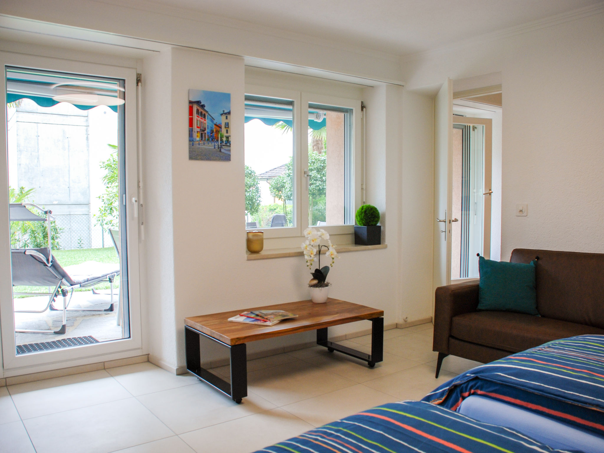 "Appartamento 2- Giardino", 2-Zimmer-Wohnung 35 m2, im ebenerdigen Untergeschoss. Geräumig und hell, teilweise renoviert im Jahre 2021, komfortabel und geschmackvoll eingerichtet: Wohn-/Schlafzimmer mit 2 Wandschrankbetten (90 cm, Länge 200 cm), Kabel-TV und Internationale TV-Sender (Flachbildschirm), Radio, CD und Stereoanlage. Ausgang zur Terrasse, zum Gartensitzplatz. Grosse Wohnküche (Backofen, 2 Glaskeramikherd Platten, Wasserkocher, elektrische Kaffeemaschine, Kapseln für die Kaffeemaschine (Nespresso) extra) mit Esstisch. Ausgang zum Gartensitzplatz. Dusche/WC. Grosser Gartensitzplatz teilweise überdacht. Terrassenmöbel, Liegestühle (2), Sitzplatz. Sicht auf den Garten. Zur Verfügung: Bügeleisen, Haartrockner. Internet (Wireless LAN). Bitte beachten: Nichtraucher-Unterkunft.
