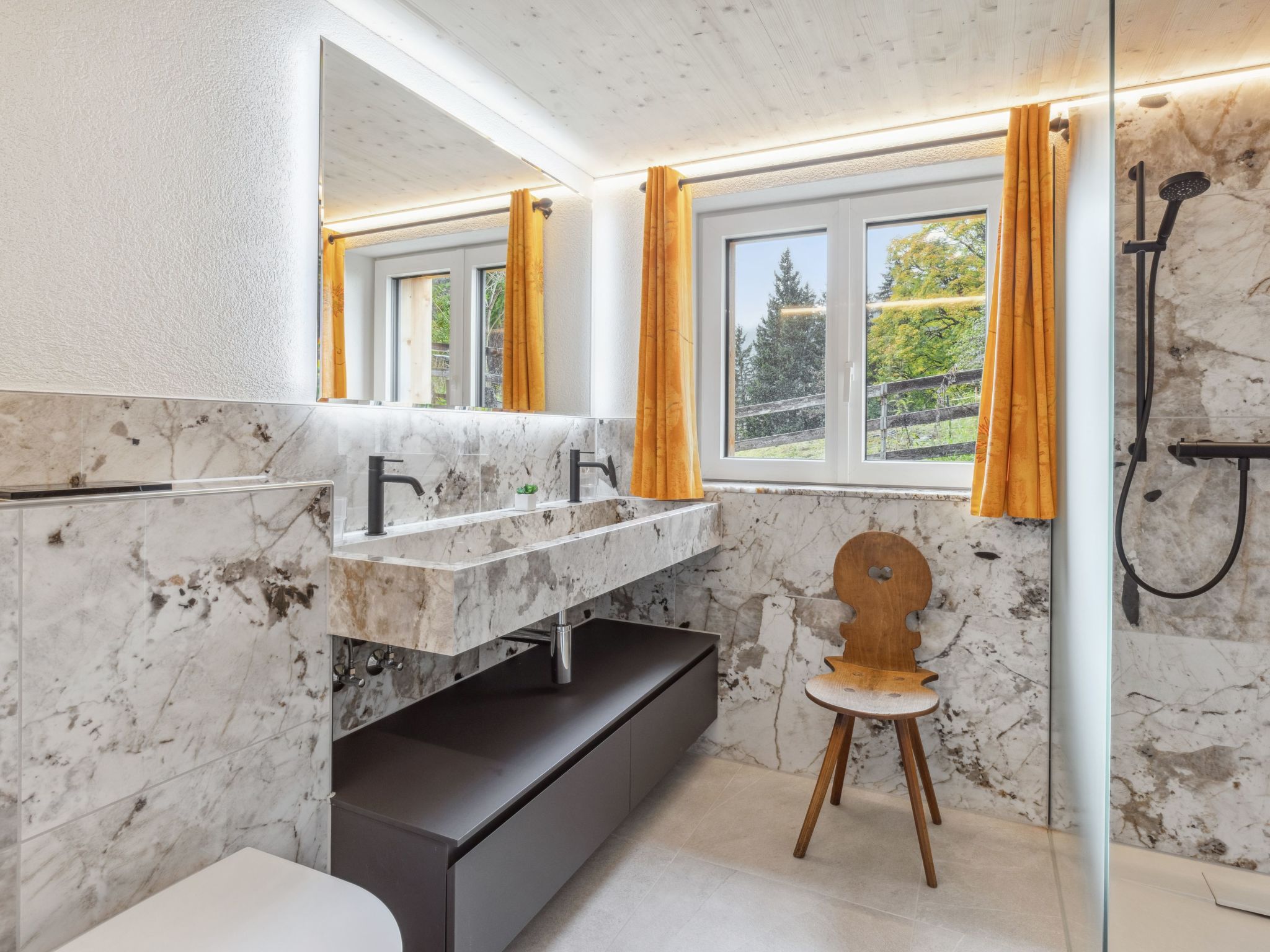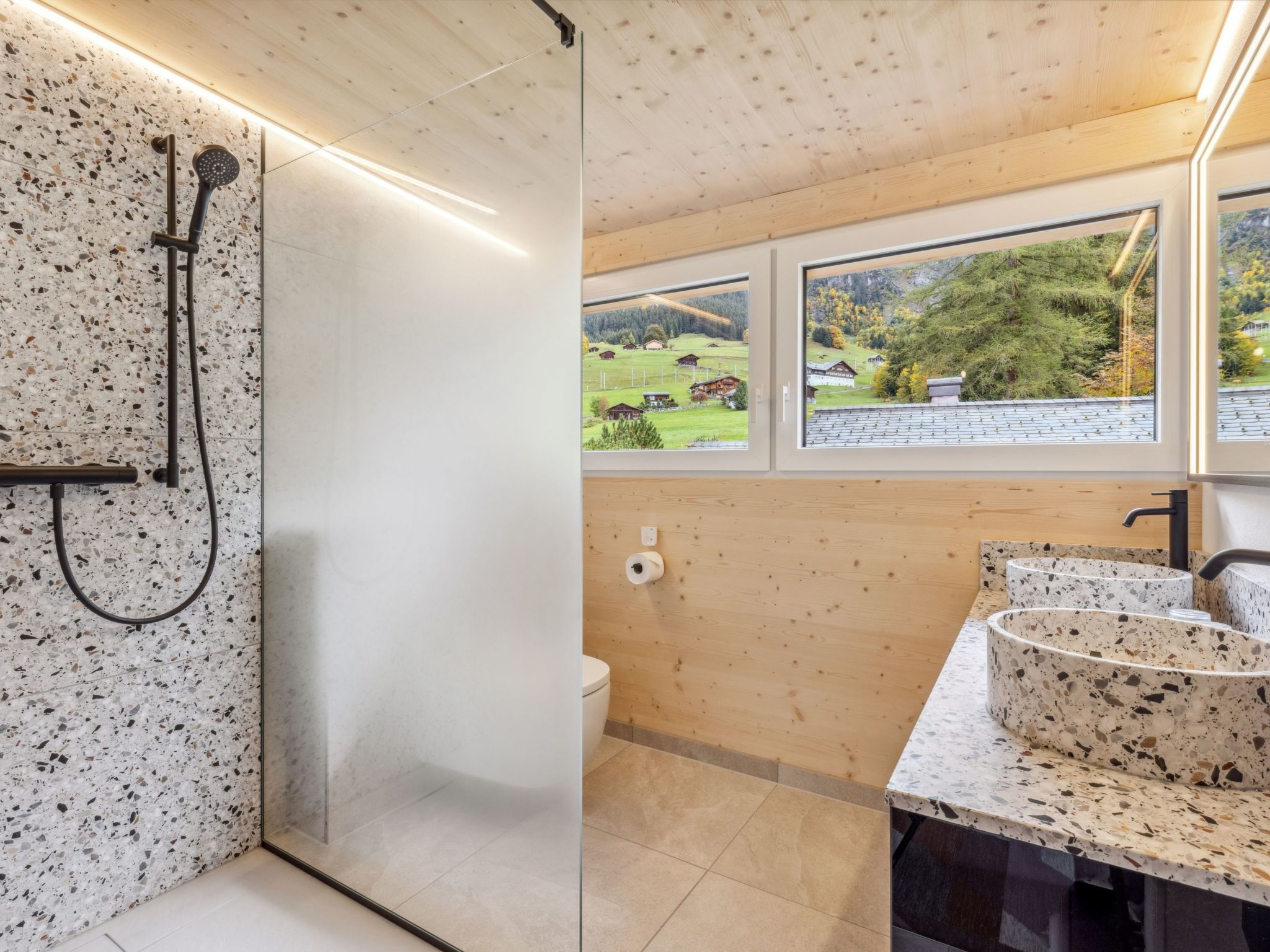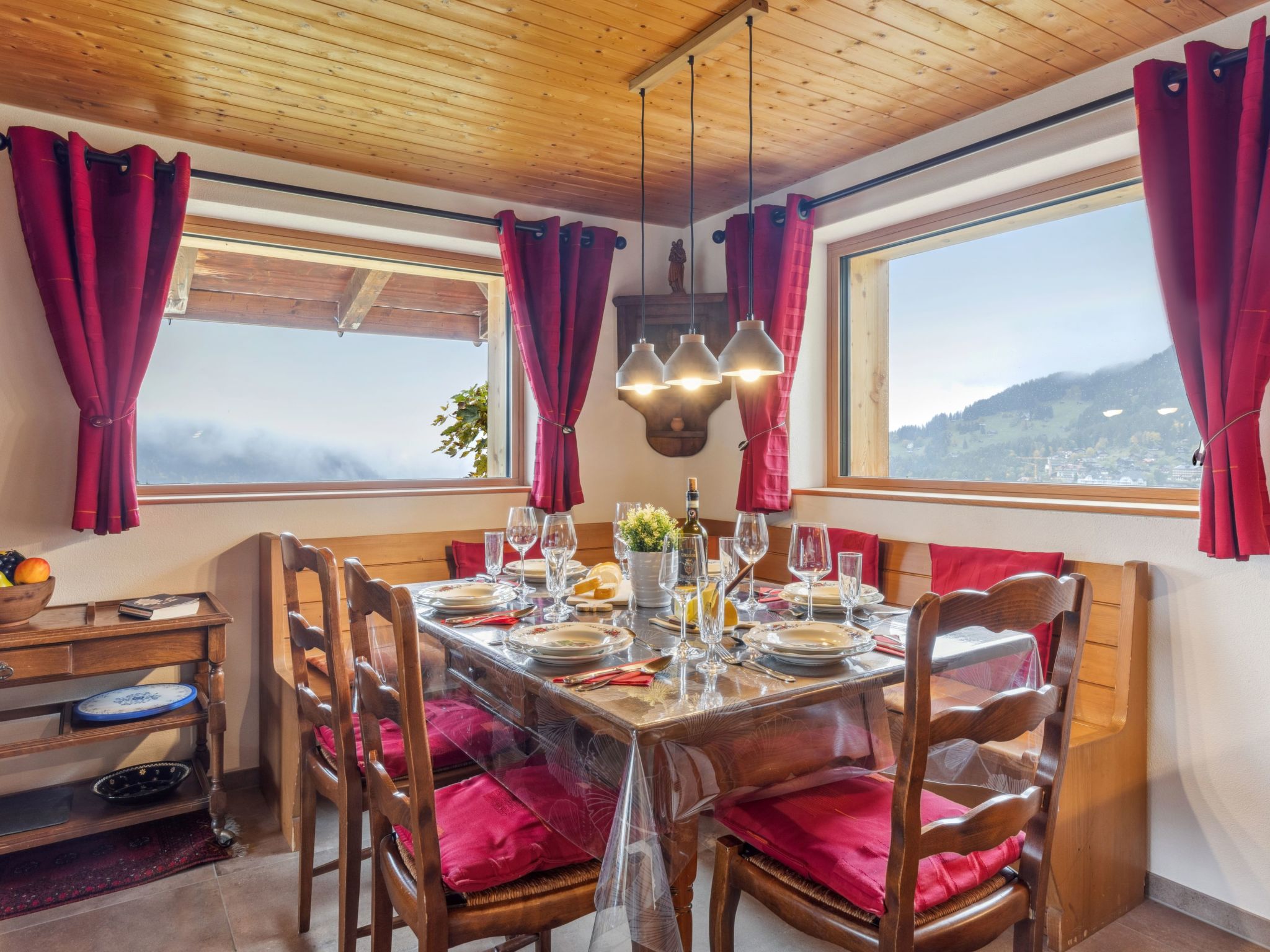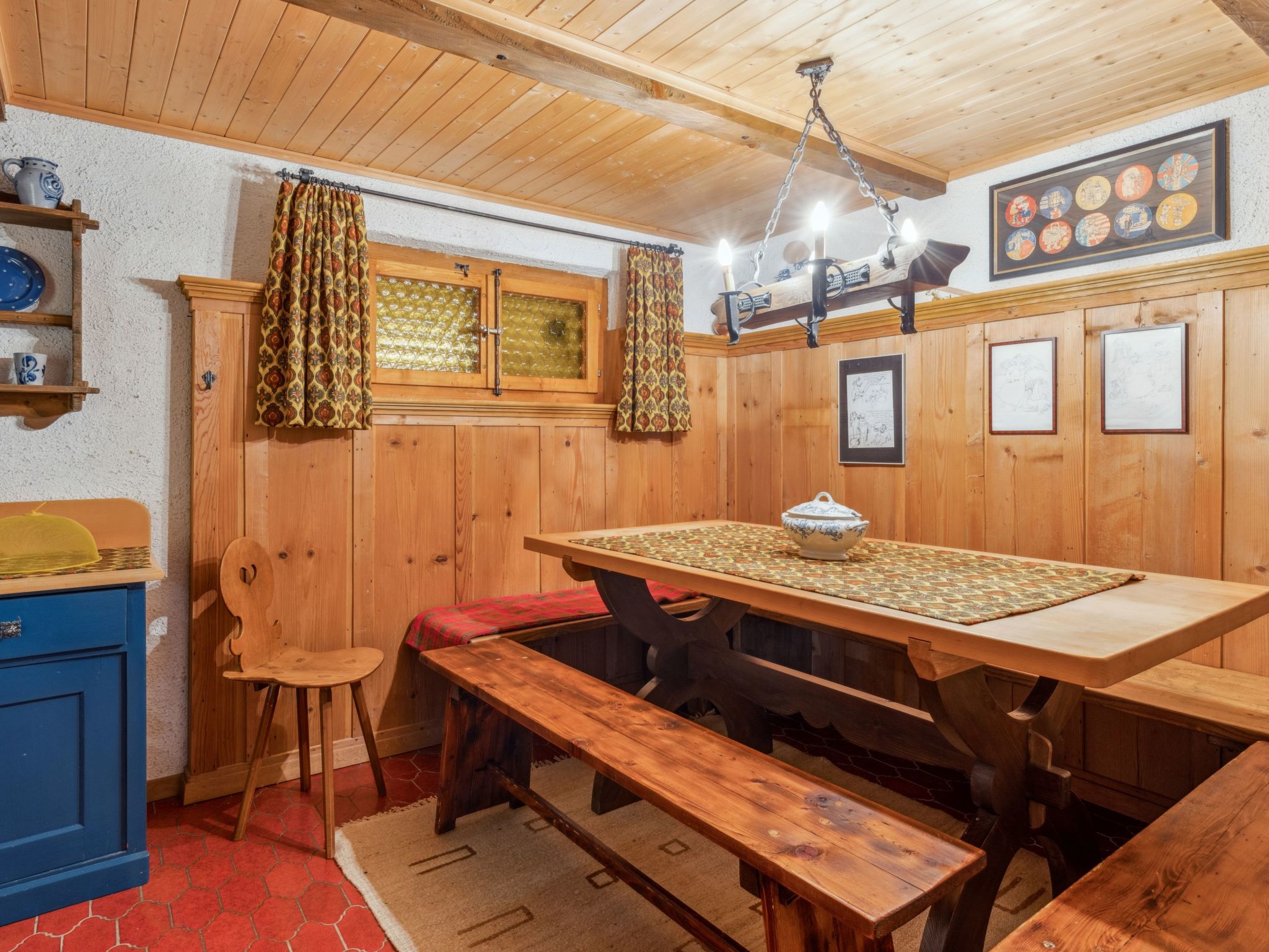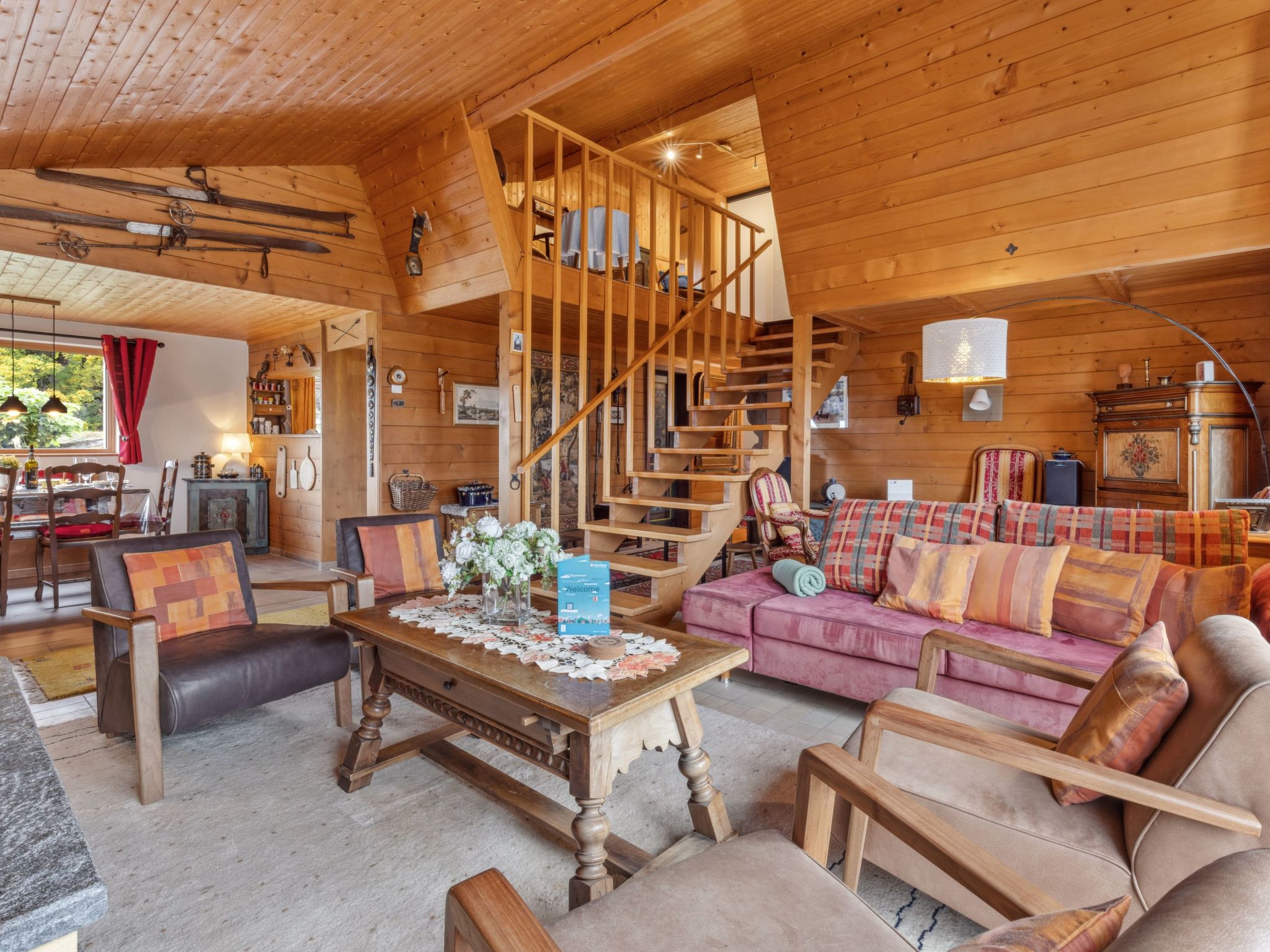 4-Zimmer-Chalet 120 m2 auf 2 Stockwerken. Geräumig, rustikal und gemütlich eingerichtet: Wohn-/Esszimmer mit offenem Kamin, Sat-TV, Radio, CD und DVD. 1 Zimmer mit 1 Doppelbett (2 x 90 cm, Länge 200 cm). Küche (Backofen, Geschirrspüler, 4 Glaskeramikherd Platten, Toaster, Wasserkocher, Mikrowelle, elektrische Kaffeemaschine, Kapseln für die Kaffeemaschine (Dolce Gusto) extra, Racletteofen, Fondue Set (Käse)). Sep. WC, Bad/Dusche/WC. Obergeschoss: abgeschrägt 2 Zimmer, jedes Zimmer mit 2 Betten (90 cm, Länge 200 cm). Grosse Terrasse. Terrassenmöbel. Herrliche Panoramasicht auf die Berge. Zur Verfügung: Bügeleisen, Haartrockner, Holz (extra). Internet (Wireless LAN, gratis). Bitte beachten: geeignet für Familien. Nichtraucher-Unterkunft.