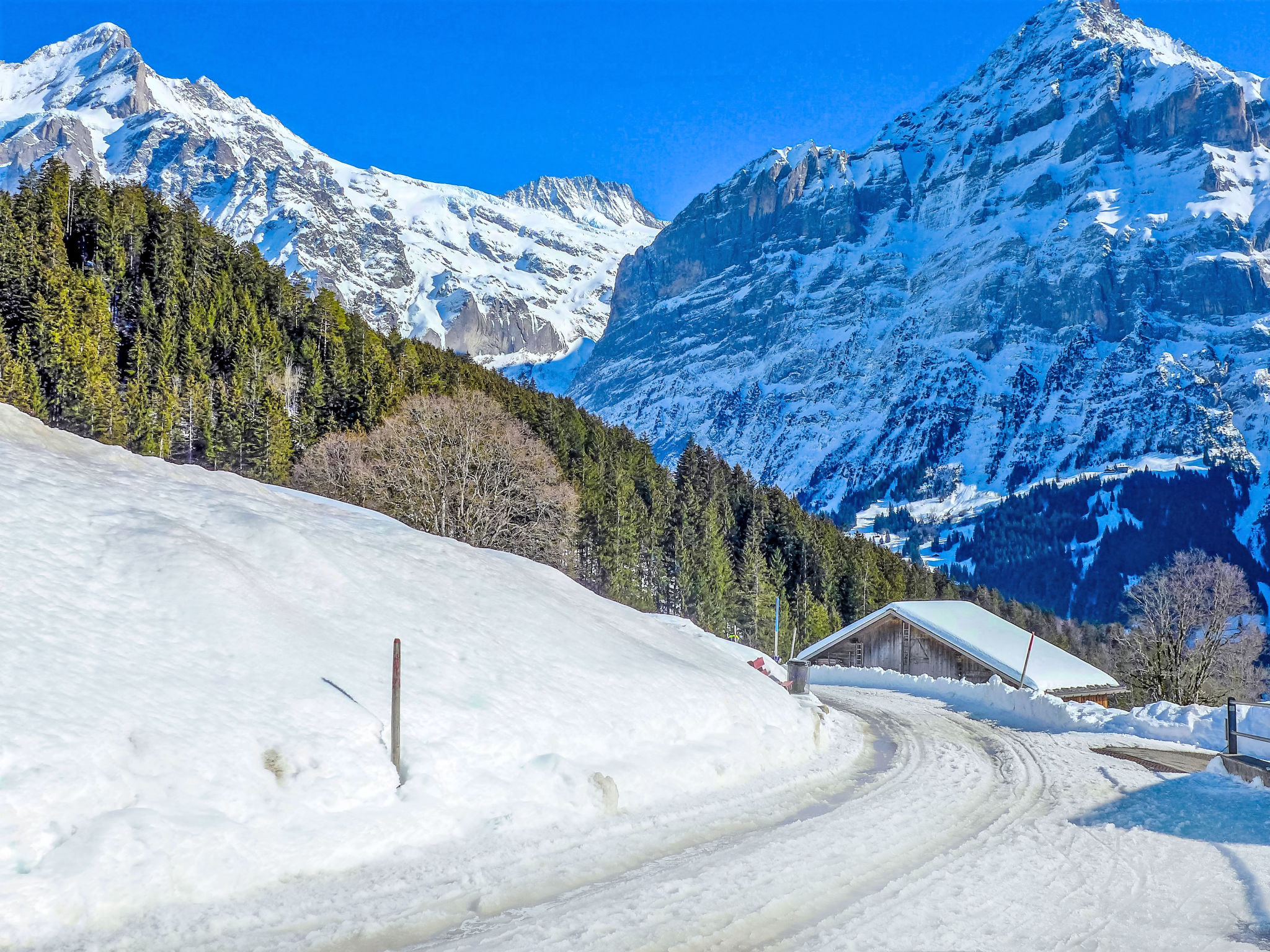Schönes, gemütliches Dreifamilienhaus "Chalet Hobelbank". Oberhalb von Grindelwald, im Ortsteil Oberäll, 2.6 km vom Zentrum, ruhige, sonnige Lage, Richtung Süden. Im Hause: Zentralheizung, Skischuhtrockner. Zur Verfügung: Schlitten (3). Wäschewechsel (zusätzlich extra). Handtuchwechsel (zusätzlich extra). Im Winter bitte Schneeketten mitbringen, im Winter 4x4 empfohlen. Parkplatz Nr. 42D, Einzelgarage Nr. 42D. Einkaufszentrum 2.6 km, Restaurant 2.6 km, Fahrradverleih 3 km, Zentrum zu Fuss in 30 Minuten erreichbar, Bushaltestelle "Dec.-March/June-Oct." 50 m, Bahnstation "Grindelwald Dorf" 2.6 km, Freibad 3.5 km, Hallenbad 2.7 km. Golfplatz (9 Loch) 4.5 km, Tennis 4 km, Minigolf 2.9 km, Sportzentrum 2.7 km, Gondelbahn 3.2 km, Skiverleih 2.7 km, Skibushaltestelle 50 m, Schlittelbahn 10 m, Langlaufloipe 4 km, Kinderspielplatz 2.7 km. Bekannte Seen in der Umgebung sind gut erreichbar: Thuner-/Brienzersee 18 km. Bitte beachten: Fahrzeug empfohlen. Geeignet für Familien. Objekt geeignet für 2 Erwachsene + 2 Kinder. Gratis Skibus. Der gratis Skibus fährt zum Skigebiet First und Männlichen/Kl. Scheidegg. Die Nachbarschaft ist sehr lärmempfindlich. Ruhe und gutes Benehmen wird erwartet.