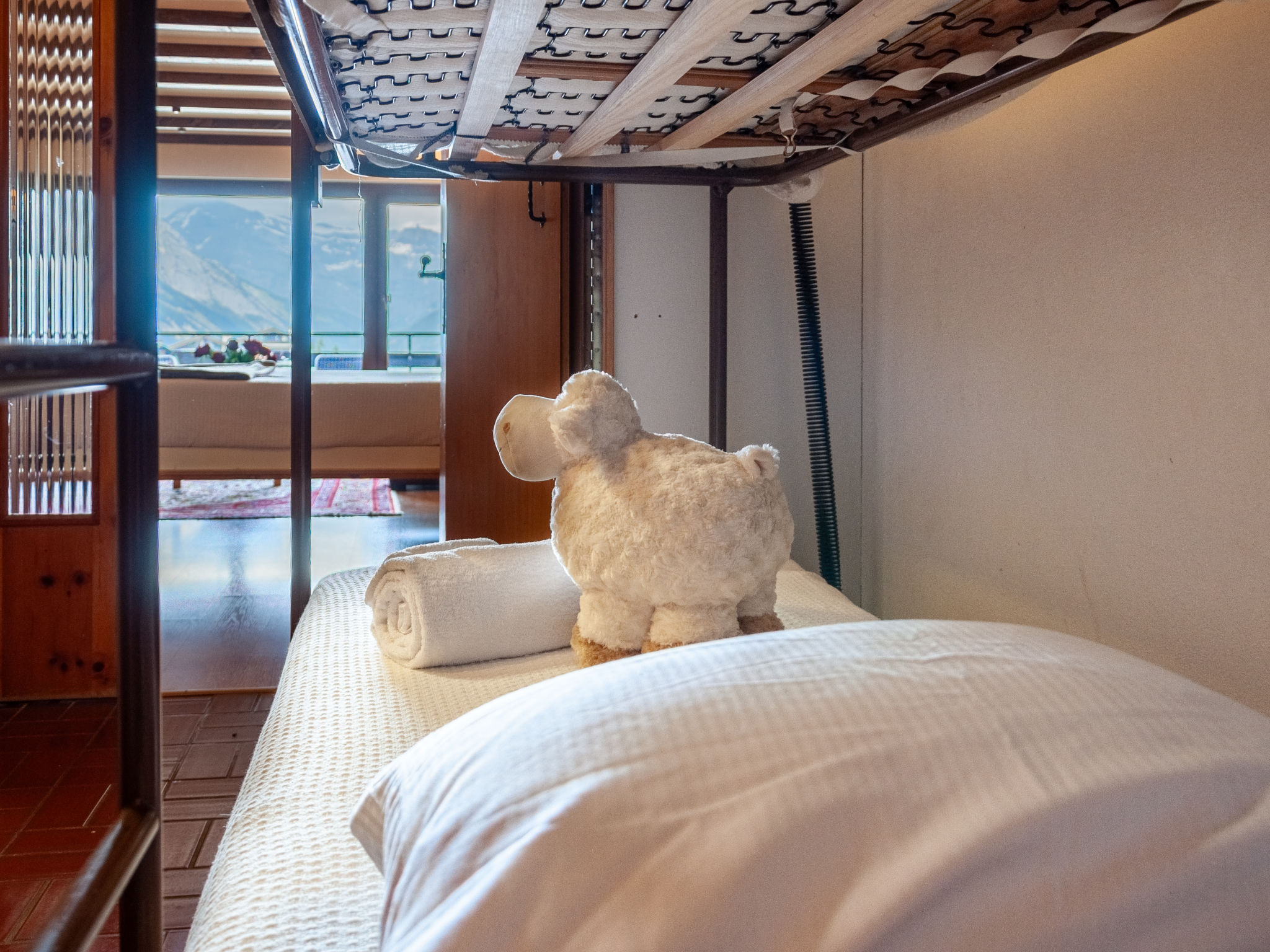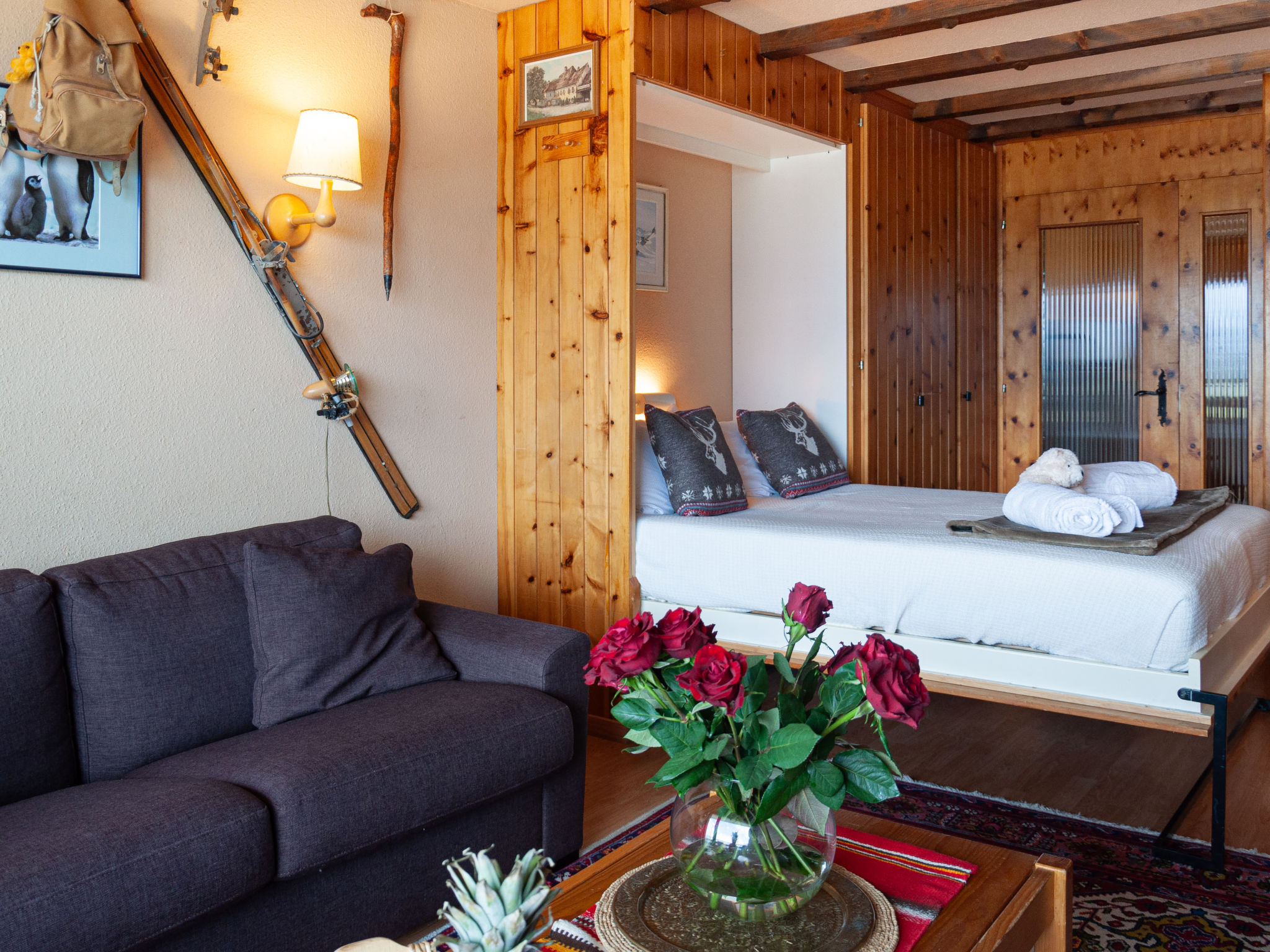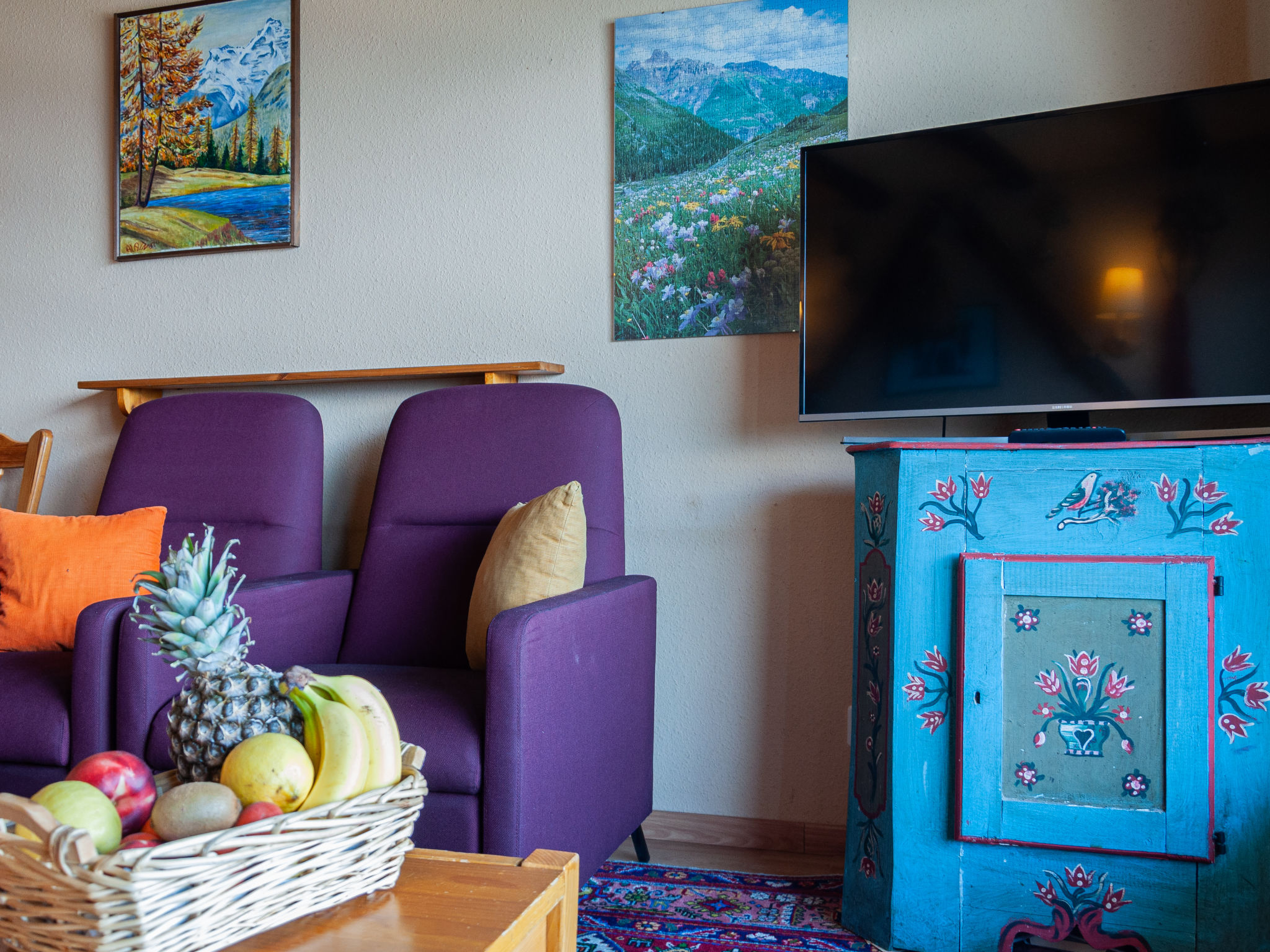 "Christiania I R3", 1-Zimmer-Studio 36 m2 im 3. Stock, Nordlage. Objekt geeignet für 2 Erwachsene + 2 Kinder. Zweckmässig eingerichtet: Wohn-/Esszimmer mit 1 franz. Wandschrankbett (140 cm, Länge 190 cm), Kabel-TV. Ausgang zum Balkon. Eingang mit 1 x 2 Etagenbetten (80 cm, Länge 180 cm). Kleine Küche (4 Kochplatten, Backofen). Bad/WC. Balkon, Nordwestlage. Zur Verfügung: Internet (Wireless LAN, gratis). Parkplatz Nr. 6C (überdacht), Höhe 190 cm. Bitte beachten: Nichtraucher-Unterkunft.