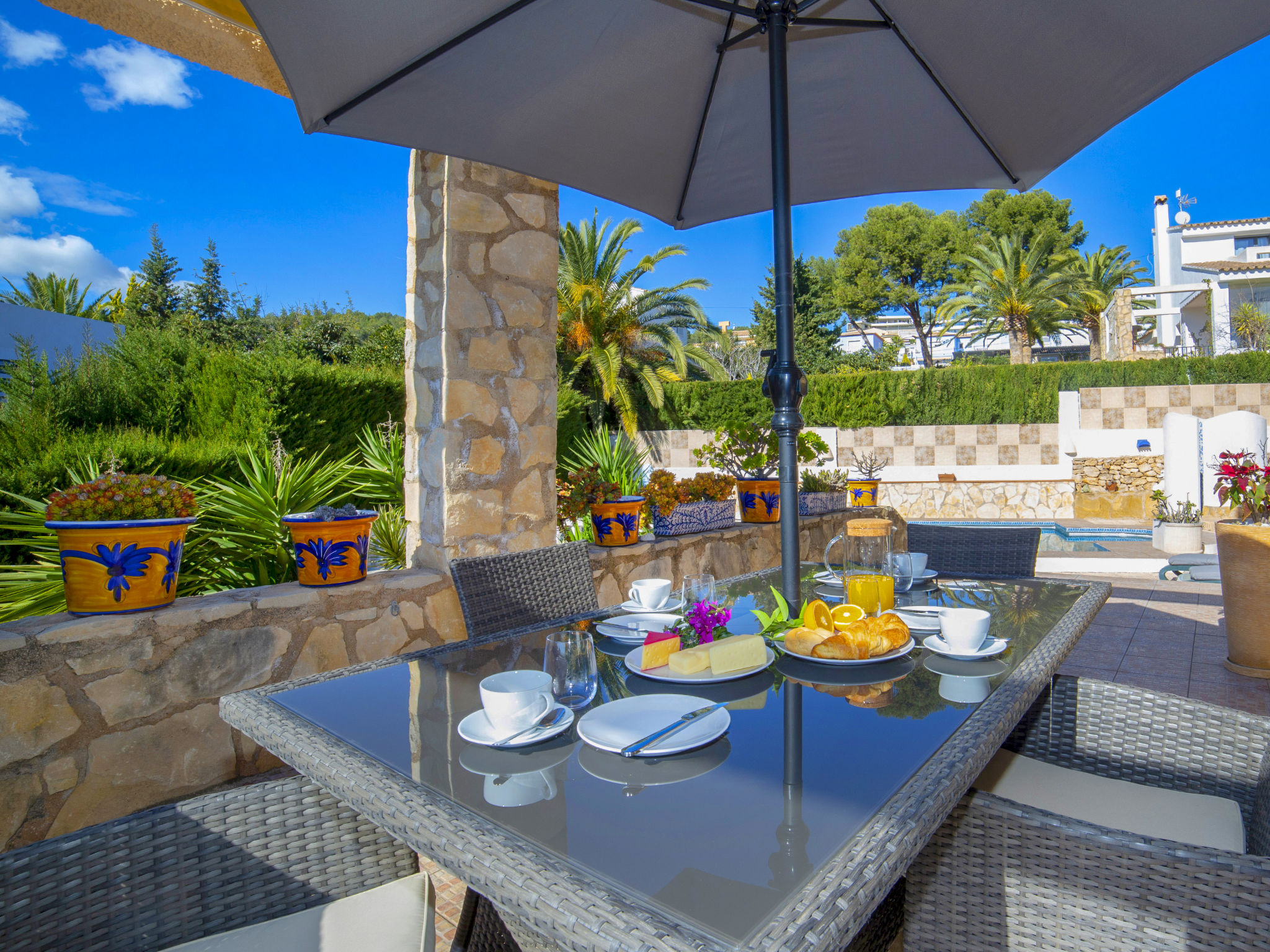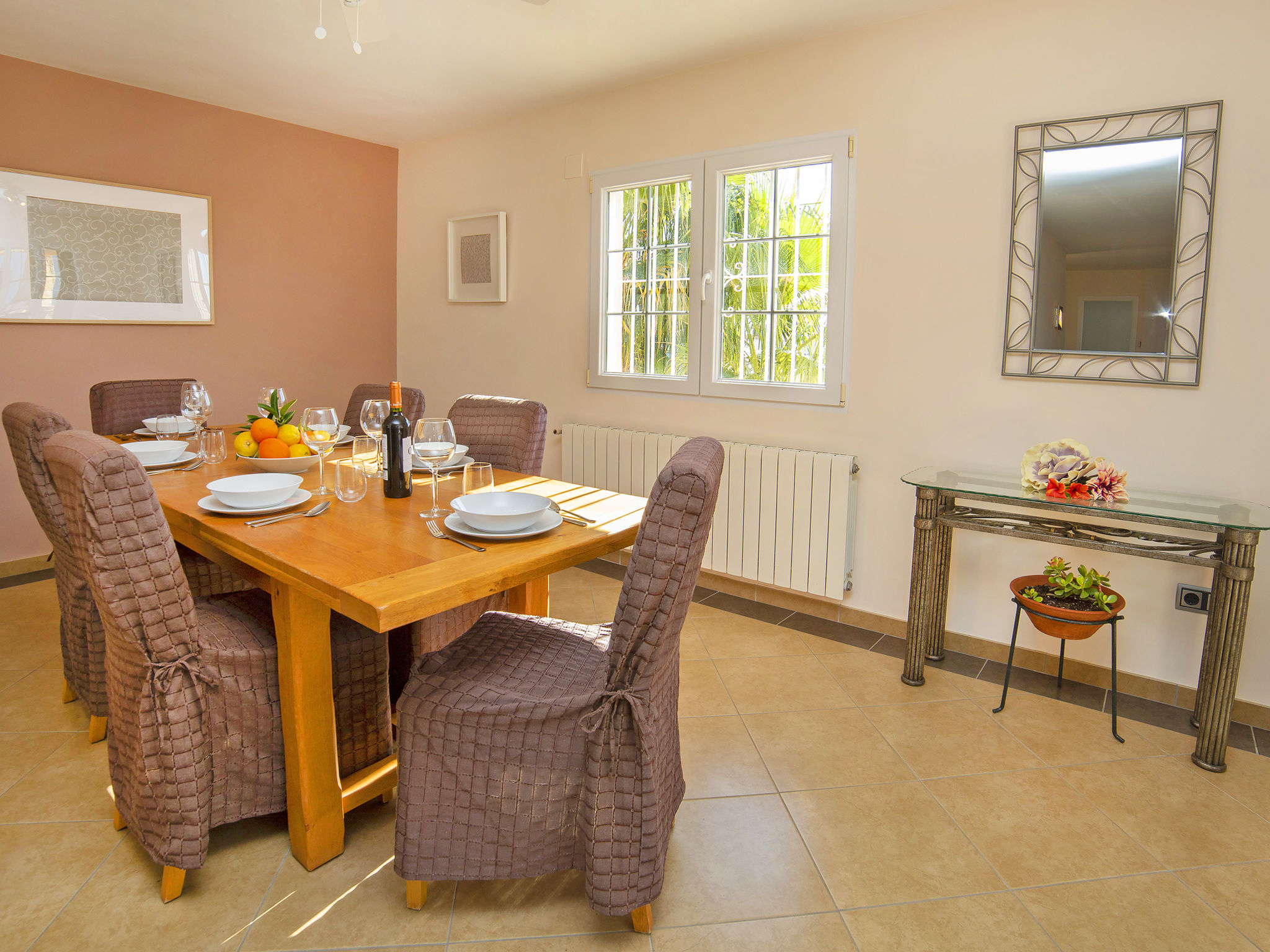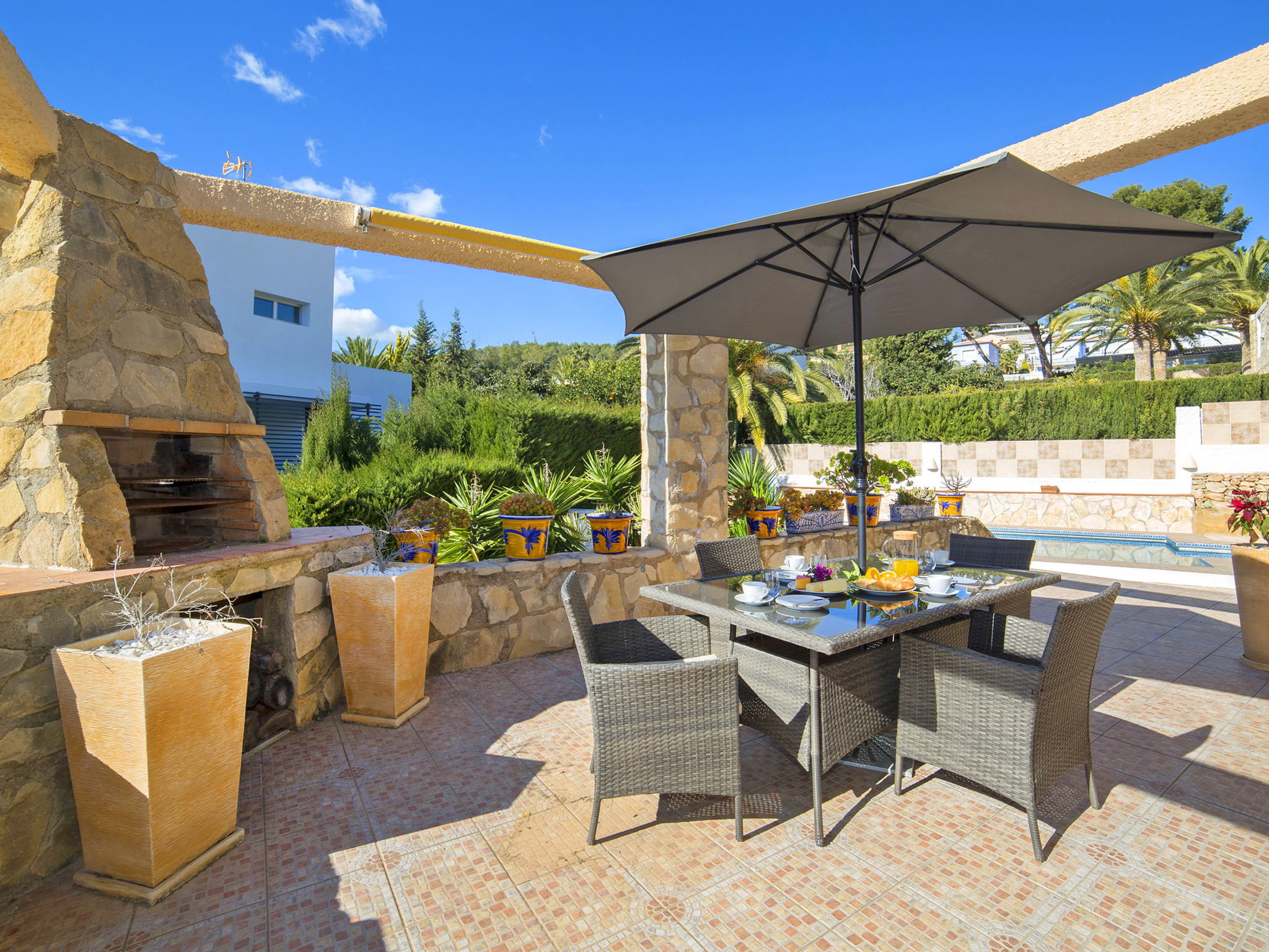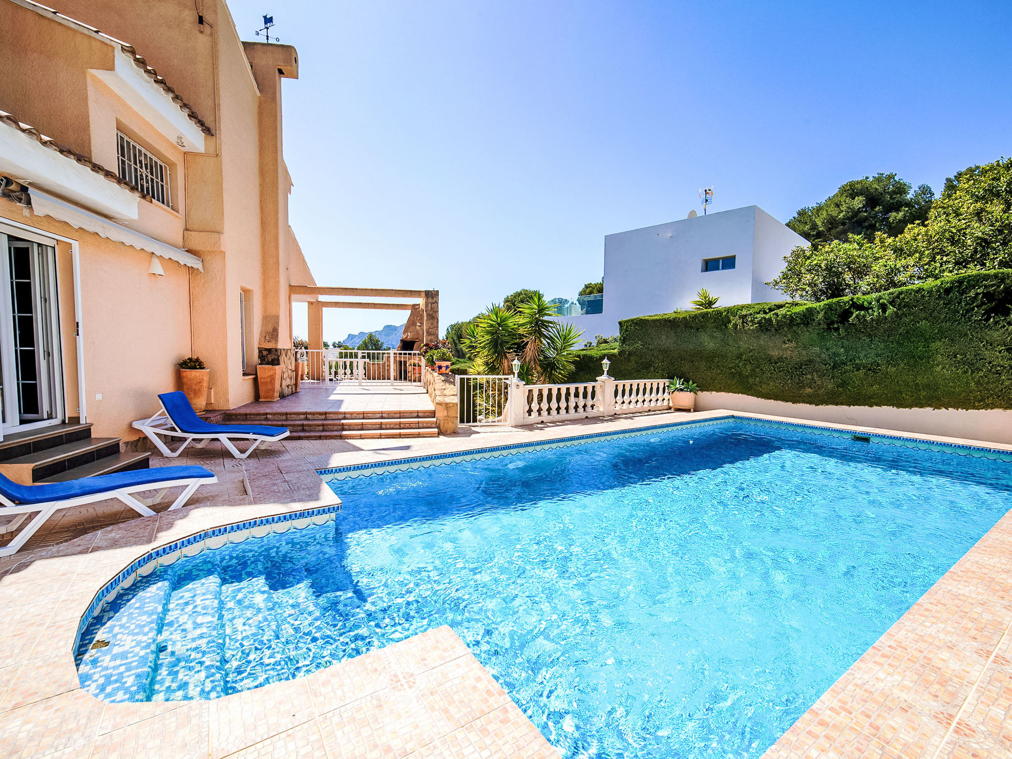 Gran Sol 3 km von Calpe: Grosses, kinderfreundliches Haus "Nadine", auf 2 Stockwerken. Ausserhalb des Ortes, 3 km vom Zentrum von Calpe, im Bezirk Gran Sol, sonnige Lage im Villenviertel, 1.8 km vom Meer, 1.8 km vom Strand. Zur Alleinbenutzung: Grundstück 914 m2 (eingezäunt), Obstgarten, Schwimmbad eingezäunt (4 x 8 m, saisonale Verfügbarkeit: 01.Jan. - 31.Dez.). Aussendusche, Gartenmöbel. Im Hause: Waschmaschine, Heizung nur verfügbar von 01.Nov. - 30.Apr.. Parkplatz. Einkaufsgeschäft 3.3 km, Lebensmittelgeschäft 3.3 km, Supermarkt 3.3 km, Restaurant 3.1 km, Café 3.1 km, Biergarten 3.1 km, Bushaltestelle "Parroqui La Merced" 2.6 km, Sandstrand "Playa La Fustera" 1.8 km, Badebucht 1.8 km. Sporthafen 2.6 km, Jacht-Hafen 2.6 km, Surfschule 2.6 km, Segelschule 2.6 km. Nahe gelegene Sehenswürdigkeiten: Peñon de Ifach 5.4 km, Parque Las Salinas 4.8 km. Wandergebiete: Sendero la Calaga 2.6 km. Bitte beachten: Fahrzeug empfohlen. Geeignet für Familien. Der Besitzer akzeptiert keine Jugendgruppen.