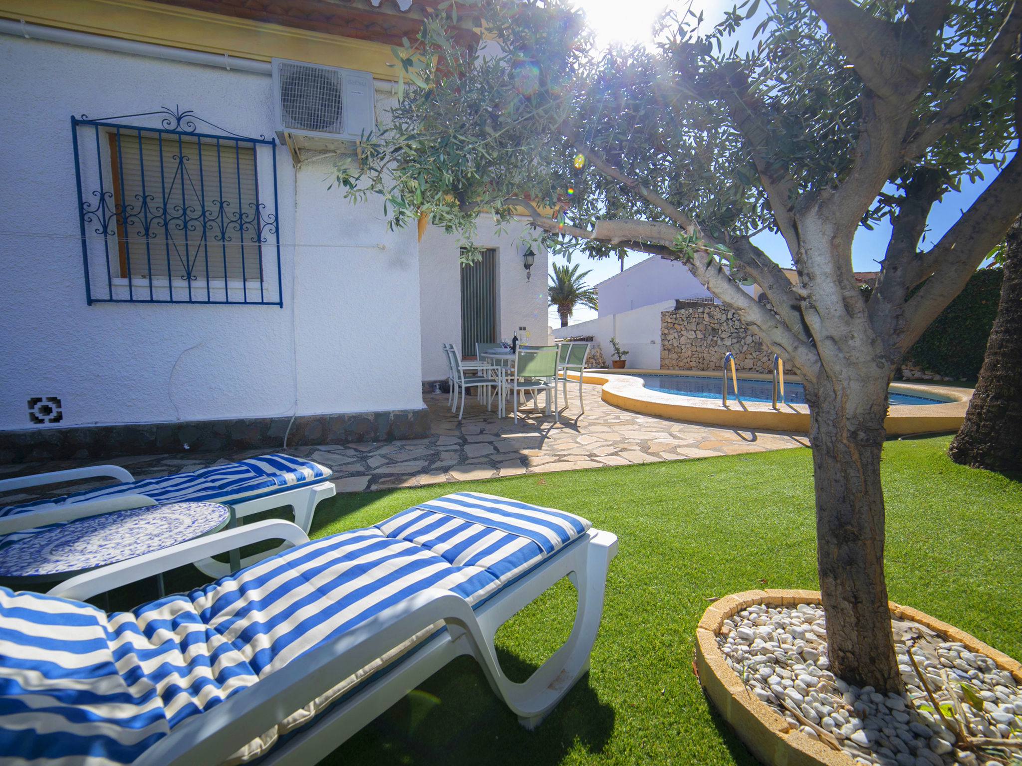 "Antonia", 5-Zimmer-Villa 272 m2 auf 3 Stockwerken. Geräumig und hell, komfortabel und schön eingerichtet: Wohn-/Esszimmer mit Sat-TV, Digital-TV, Klimaanlage und Warmluftheizung. 1 Zimmer mit 1 franz. Bett (1 x 180 cm, Länge 200 cm), Klimaanlage und Warmluftheizung. 1 Zimmer mit 1 franz. Bett (1 x 140 cm, Länge 200 cm), Klimaanlage und Warmluftheizung. Offene Küche (Backofen, Geschirrspüler, 3 Glaskeramikplatten, Toaster, Wasserkocher, Mikrowelle, elektrische Kaffeemaschine). Ausgang zur Terrasse, zum Schwimmbad. Dusche/Bidet/WC. Solarstrom. Unteres Geschoss: (Aussentreppe) Wohn-/Schlafzimmer mit 1 franz. Bett (1 x 135 cm, Länge 200 cm), Klimaanlage und Warmluftheizung. Dusche/WC. Obergeschoss: 1 Zimmer mit 1 franz. Bett (1 x 150 cm, Länge 200 cm), Bad/Bidet/WC, Klimaanlage und Warmluftheizung. Grosse Terrasse. Terrassenmöbel, Gartengrill, Sitzplatz. Sicht auf die Ortschaft und das Städtchen. Zur Verfügung: Waschmaschine, Bügeleisen, Kinderhochstuhl, Babybett bis 2 Jahre, Haartrockner. Internet (WLAN, gratis). Parkplatz (2 Autos). Bitte beachten: Nichtraucher-Haus. CV-VUT0514479-A // Reg. Nr.: ESFCTU00000302900028622800000000000000000VT-514479-A7