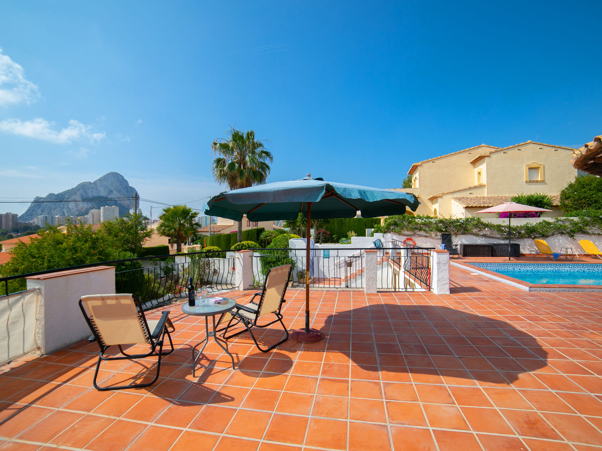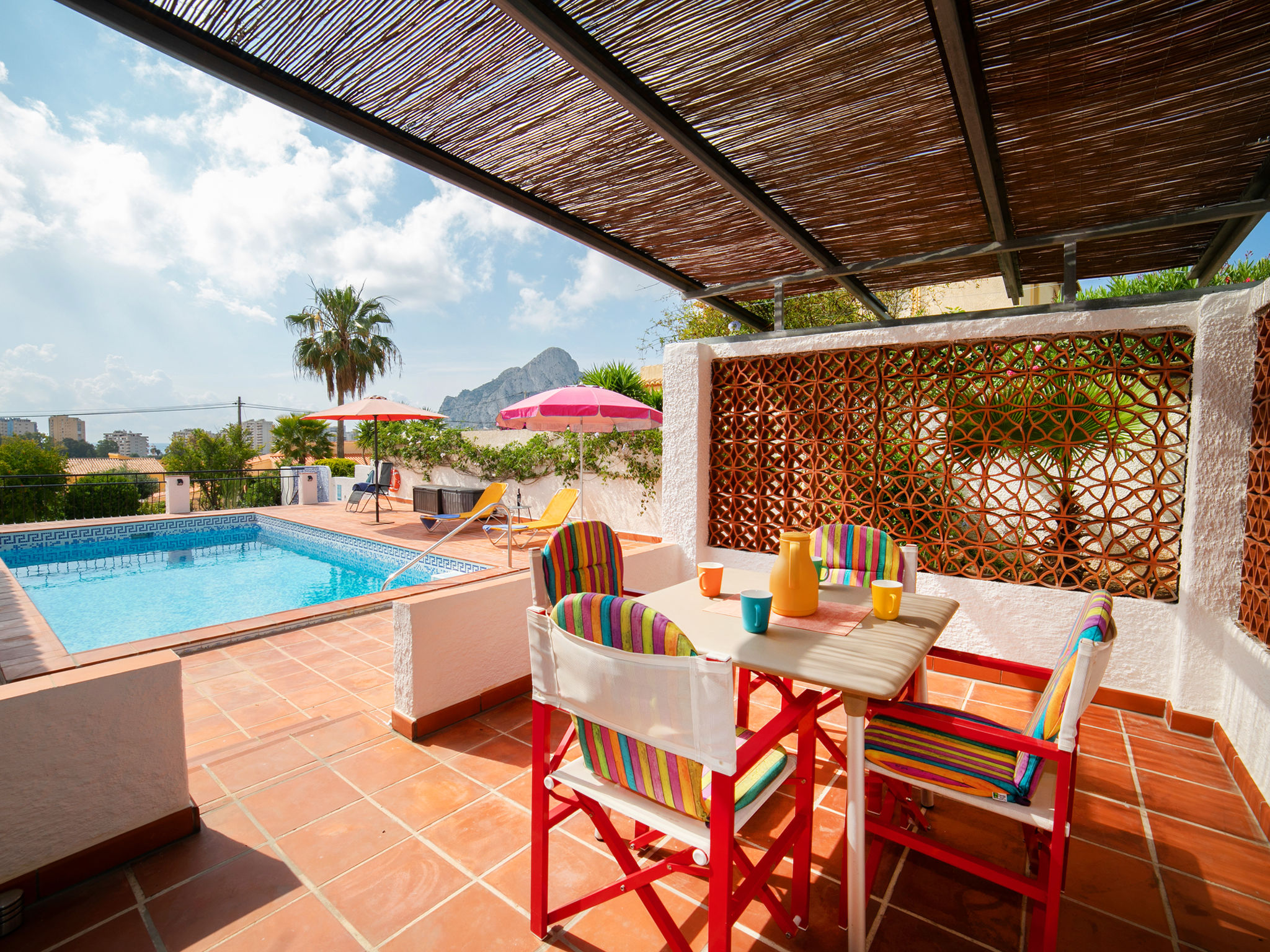 Almendros 2 km von Centro: Schöne, gemütliche Villa "Panorama" im Jahre 2023. 2 km vom Zentrum von Calpe, ausserhalb des Ortes, 2 km vom Zentrum von Calpe, im Bezirk Vallesa, 1.3 km vom Meer, 1.3 km vom Strand. Zur Alleinbenutzung: Grundstück 924 m2 (eingezäunt), Schwimmbad (8 x 4 m, saisonale Verfügbarkeit: 01.Jan. - 31.Dez.). Aussendusche, Terrasse, Grill, Parkplatz (für 2 Autos). Einkaufsgeschäft 1.8 km, Lebensmittelgeschäft, Supermarkt 450 m, Bäckerei 1.8 km, Café 1.8 km, Bushaltestelle "Bus" 400 m, Sandstrand "Playa Arenal-Bol" 1.3 km, Tauchzentrum 2.8 km. Sporthafen 3.2 km, Jacht-Hafen 3.2 km, Surfschule 3.2 km, Segelschule 3.2 km. Nahe gelegene Sehenswürdigkeiten: Parque atracciones Terra Mítica 35 km, Parque acuático Aqualandia 25 km. Wandergebiete: Parque natural Peñon de Ifach 2 km. Der Besitzer akzeptiert keine Jugendgruppen.