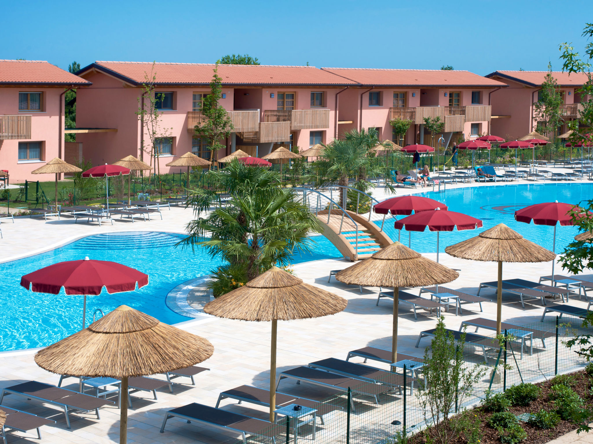 Kinderfreundliche, schöne Ferienanlage "Green Village Eco Resort". Im Ortsteil Riviera, 1.5 km vom Zentrum von Lignano-Riviera, 13 km vom Zentrum von Bibione, 95 km vom Zentrum von Trieste, 1.8 km vom Meer, am Golfplatz. Zur Mitbenutzung: Grundstück 4 ha, gepflegter Garten mit Rasen und Pflanzen, Schwimmbad (690 m2, saisonale Verfügbarkeit: 13.Mai. - 26.Sep.). Ungleichmässige Schwimmbadform, Kinderbecken, Tischtennis, Kinderspielplatz. In der Anlage: Empfang, Restaurant, Bar, Aufenthaltsraum, Wireless LAN, Sauna, Dampfbad, Sprudelbad (alles inkl.), Waschmaschine, Wäschetrockner (zur Mitbenutzung, extra), Fahrradverleih. Wäschewechsel 1 mal wöchentlich. Handtuchwechsel 2 mal wöchentlich. Wohnungsreinigung 1 mal wöchentlich (inkl.). Frühstück und Halbpension möglich (extra). Parkplatz beim Haus. E-Ladestation. Supermarkt 1.5 km, Bushaltestelle 100 m, Bahnstation "Latisana (Venezia-Trieste)" 20 km, Sandstrand 1.8 km. Jacht-Hafen 1 km, Golfplatz (18 Loch) 200 m. Nahe gelegene Sehenswürdigkeiten: Venezia 95 km, Riserva Naturale Valgrande 8 km, Golf Club Lignano: 20 % reduction on, green fee. Bitte beachten: Animation in der Saison. Geeignet für Familien. Jugendgruppen nur auf Anfrage. Hinweis: Innerhalb 28.09.2025 - 12.05.2026 sowie 27.09.2026 - 06.05.2027 stehen nur die Ferienhäuser und Ferienwohnungen zur Verfügung. Alle anderen Einrichtungen bleiben geschlossen.