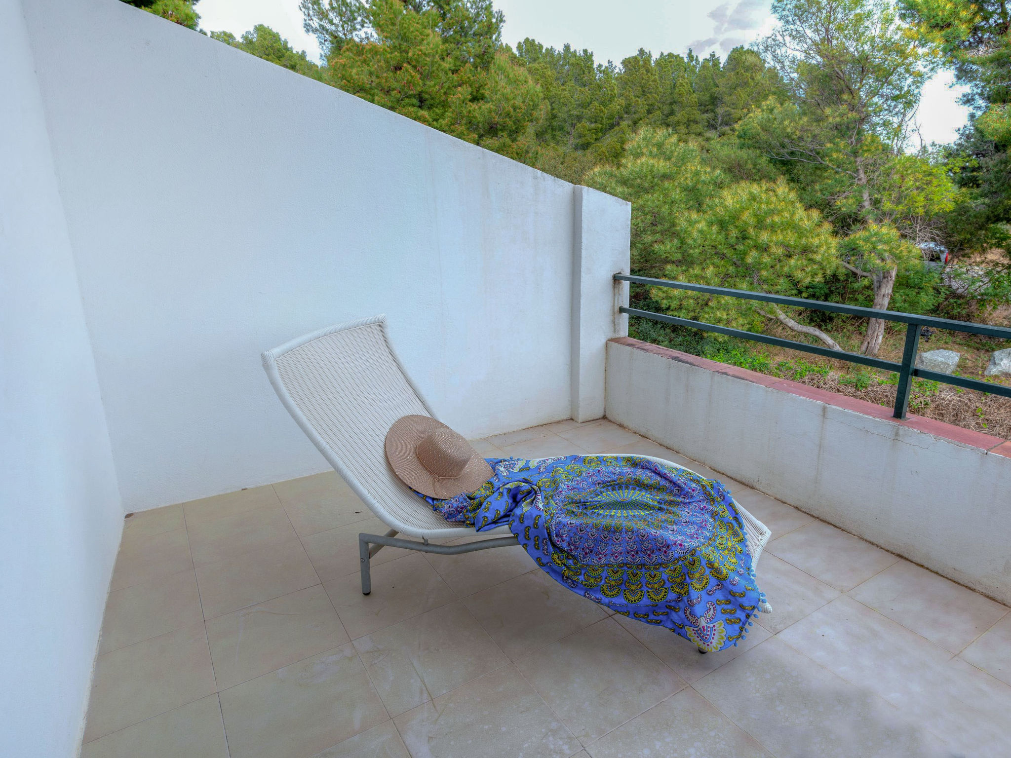 3-Zimmer-Wohnung 65 m2 im 1. Stock. Komfortabel und gemütlich eingerichtet: Wohn-/Esszimmer 25 m2 mit 1 Diwanbett, Digital-TV und Flachbildschirm. Ausgang zur Terrasse. 1 Zimmer mit 1 franz. Bett (1 x 150 cm, Länge 190 cm). 1 Zimmer mit 1 x 2 Etagenbetten (80 cm), 1 Ausziehbett (1 Pers.). Offene Küche (Backofen, Geschirrspüler, 3 Glaskeramikplatten, Mikrowelle, elektrische Kaffeemaschine, Kapseln für die Kaffeemaschine (Krups, Nespresso) extra) mit Bar. Bad/WC. Keine Heizmöglichkeit. Terrasse 20 m2. Terrassenmöbel, Liegestühle (1). Sicht auf das Meer und den Wald. Zur Verfügung: Waschmaschine, Bügeleisen. Internet (WLAN). Garage. Bitte beachten: geeignet für Familien. Maximal 1 kleines Haustier/Hund erlaubt. TV nur ES. HUTG003295