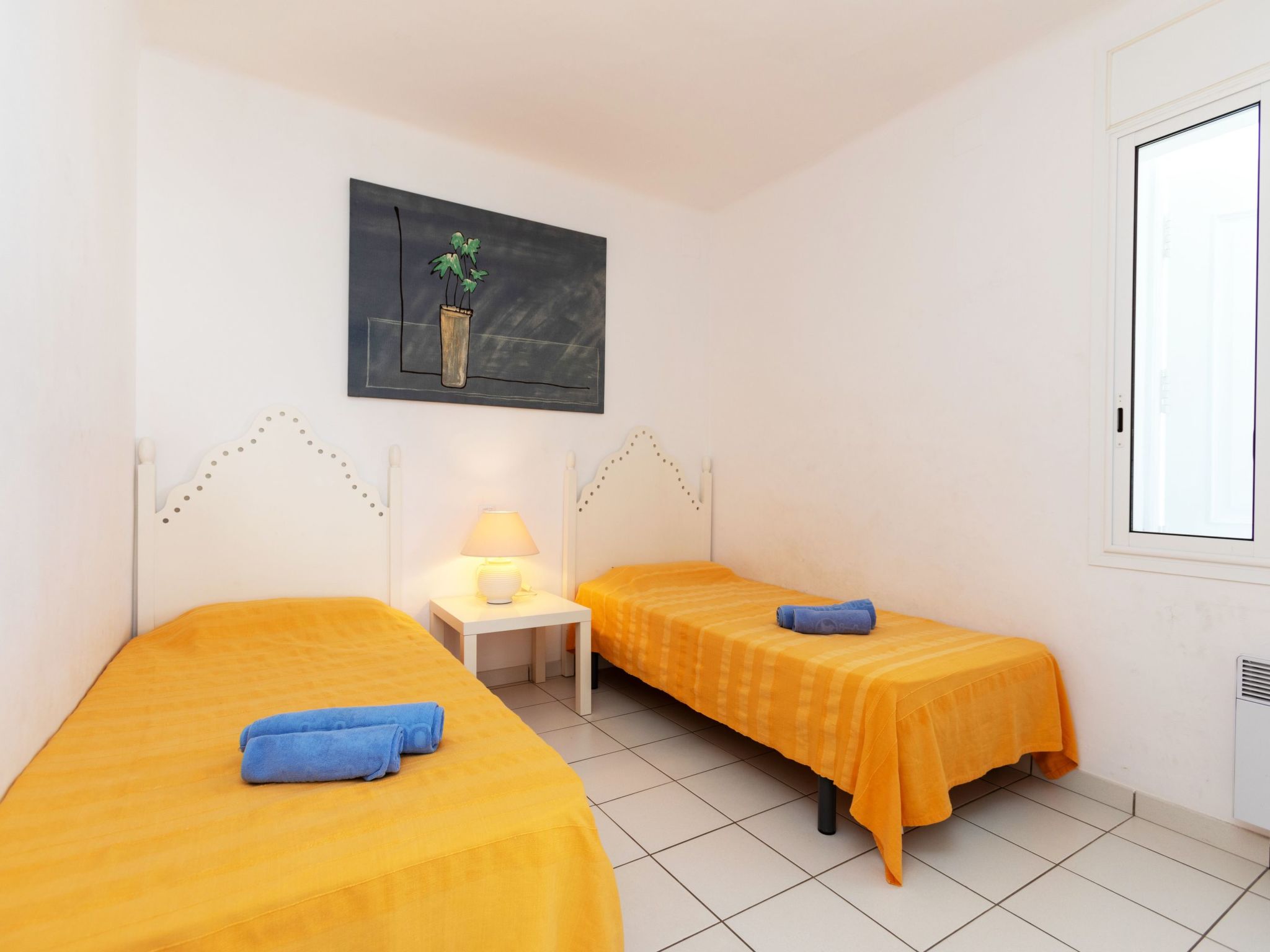 "Graciosa Blanco", 3-Zimmer-Wohnung 50 m2 im 3. Stock. Hell, einfach eingerichtet: Wohn-/Esszimmer mit Sat-TV. Ausgang zur Terrasse. 1 Zimmer mit 1 franz. Bett (1 x 150 cm, Länge 190 cm). 1 Zimmer mit 2 Betten (90 cm, Länge 190 cm). Kleine, offene Küche (4 Kochplatten, Backofen, Geschirrspüler, Toaster, Wasserkocher, Tiefkühler, elektrische Kaffeemaschine). Dusche/WC. Boiler (80 Liter). Grosse Terrasse. Terrassenmöbel. Schöne Sicht auf das Meer. Zur Verfügung: Waschmaschine, Bügeleisen, Haartrockner. Parkplatz (1 Auto). Bitte beachten: Nichtraucher-Unterkunft. HUTG-010205 // Reg. Nr.: ESFCTU00001702000029568800000000000000000HUTG-0102051