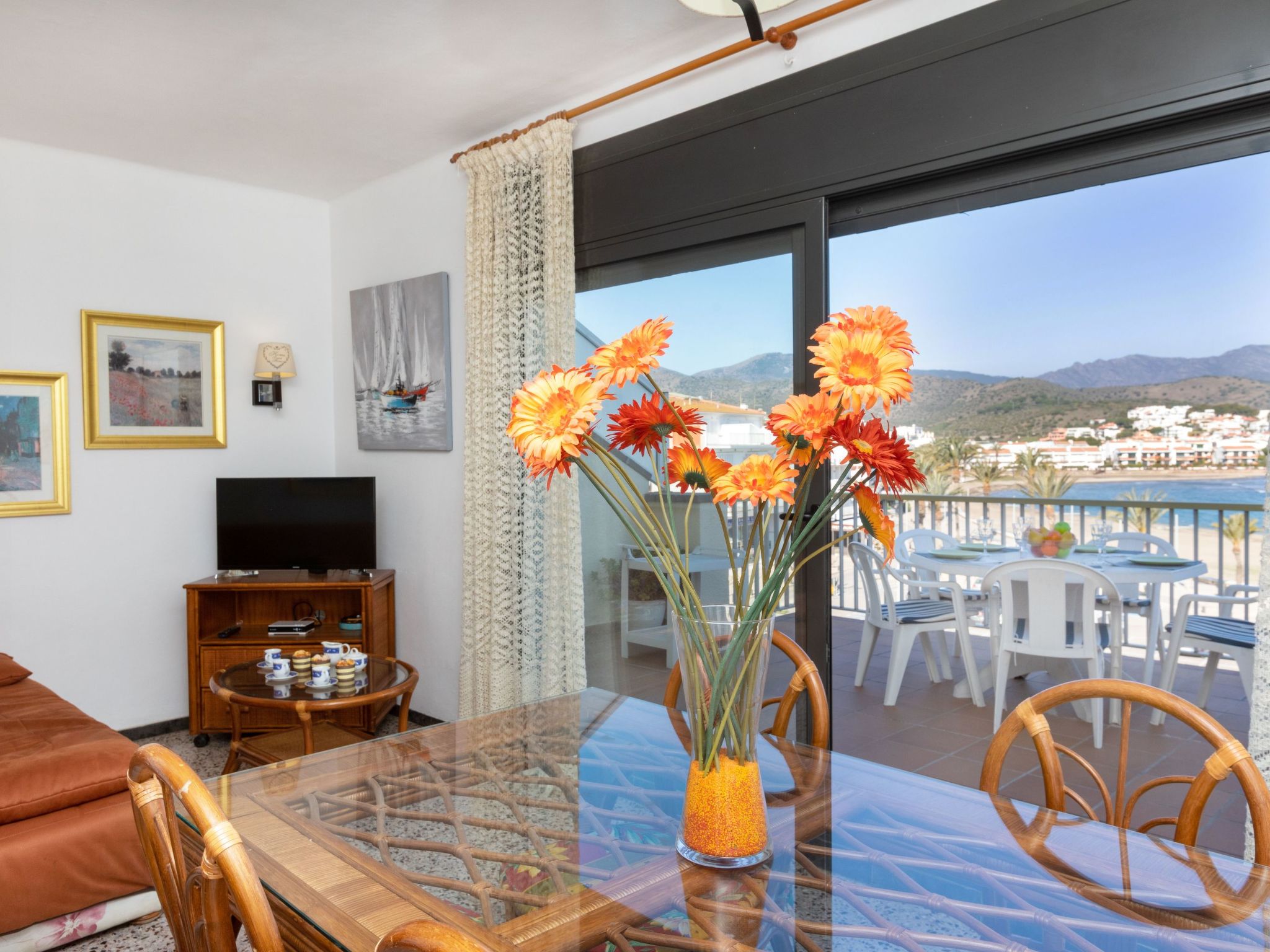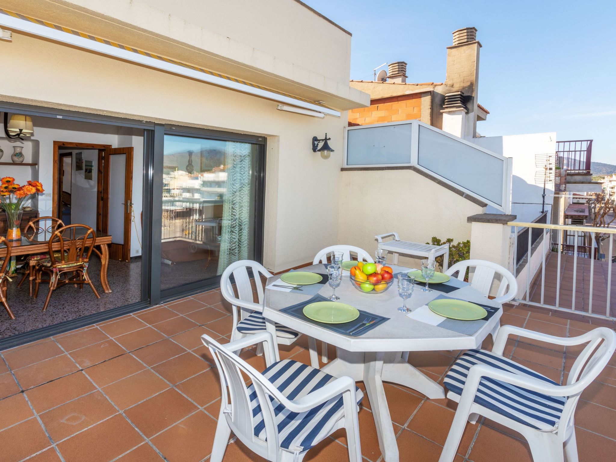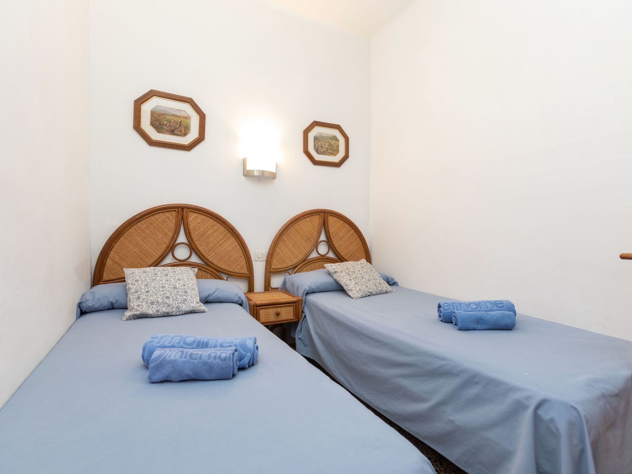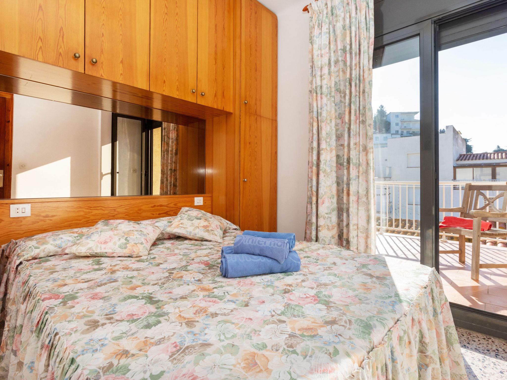 "Tamariu II", 3-Zimmer-Attikawohnung 50 m2 im 3. Stock. Hell, zweckmässig und gemütlich eingerichtet: Wohn-/Esszimmer mit Esstisch, Sat-TV und Flachbildschirm. Ausgang zur Terrasse. 1 Zimmer mit 1 franz. Bett (1 x 135 cm). Ausgang zur Terrasse. 1 Zimmer mit 2 Betten (90 cm). Kleine Küche (4 Kochplatten, Backofen, Toaster, Mikrowelle, elektrische Kaffeemaschine). Sitzbad/Bidet/WC. Keine Heizmöglichkeit. Grosse Terrasse 17 m2, kleine Terrasse 3 m2. Terrassenmöbel. Herrliche Sicht auf das Meer, die Berge und die Ortschaft. Zur Verfügung: Waschmaschine, Bügeleisen. Bitte beachten: TV nur ES, FR. Kein Fahrstuhl. HUTG-075236 // Reg. Nr.: ESFCTU00001702000025486900000000000000HUTG-075236-623