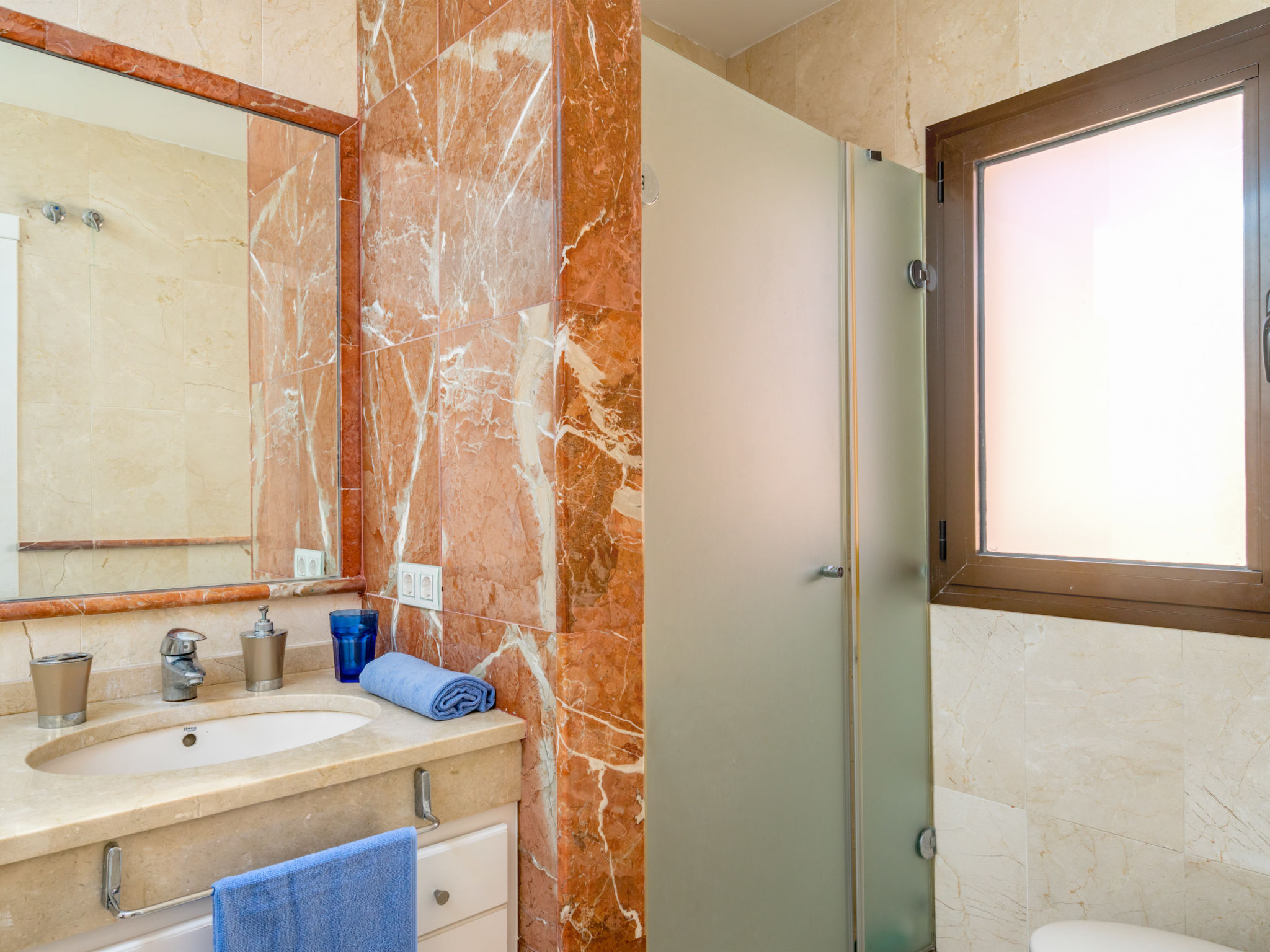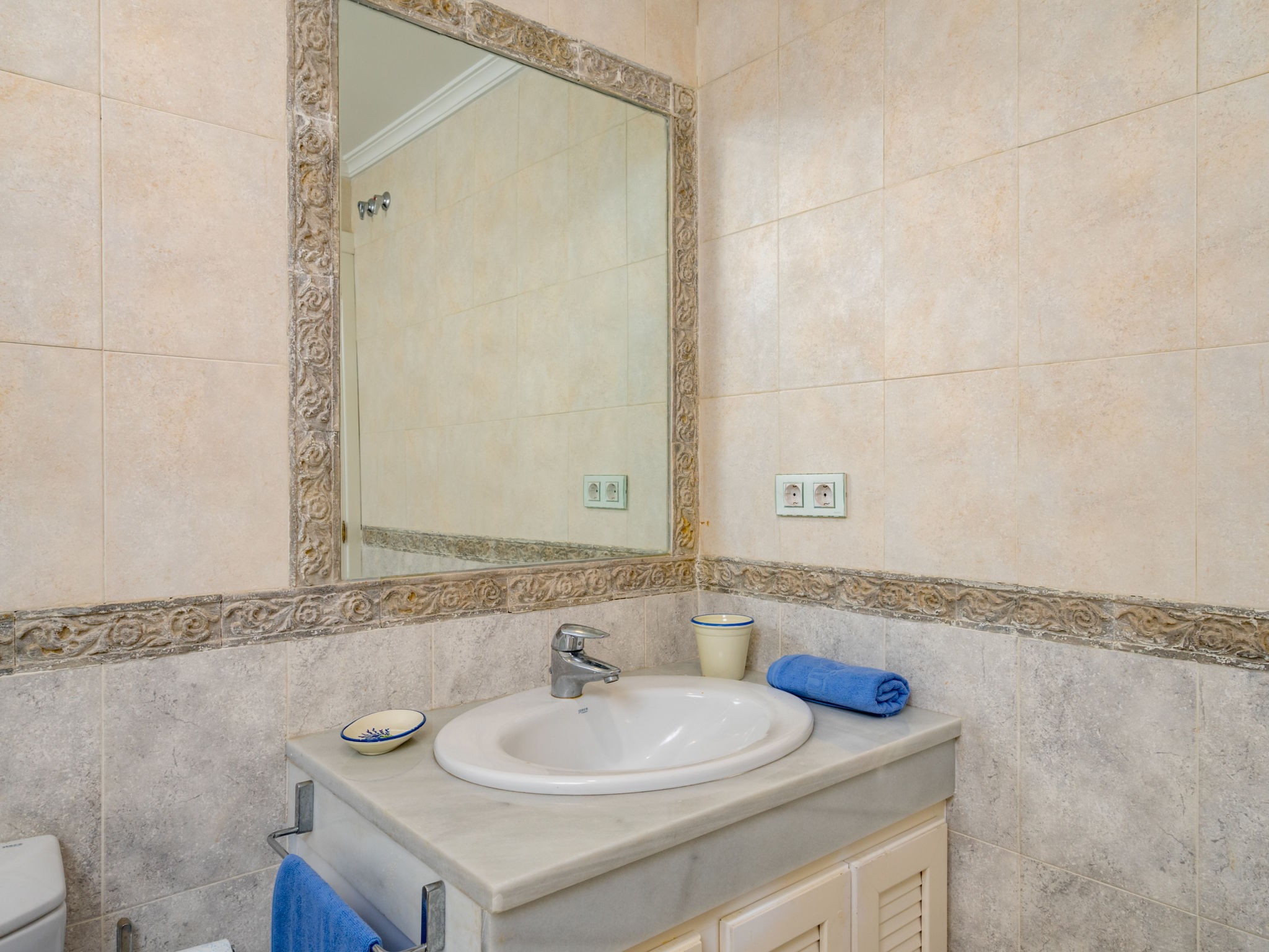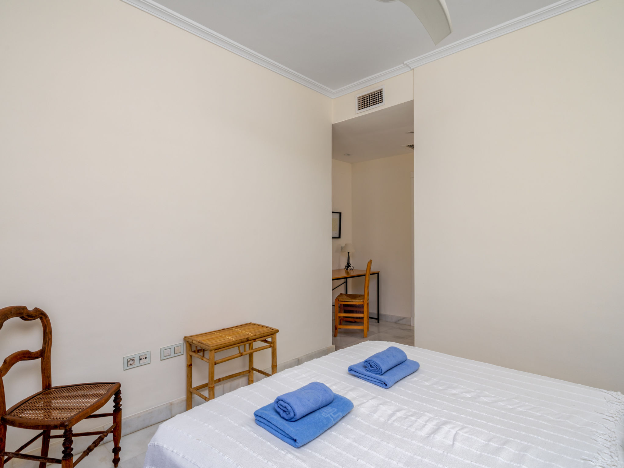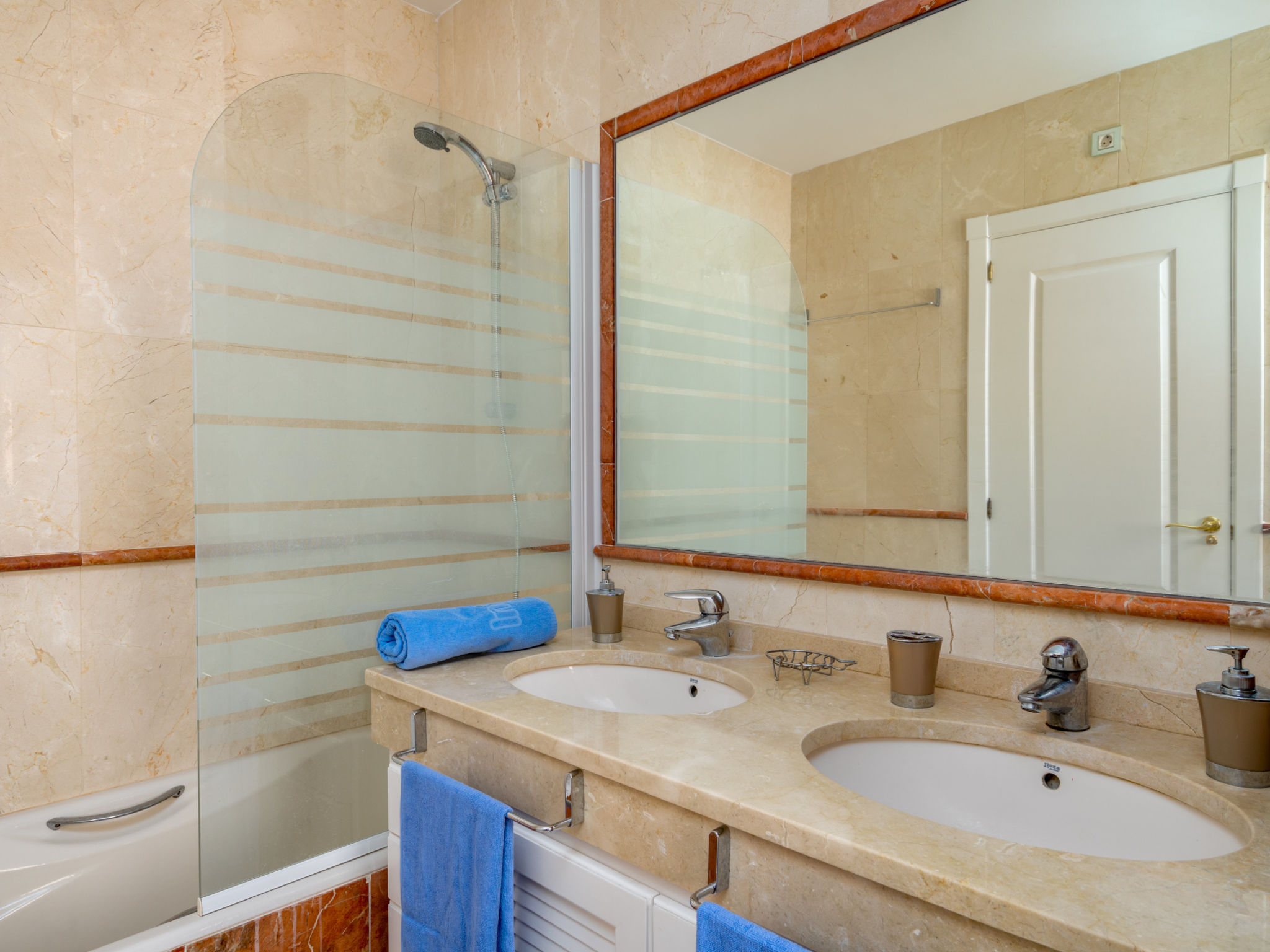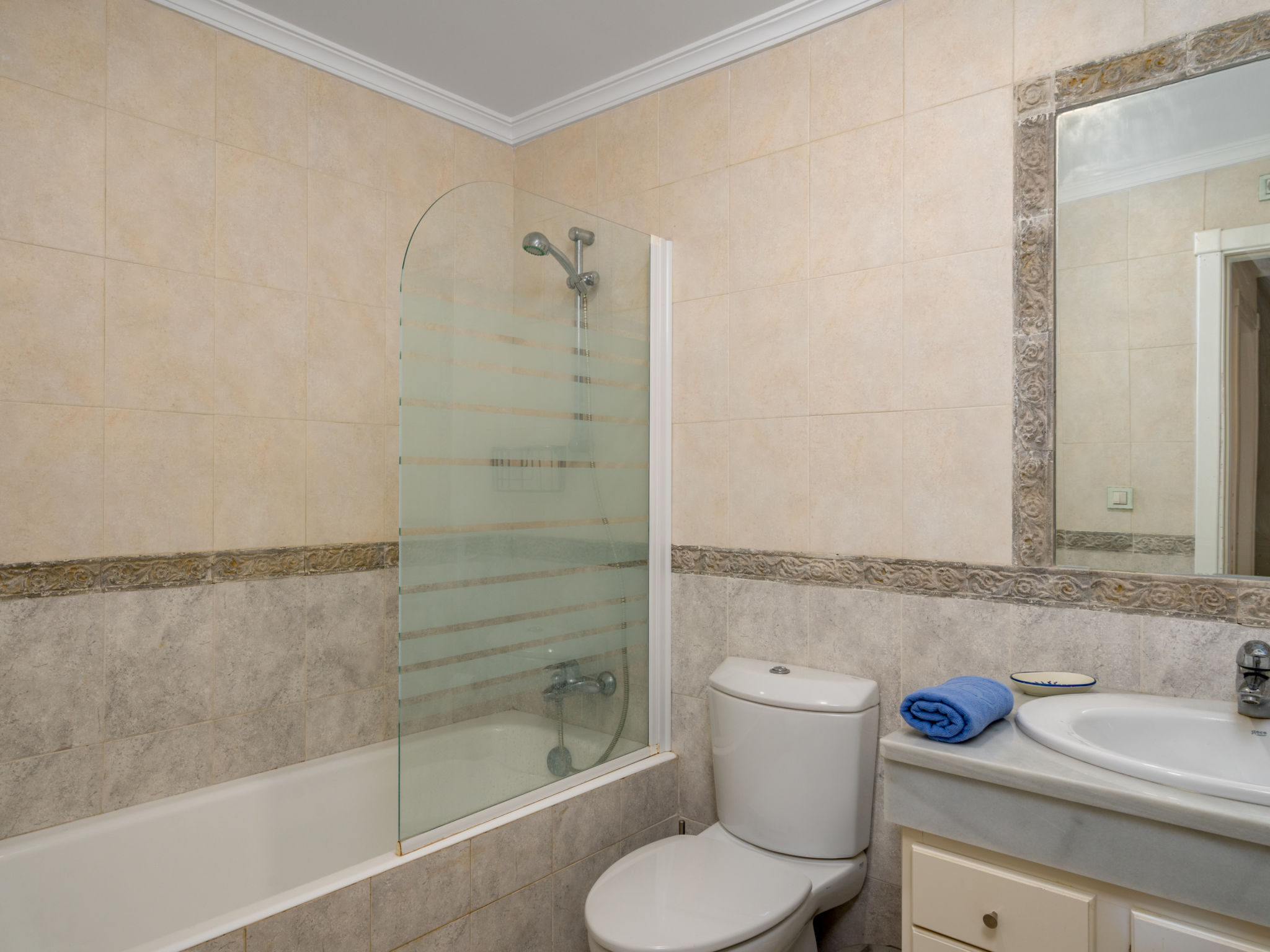 3-Zimmer-Wohnung 100 m2 im 1. Stock. Komfortabel und gemütlich eingerichtet: Wohn-/Esszimmer mit Digital-TV. Ausgang zur Terrasse. 1 Zimmer mit 2 Betten (90 cm, Länge 190 cm). 1 Zimmer mit 1 franz. Bett (160 cm, Länge 200 cm), Bad/Dusche/Bidet/WC. Küche (Backofen, Geschirrspüler, 4 Glaskeramikplatten, Toaster, Wasserkocher, Mikrowelle, Tiefkühler) mit Esstisch. Bad/WC. E-Heizung, Klimaanlage. Terrasse 16 m2. Terrassenmöbel. Zur Verfügung: Waschmaschine, Bügeleisen, Haartrockner. Internet (WLAN, gratis). Parkplatz Nr. 81. Bitte beachten: für Kleinkinder nicht geeignet. Nichtraucher-Unterkunft. VUT/MA/53120 // Reg. Nr.: ESFCTU0000290370003828930000000000000000VUT/MA/531202