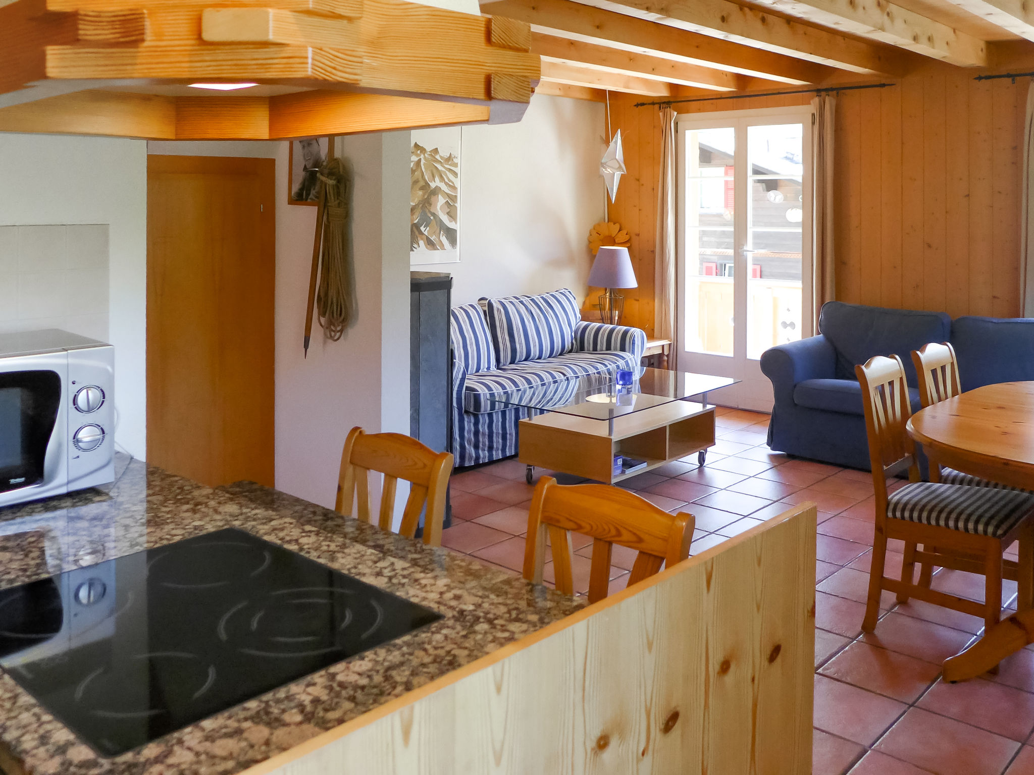 "Stähli", 3-Zimmer-Wohnung 102 m2, im erhöhten Erdgeschoss, Südwestlage. Gemütlich eingerichtet: Wohn-/Schlafzimmer mit 1 Diwanbett (140 cm, Länge 200 cm), Schwedenofen und Kabel-TV (Flachbildschirm). Ausgang zur Terrasse. Offene Küche (Backofen, Geschirrspüler, 4 Glaskeramikherd Platten, Toaster, Wasserkocher, elektrische Kaffeemaschine, Kapseln für die Kaffeemaschine (Nespresso) extra, Racletteofen, Fondue Set (Käse)). Dusche/WC. Obergeschoss: 1 Zimmer mit 2 Betten (90 cm, Länge 200 cm). 1 Zimmer mit 1 Doppelbett (2 x 90 cm, Länge 200 cm). Ausgang zum Balkon. Bad/WC. Fussbodenheizung. Holzböden, Natursteinböden. Terrasse 20 m2, Südlage und Westlage. Balkonmöbel, Gartengrill. Herrliche Sicht auf die Berge und Eigernordwand. Zur Verfügung: Bügeleisen, Haartrockner, Holz (extra). Internet (Wireless LAN, gratis). Garage (1 Auto) beim Haus, Höhe 210 cm, Breite 245 cm. Bitte beachten: Nichtraucher-Unterkunft. Eigener Eingang, Feuerlöscher.