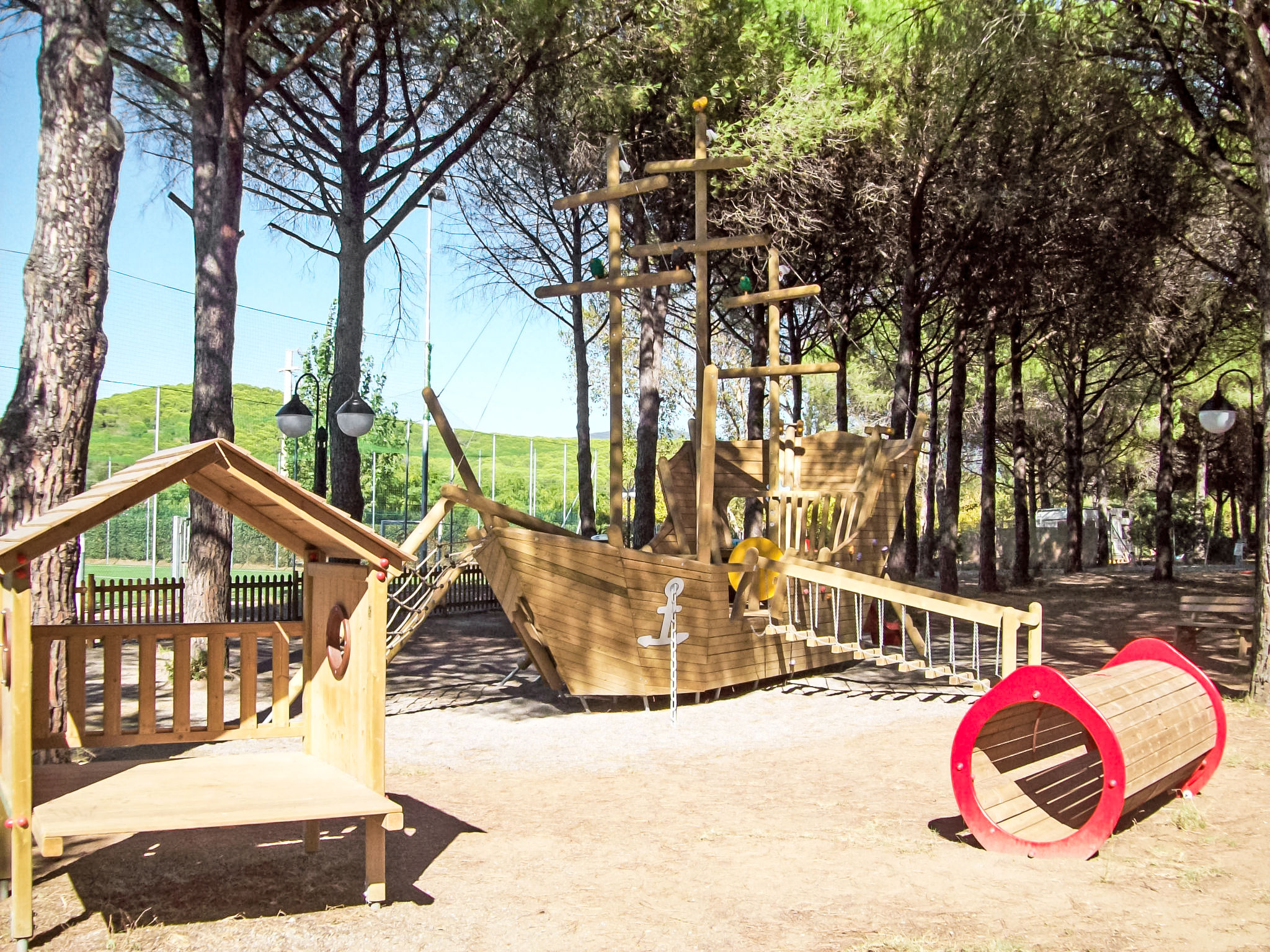 Dieses Resort ist in die Farben und Dürfte der Mittelmeerlandschaft eingebettet. Hübsche Bungalows, mit eigenem Aussenbereich und allen Annehmlichkeiten, sind ideal für Familien mit Kindern. Die Lage ist grossartig, um die Maremma-Küste und die Kunststädte, die sich der Umgebung befinden, zu besuchen (Siena, Pisa, Florenz, Rom). 2 Schwimmbäder (Badekappe obligatorisch) mit Strandeffekt, Liegestühlen und Sonnenschutzeinrichtungen, eins für Kinder und anderes mit Sprudelbad neben den Haupteinrichtungen. Grosse Ferienanlage. Im Weiler Rocchette, 7 km vom Zentrum von Castiglione della Pescaia, ruhige Lage, 150 m vom Meer, Strasse zu überqueren. Zur Mitbenutzung: 2 Schwimmbäder (150 cm tief, saisonale Verfügbarkeit: 28.Mar. - 01.Nov.). WC im Poolbereich, Kinderbecken, Aussendusche, Sprudelbad, Tennis, Beachvolleyball, Kinderspielplatz. In der Anlage: Empfang, Restaurant, Bar, Wireless LAN, Einkaufsmöglichkeit, Waschmaschine, Wäschetrockner (zur Mitbenutzung, extra), Fahrradverleih. Zur Verfügung: Kanu (extra). Frühstück Vollpension Halbpension möglich auf Anfrage (extra). Parkplatz auf dem Grundstück. E-Ladestation. Supermarkt 8 km, Bushaltestelle 50 m, Sandstrand "Le Rocchette" 150 m. Jacht-Hafen 10 km, Golfplatz (18 Loch) 20 km, Reitstall 10 km. Nahe gelegene Sehenswürdigkeiten: Punta Ala 12 km, Follonica 20 km, Massa Marittima 30 km. Bitte beachten: Animation in der Saison. Geeignet für Familien. Das Foto ist nur ein Hausbeispiel. Die Mietobjekte können sich in Lage, Größe und Beschaffenheit des Grundstücks unterscheiden. Gegenüber vom Feriendorf direkter Zugang über kleinen Fußweg zum Meer mit freiem Strand oder ausgestattetem Strand für Gäste (gegen Bezahlung). Pizzeria, Grillrestaurant, Poolbar und Strandbar, Beach Sport: SUP, Einer- und Zweierkanu und Tretboot. Ärztlicher Dienst in der Hochsaison eine Stunde pro Tag. Markt mit Metzgerei und Basar, Geldautomat, Tischfußball, Fitnessbereich im Freien, Paddle-Tennisplatz, großer Spielplatz und Animation (ca. 16.05.-03.10.).