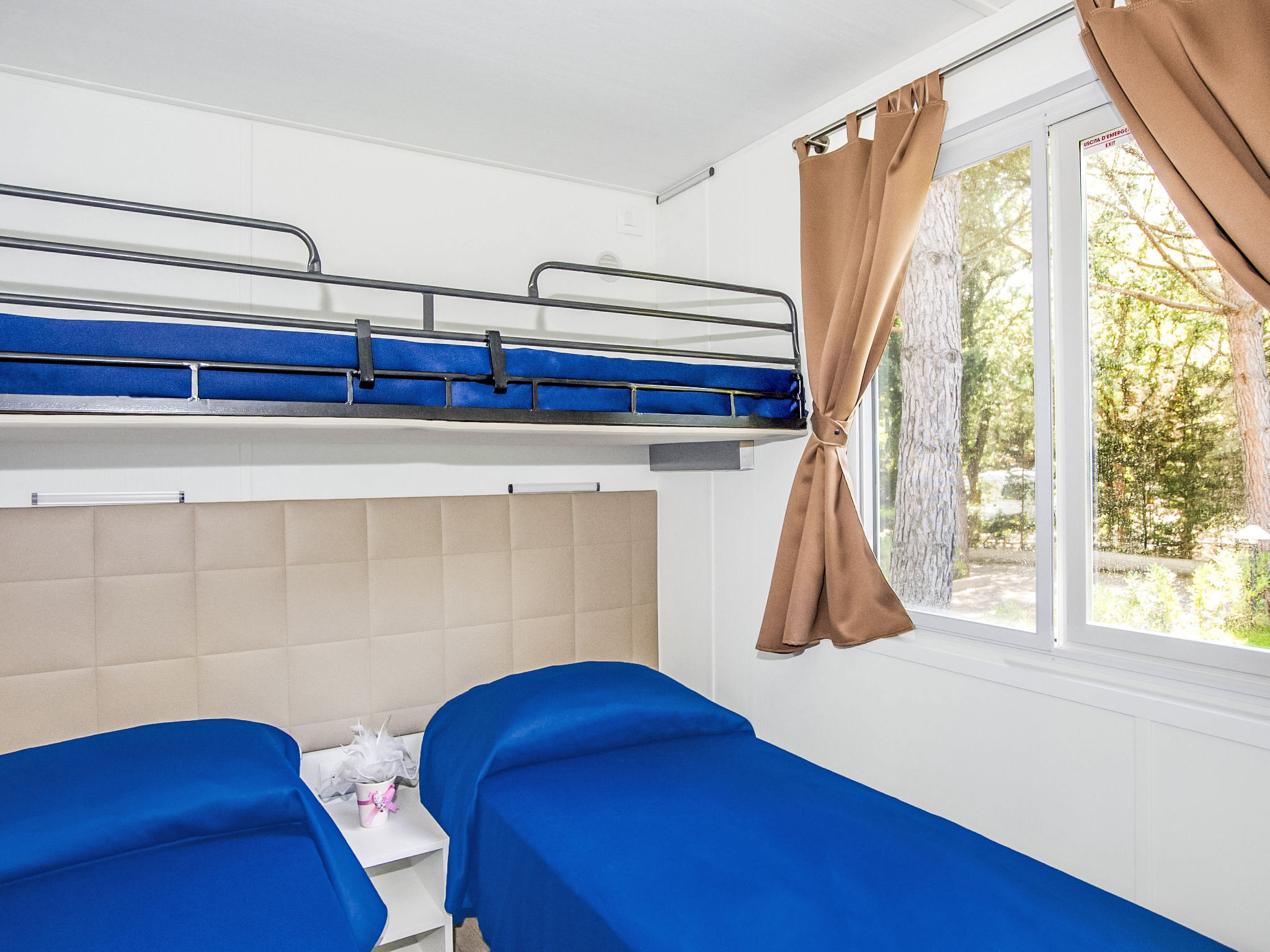 "Bungalow Trendy", 3-Zimmer-Mobilheim 30 m2. Objekt geeignet für 4 Erwachsene + 1 Kind. Zweckmässig und modern eingerichtet: Wohn-/Esszimmer mit TV. Ausgang zur Veranda. 1 Doppelzimmer mit sep. WC. 1 kleines Zimmer mit 3 Betten. Kochnische (4 Flammen, Tiefkühler). Dusche/WC. Klimaanlage. Terrasse 14 m2, Garten. Terrassenmöbel. Zur Verfügung: Safe, Fliegengitter, Haartrockner. Internet (WLAN, gratis). Parkplatz (1 Auto). Bitte beachten: eigener Eingang. IT053006B1ZWQW8ZUA