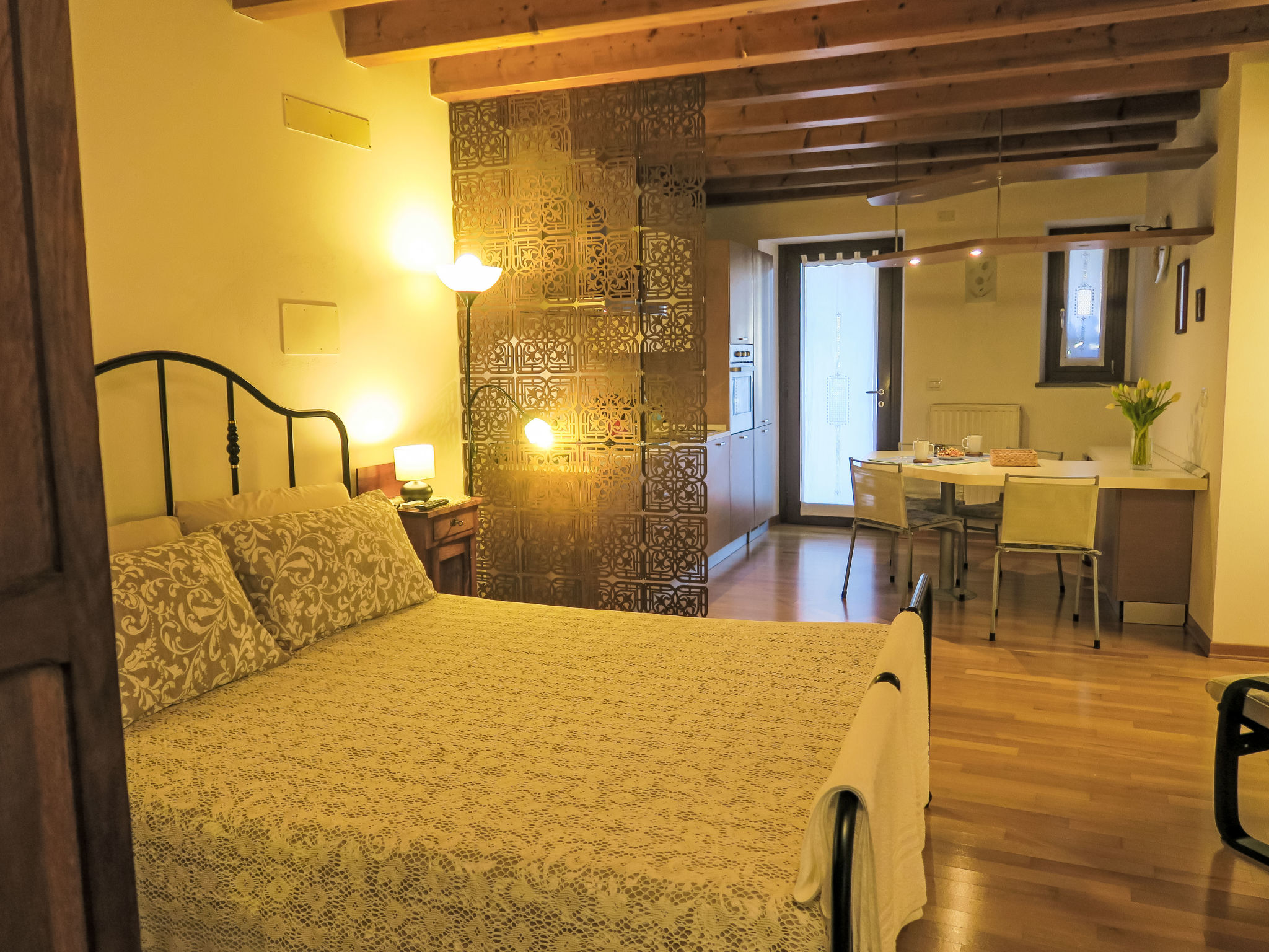 1-Zimmer-Wohnung 34 m2, im Erdgeschoss. Gemütlich eingerichtet: Studio mit 1 Doppelbett, Esstisch, Digital-TV und Ventilator. Ausgang zur Terrasse. (Backofen, 4 Flammen, Wasserkocher, Tiefkühler, elektrische Kaffeemaschine). Dusche/WC. G-Heizung. Heizung nur verfügbar von 15.10. bis 15.04. Kleine Terrasse überdacht. Terrassenmöbel. Zur Verfügung: Fliegengitter, Kinderhochstuhl, Babybett bis 2 Jahre, Haartrockner. Parkplatz (eingezäunt, 1 Auto). Es werden keine zusätzlichen Gebühren vor Ort fällig, ausgenommen der örtlichen Kurtaxe. Bettwäsche, Handtücher, Endreinigung und alle Energiekosten sind inkludiert. IT030026C299GVLZ5C