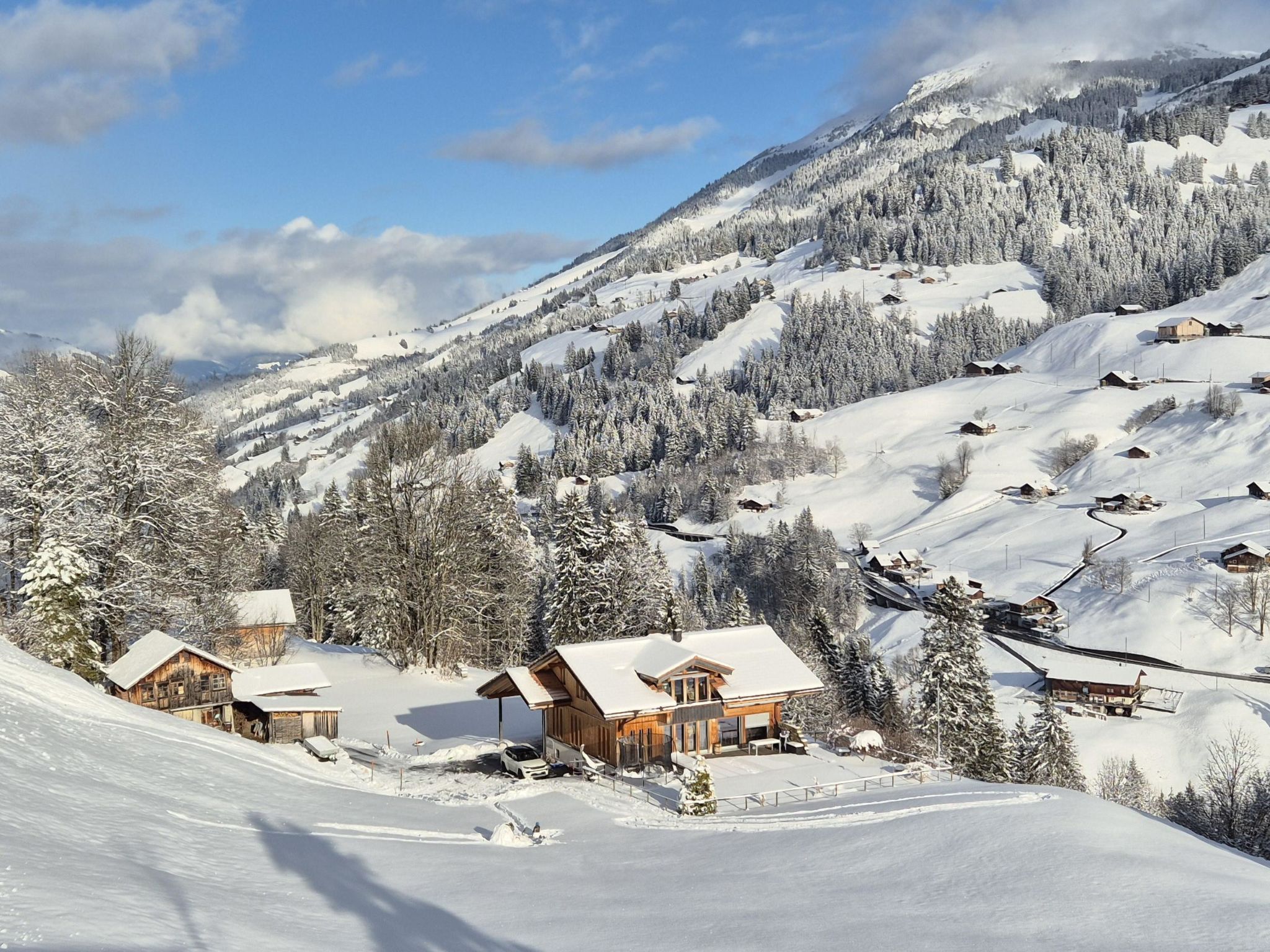 45 m2. Weitere Angaben des Anbieters: Sehr schönes 2-Zimmer Studio an ruhiger Lage im 1. Stock eines neuen Zweifamilienhauses. Geschmackvoll und qualitativ hochwertig eingerichtet. Geeignet für 2-4 Personen. Wenige Autominuten zum Dorfzentrum, 600m zur Bushaltestelle des Ortsbusses. Balkon mit herrlicher Aussicht. Parkplatz vorhanden. Nichtraucherwohnung. Haustiere nicht erlaubt. Zugunsten des Ferien- und Familienerlebnisses wird bewusst auf TV verzichtet. WLAN ist jedoch kostenlos vorhanden.