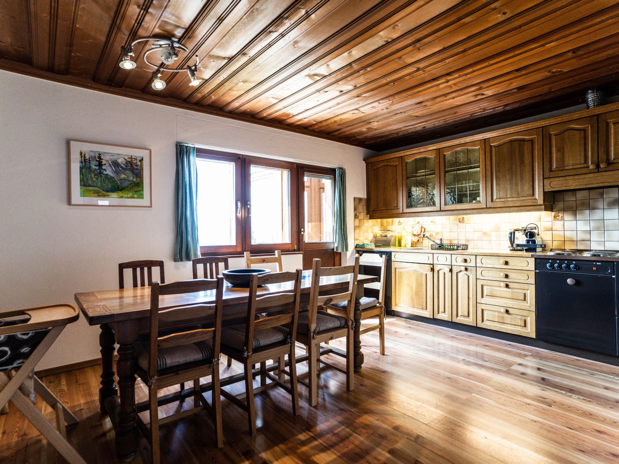5 Zimmerwohnung im 4. OG. 6 Personen Standardbelegung - bis 2 Zusatzbetten möglich Die Wohnung verfügt über 2 Schlafzimmer mit Doppelbetten , ein Zimmer mit 2 Einzelbetten. 1 Badezimmer/WC, 2 Douchen/WC Süd- und Nordbalkon Balkon mit Tisch und Stühlen. Die Küche enthält Geschirrspüler, Backofen, Steamer und eine Nespresso-Maschine. Gratis W-Lan und Satelliten TV. Waschküche im Keller. Der Ski Raum ist mit Schuhtrocknern ausgestattet. Die Nespresso-Kapseln und Wäschekarten können in unserem Geschäft im Parterre bezogen werden. Wir offerieren Ihnen in unseren Sportgeschäften Intersport bürcherAlpin 10 % auf die Verkaufsartikel und 20% auf Mietartikel.