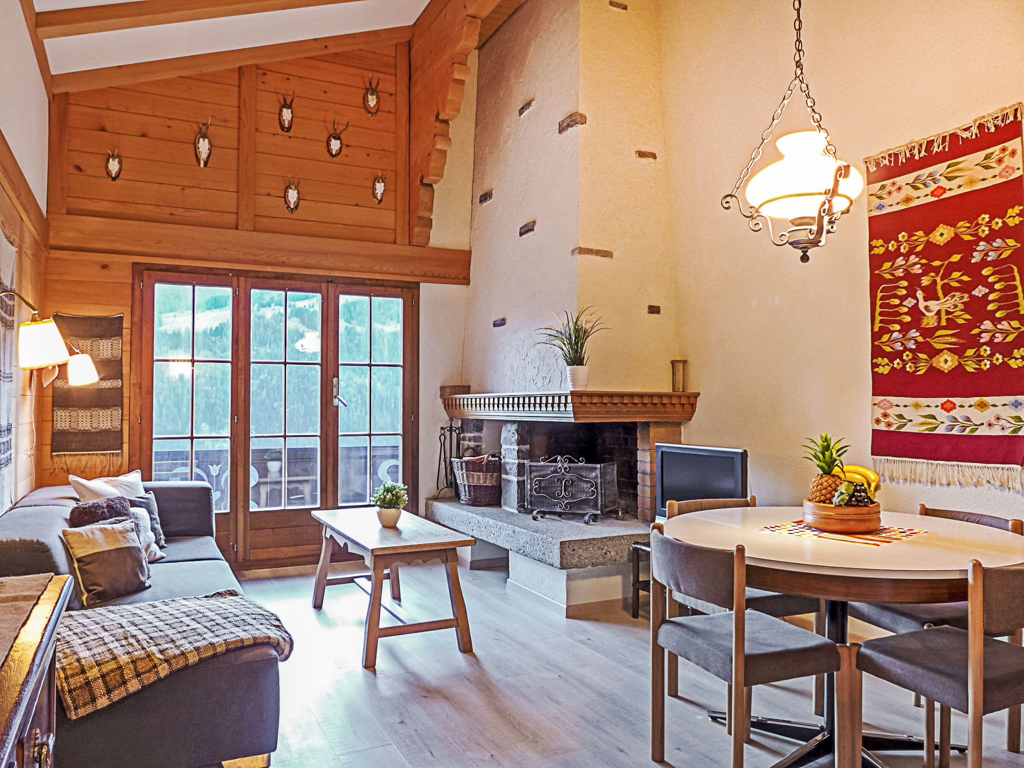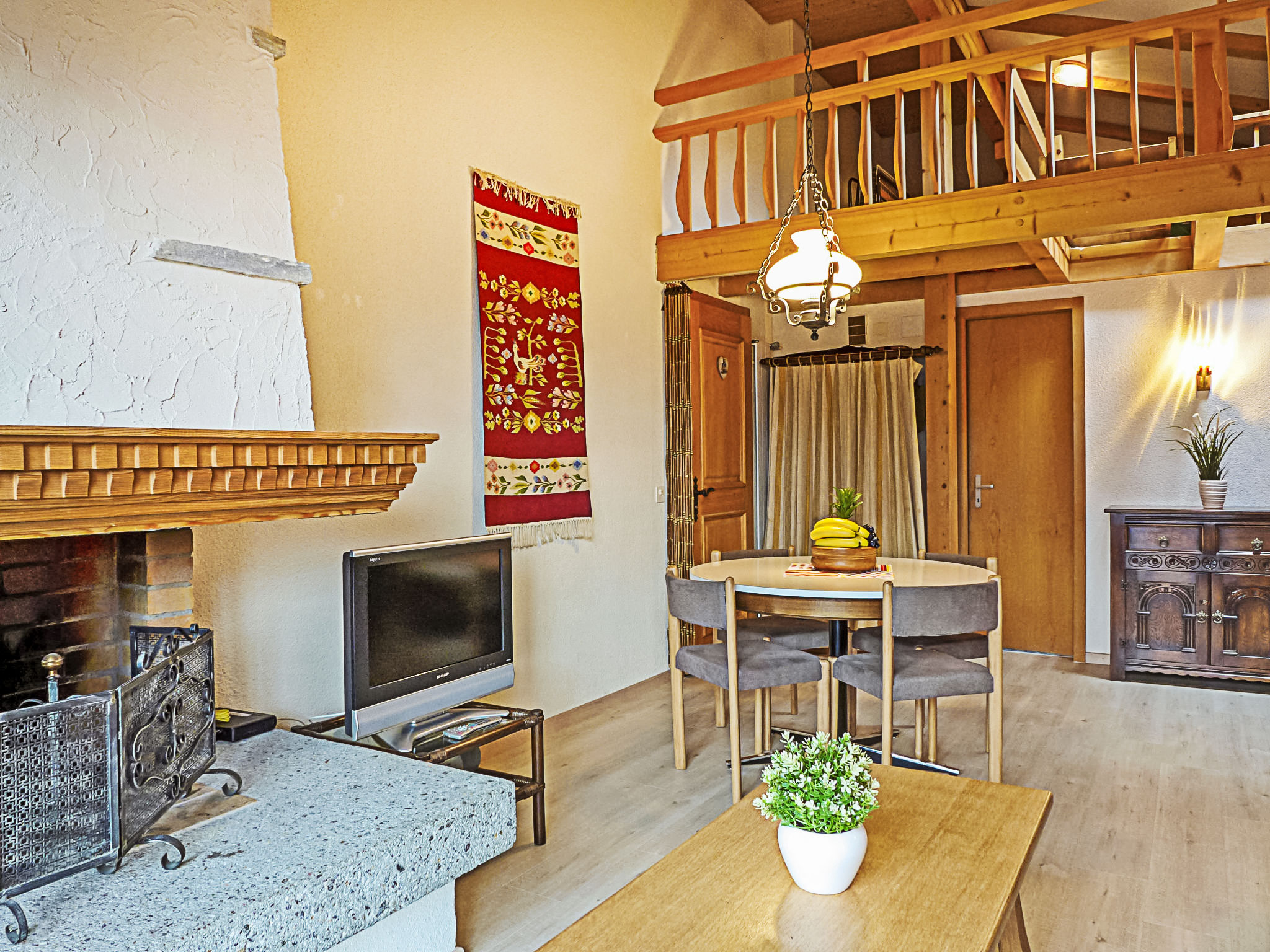 "Apt. P", 3-Zimmer-Attikawohnung 50 m2. Hell, teilweise abgeschrägt, komfortabel und gemütlich eingerichtet: Wohn-/Esszimmer mit offenem Kamin und TV. 1 Zimmer mit 1 Doppelbett (2 x 90 cm, Länge 200 cm). 1 Zimmer mit 2 Betten (90 cm, Länge 200 cm). Kleine Küche (4 Kochplatten, Backofen, Toaster, Wasserkocher, elektrische Kaffeemaschine, Kapseln für die Kaffeemaschine (Nespresso) extra, Fondue Set (Käse)). Dusche/WC. Balkon. Herrliche Panoramasicht auf die Berge und das Tal. Zur Verfügung: Haartrockner, Holz (extra). Internet (Wireless LAN, gratis). Bitte beachten: Nichtraucher-Unterkunft.