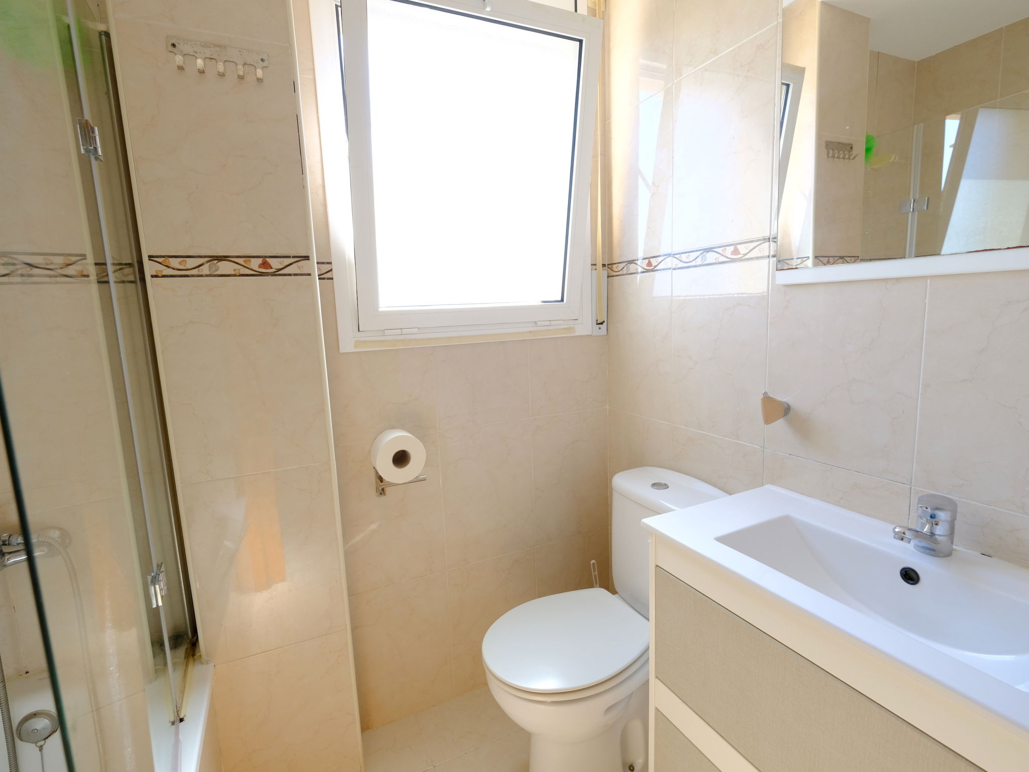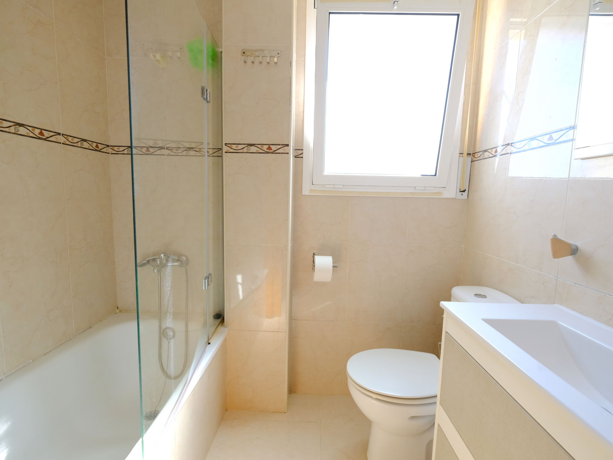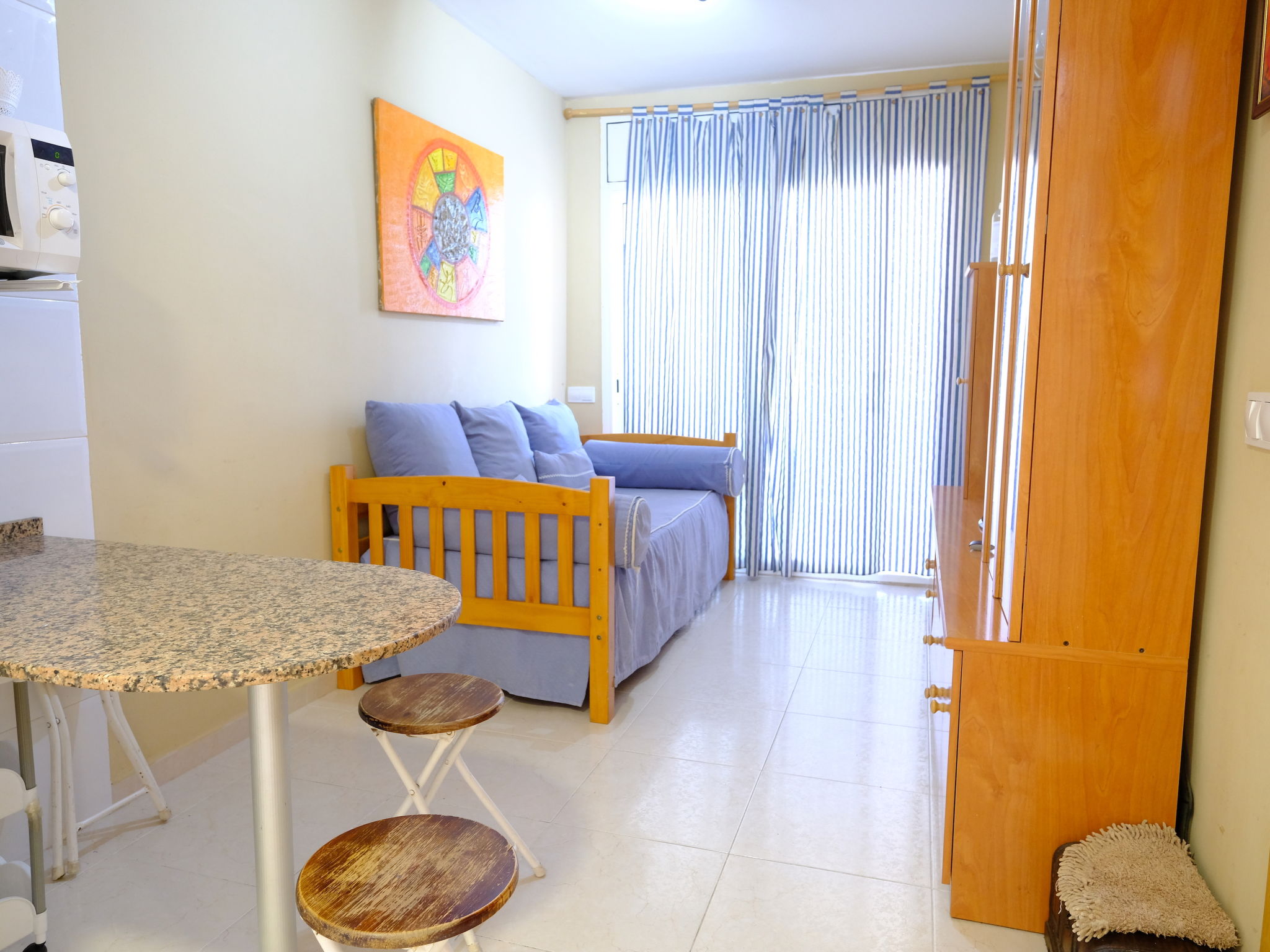 "Duc Medinacelli", 3-Zimmer-Wohnung 70 m2. Zweckmässig und komfortabel eingerichtet: Wohn-/Esszimmer mit Esstisch, Digital-TV und Klimaanlage. Ausgang zum Balkon. 1 Zimmer mit 1 franz. Bett (135 cm), Klimaanlage. 1 Zimmer mit 1 Bett (90 cm), 1 x 2 Etagenbetten (90 cm). Offene Küche (4 Glaskeramikplatten, Toaster, Wasserkocher, Mikrowelle, elektrische Kaffeemaschine) mit Bar. Bad/WC. (50 Liter). Keine Heizmöglichkeit. Balkon. Balkonmöbel. Zur Verfügung: Waschmaschine, Bügeleisen, Haartrockner. Parkplatz Nr. 26. Maximal 1 kleines Haustier/Hund erlaubt. HUTT048437