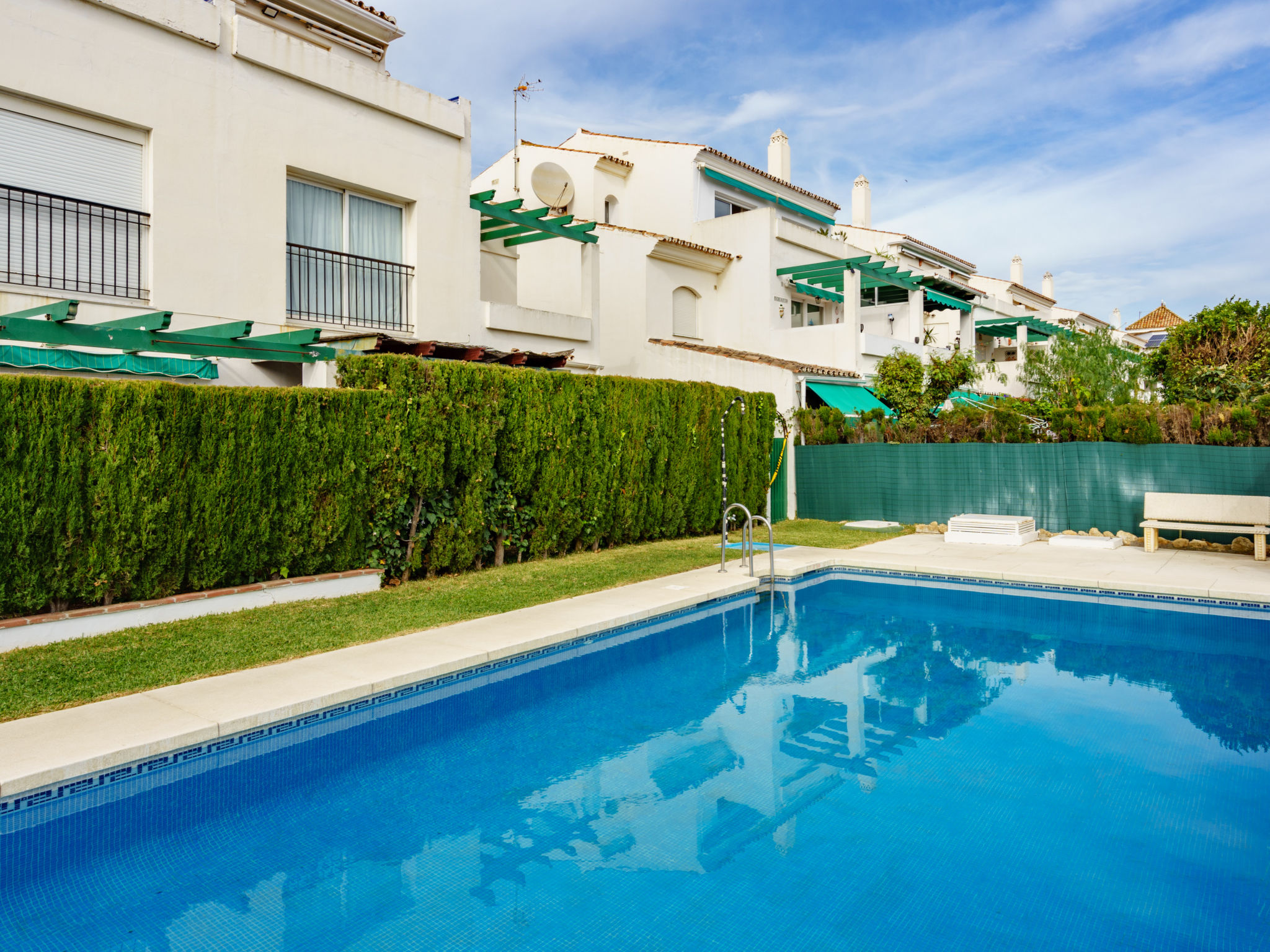 Puerto de La Duquesa: Appartementhaus "Ático Los Pelícanos", renoviert im Jahre 2024. 400 m vom Meer, 400 m vom Strand, Strasse zu überqueren. Zur Mitbenutzung: Schwimmbad (130 - 210 cm tief, saisonale Verfügbarkeit: 01.Jan. - 31.Dez.). Parkplatz Nr. 305. Supermarkt 900 m, Restaurant, Café 400 m, Bushaltestelle "Cruce Casares" 3 km, Bahnstation "Estación de Tren Fuengirola" 73.7 km. Sporthafen 600 m, Jacht-Hafen 10.8 km, Golfplatz (18 Loch) 1.4 km. Nahe gelegene Sehenswürdigkeiten: Puerto Deportivo Sotogrande 10.8 km, Gibraltar 36.4 km, Centro Histórico de Estepona 18.4 km, Puerto Deportivo Puerto Banús 36.5 km, Casco Histórico Marbella 43.7 km, Málaga 101 km. Wandergebiete: Senda Litoral Estepona 17.4 km, Caminito del Rey - Acceso Sur 111 m. Bitte beachten: Fahrzeug empfohlen, kein Fahrstuhl vorhanden. Der Besitzer akzeptiert keine Jugendgruppen. Be- und Entladen am Ferienhaus möglich.