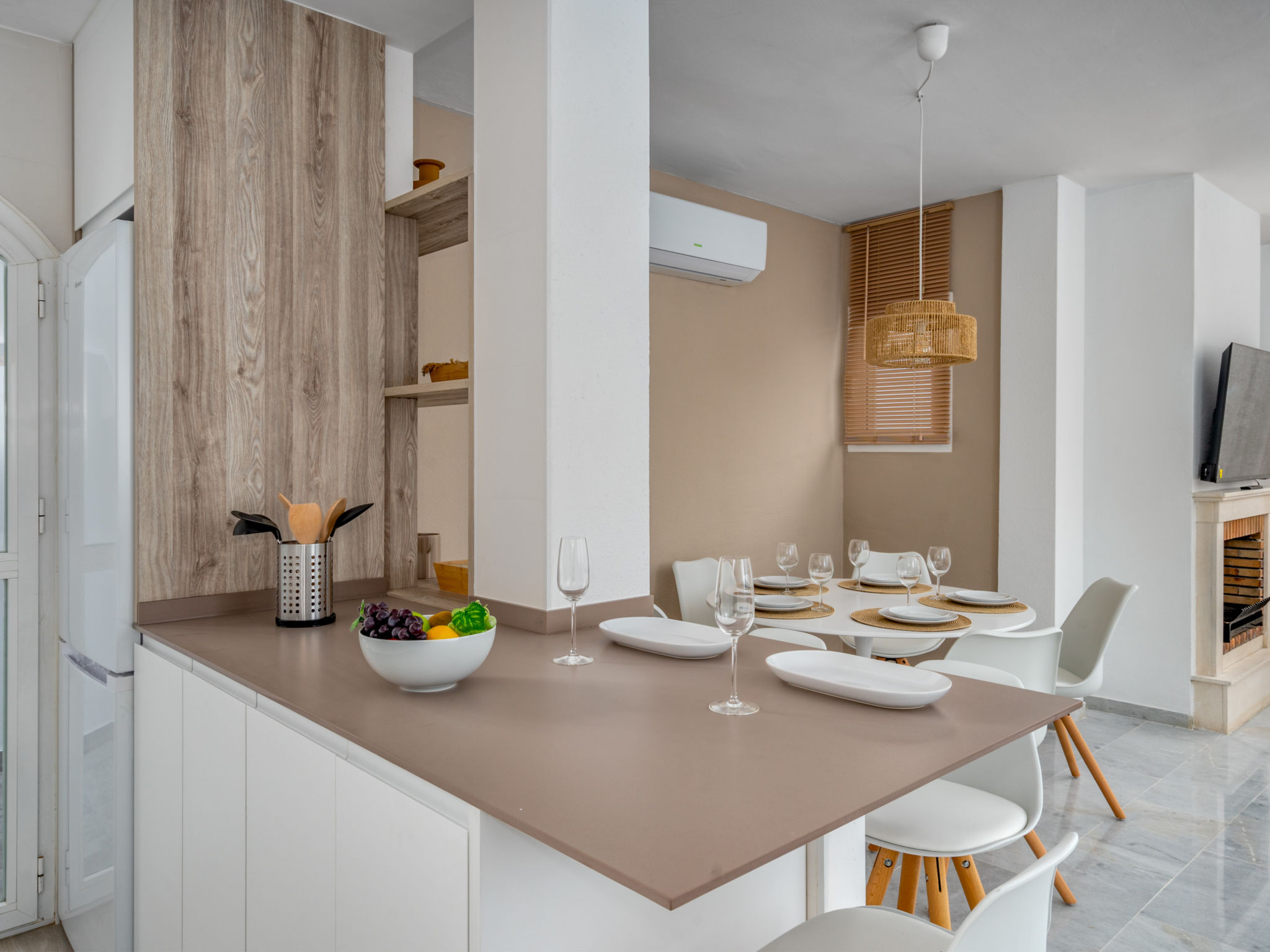 "Ático Los Pelicanos", 3-Zimmer-Attikawohnung 74 m2, Südlage. Objekt geeignet für 4 Erwachsene. Hell, vollständig renoviert im Jahre 2023, sehr komfortabel und modern eingerichtet: Wohn-/Esszimmer mit offenem Kamin (nur Deko), Esstisch, TV, Internationale TV-Sender, Flachbildschirm, Klimaanlage und Warmluftheizung. Ausgang zur Terrasse. 1 Zimmer mit 2 Betten (90 cm, Länge 190 cm), Klimaanlage, Ventilator und Warmluftheizung. 1 Zimmer mit 1 franz. Bett (180 cm, Länge 200 cm), Bad/Dusche/WC, Klimaanlage, Ventilator und Warmluftheizung. Ausgang zur Terrasse. Offene Küche (Backofen, Geschirrspüler, 4 Glaskeramikplatten, Toaster, Wasserkocher, Mikrowelle, elektrische Kaffeemaschine) mit Bar. Bad/Dusche/WC. Terrasse. Terrassenmöbel. Schöne Fernsicht auf das Meer. Zur Verfügung: Waschmaschine, Bügeleisen, Kinderhochstuhl, Babybett bis 2 Jahre, Haartrockner. Internet (WLAN, gratis). Parkplatz Nr. 305 (1 Auto) beim Haus. Bitte beachten: geeignet für Familien. Nichtraucher-Unterkunft. Kein Fahrstuhl. VUT/MA/71063 // Reg. Nr.: ESFCTU0000290400000451630000000000000000VUT/MA/710638