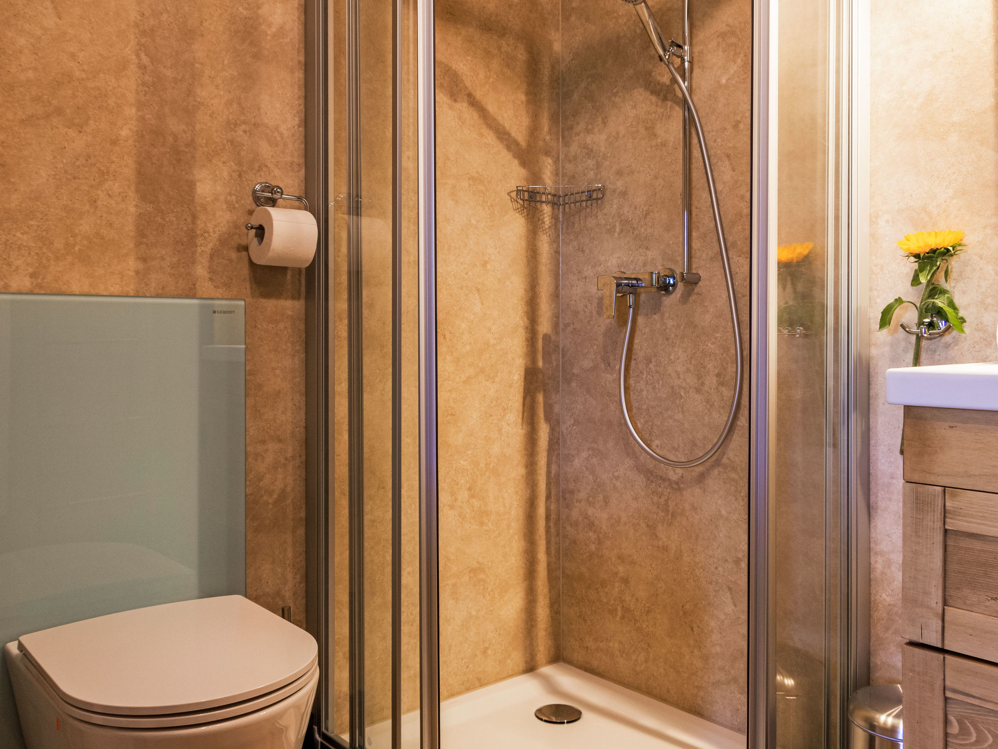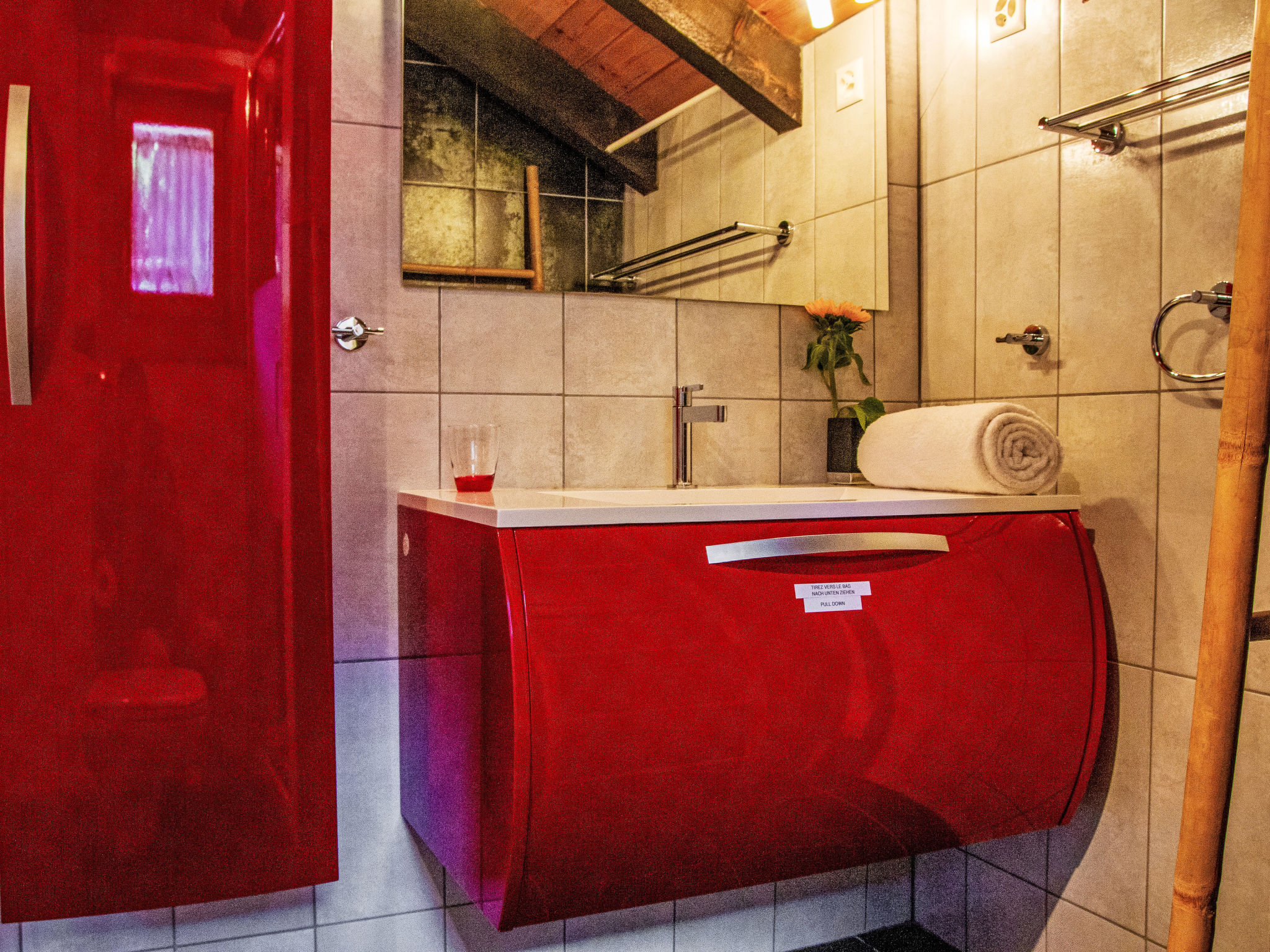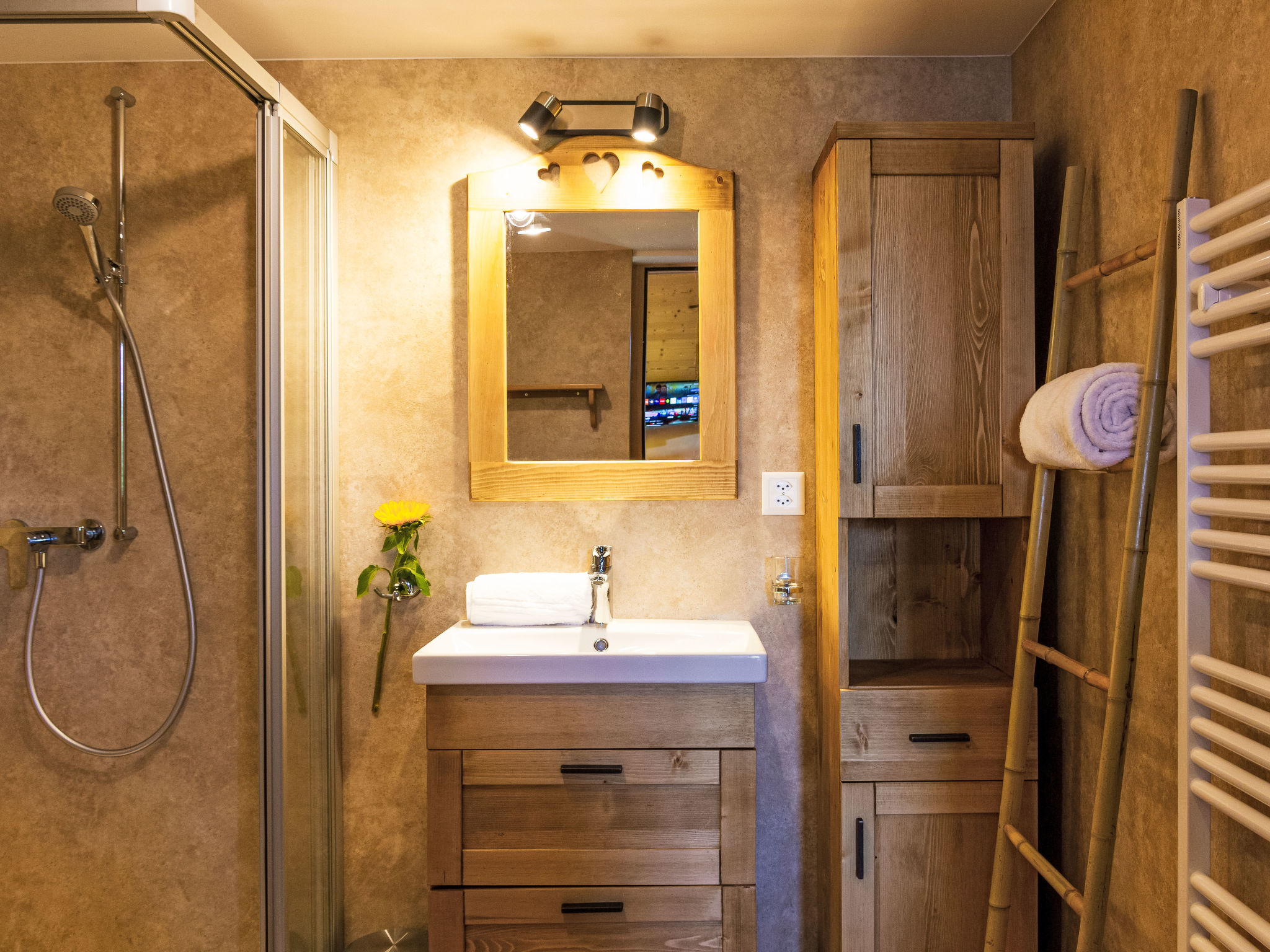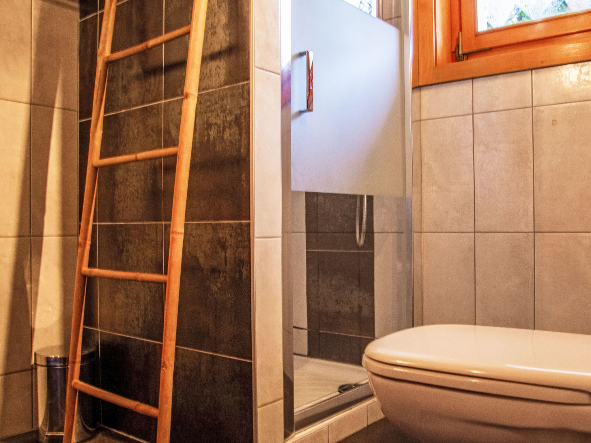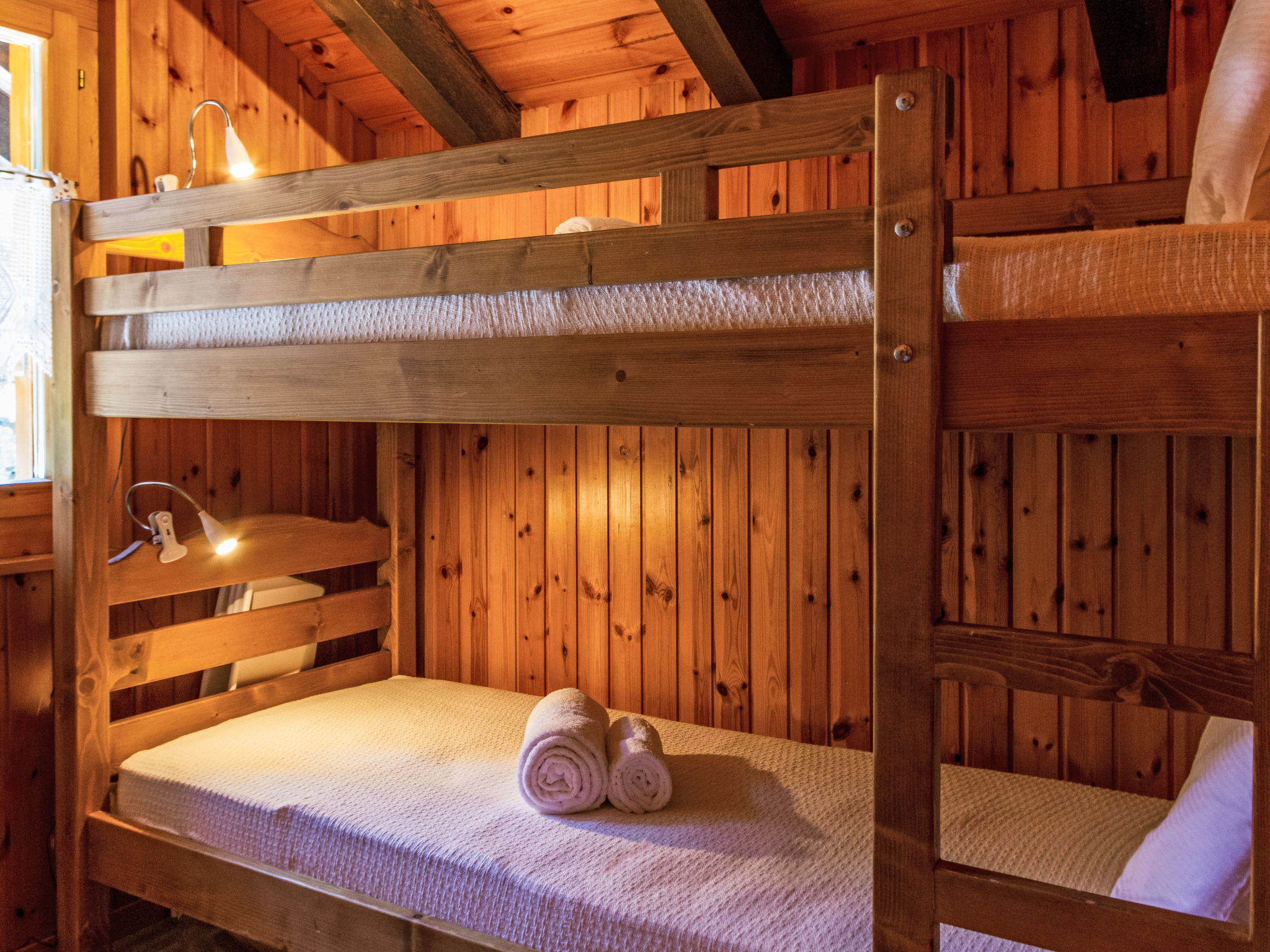 "Mirabeau", 4-Zimmer-Chalet 83 m2 auf 2 Stockwerken, Ostlage. Teilweise abgeschrägt, komfortabel und schön eingerichtet: Eingang. Wohn-/Esszimmer mit offenem Kamin, Kabel-TV, Stereoanlage und DVD. Ausgang zum Garten, zur Terrasse. Offene Küche (Backofen, Geschirrspüler, 4 Glaskeramikherd Platten, elektrische Kaffeemaschine, Kapseln für die Kaffeemaschine (Nespresso) extra, Racletteofen, Fondue Set (Käse)). Ausgang zur Veranda. Sep. WC. Obergeschoss: 1 Zimmer mit 1 franz. Bett (160 cm, Länge 200 cm). Ausgang zum Balkon, Richtung Osten. 1 kleines Kinderzimmer mit 1 x 2 Etagenbetten (80 cm, Länge 200 cm). 1 Zimmer mit 1 Doppelbett (2 x 90 cm, Länge 200 cm). Ausgang zum Balkon, Richtung Osten. Dusche/WC. Balkon, Ostlage, Terrasse, Ostlage. Terrassenmöbel, Gartengrill (mobil), Liegestühle (4), Wintergarten. Sehr schöne Sicht auf die Berge und das Tal. Zur Verfügung: Waschmaschine, Wäschetrockner, Kinderhochstuhl, Babybett, Haartrockner. Internet (Wireless LAN, gratis). Parkplatz. Bitte beachten: Nichtraucher-Unterkunft. 1 Haustier/Hund erlaubt. Unbeheizte Veranda. Warmwasser begrenzt.