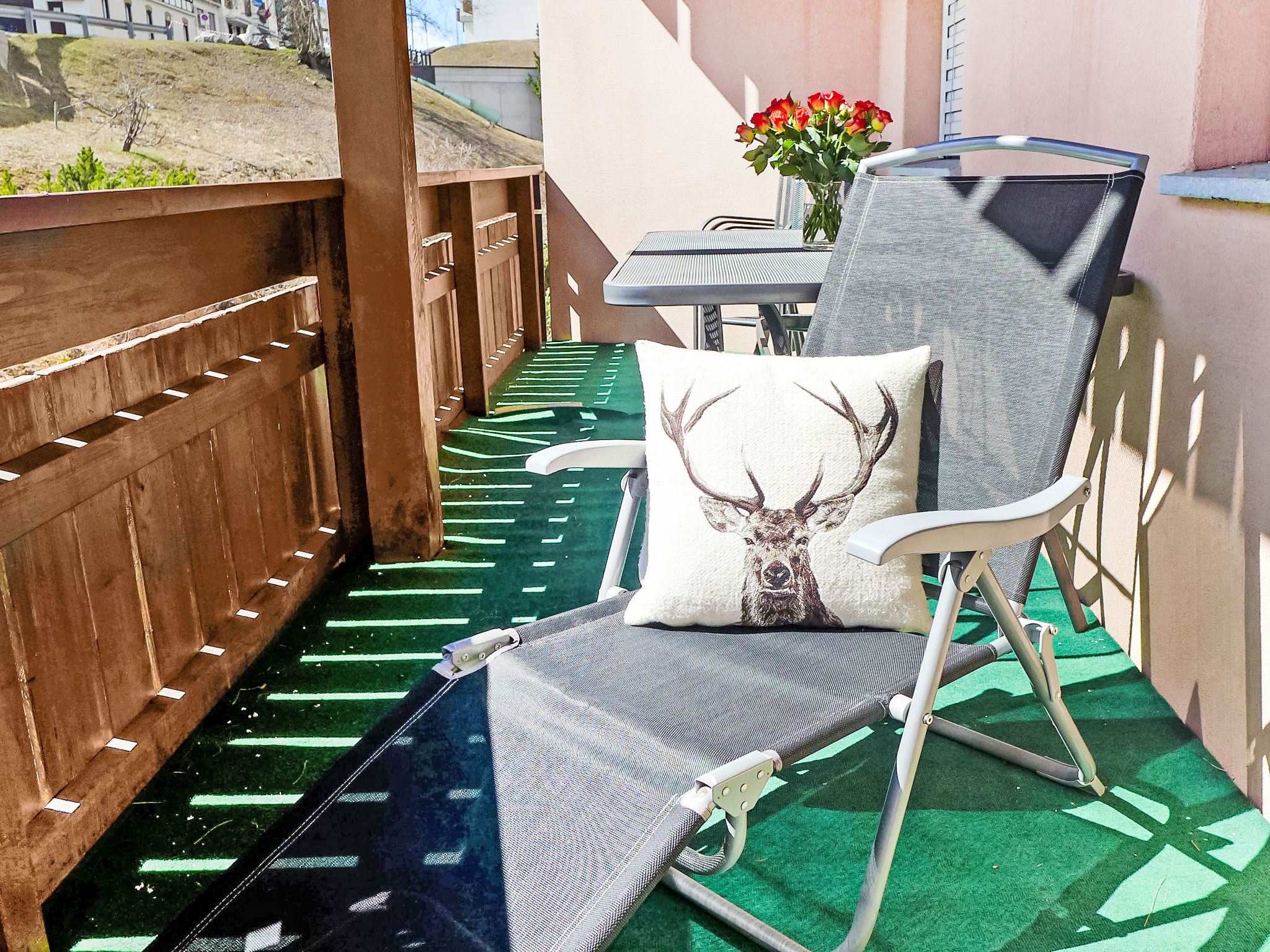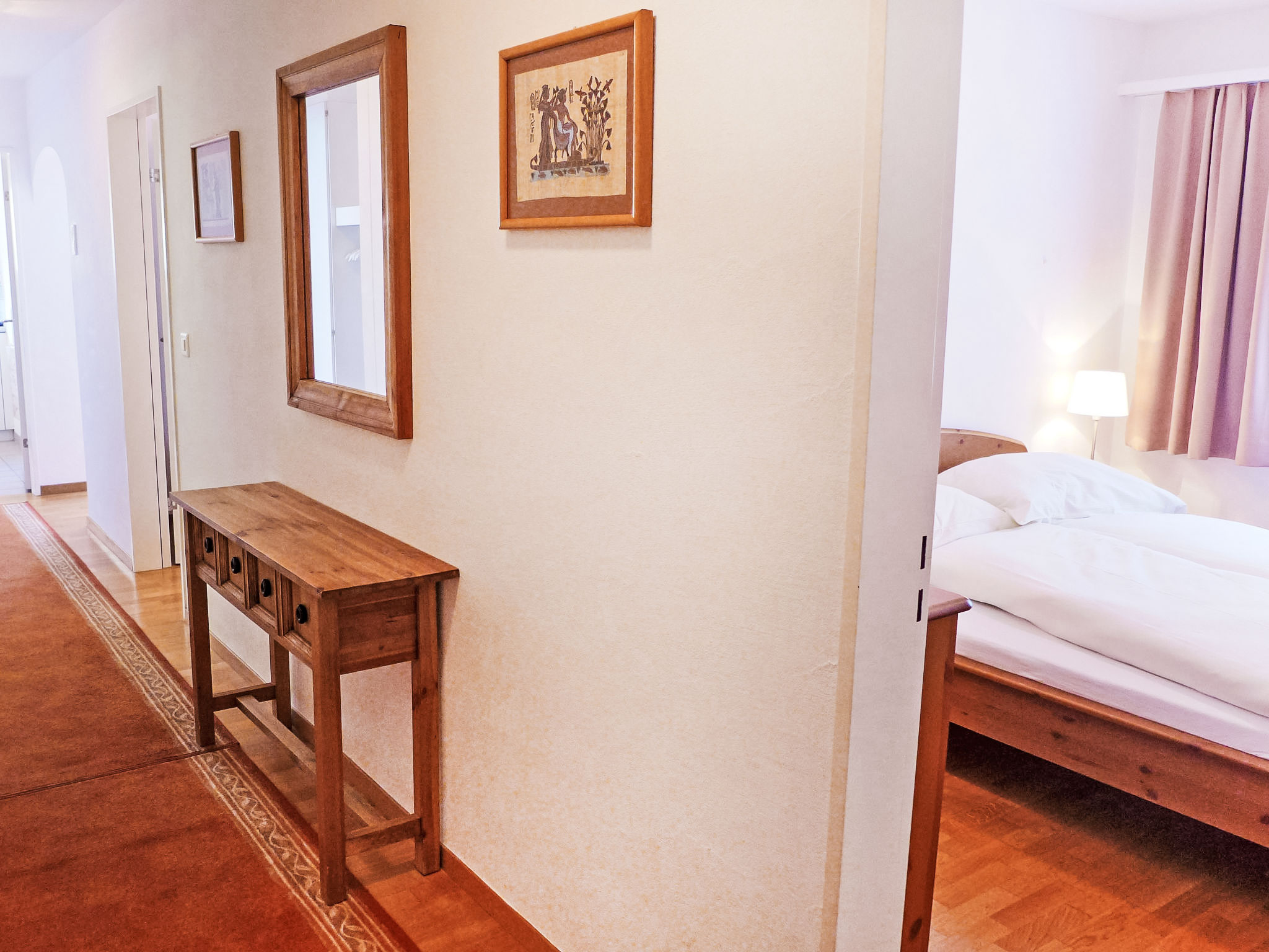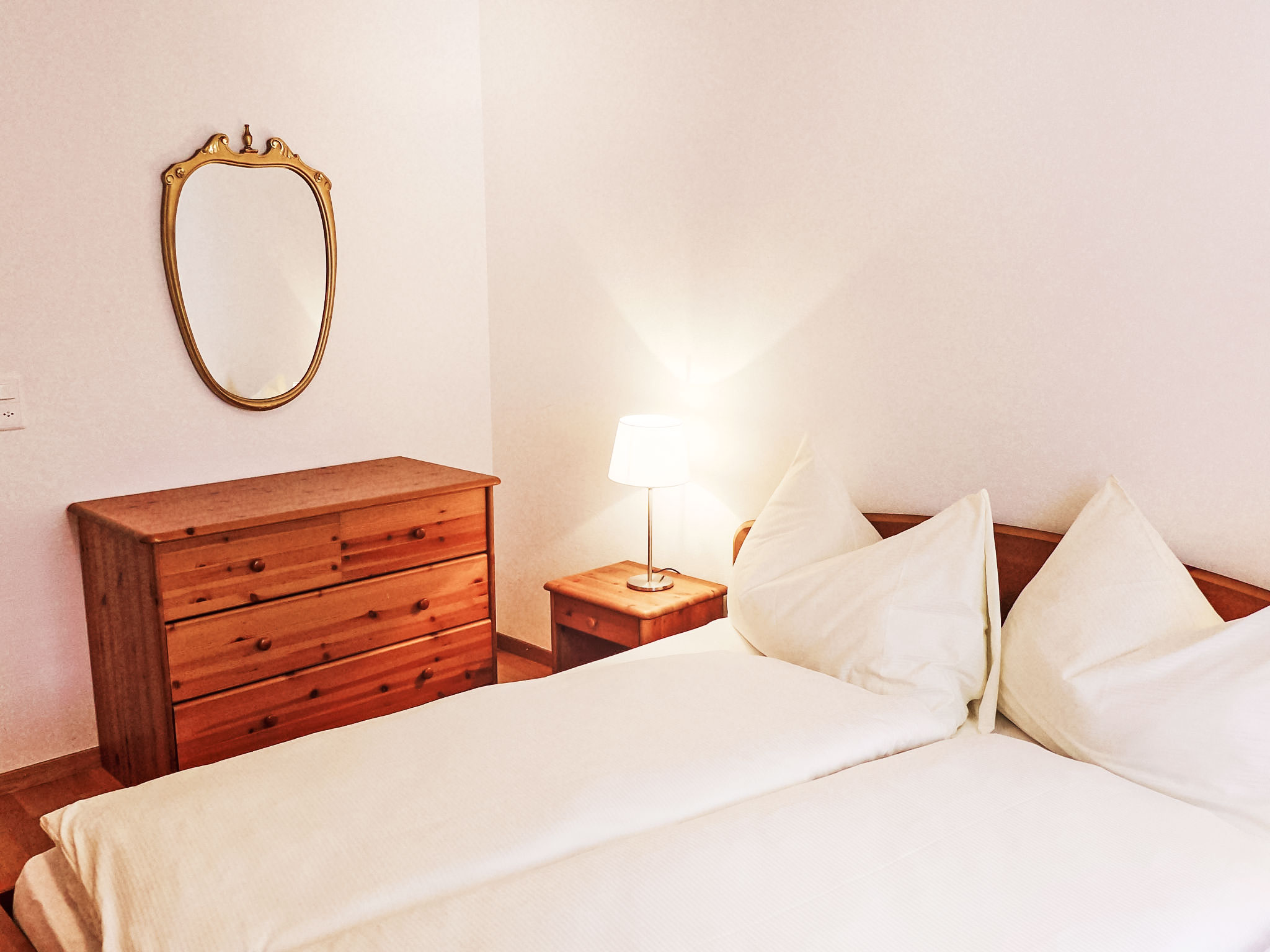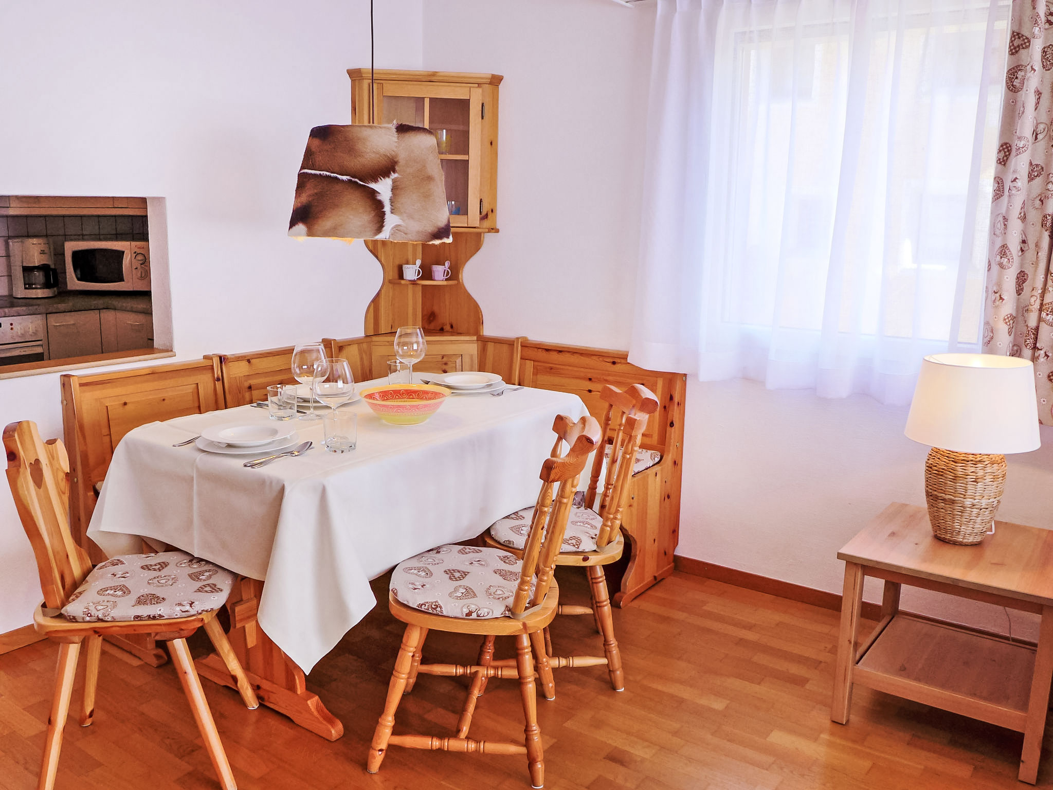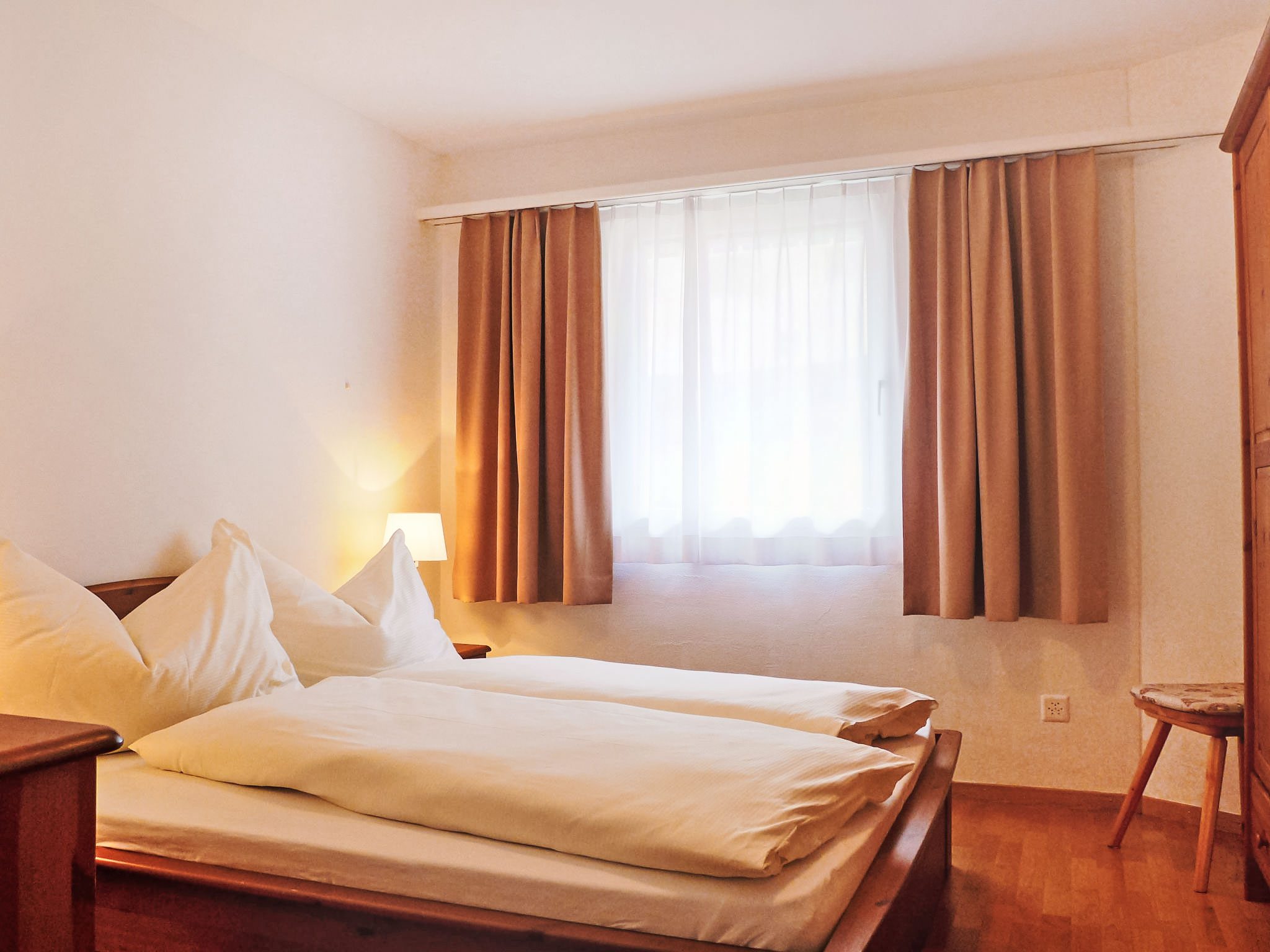 "Chesa Sur Val 22", 3-Zimmer-Wohnung 70 m2 im 2. Stock. Komfortabel und gemütlich eingerichtet: Wohn-/Esszimmer mit Esstisch und TV (Flachbildschirm). Ausgang zum Balkon. 1 Zimmer mit 2 Betten (90 cm, Länge 200 cm). 1 Zimmer mit 1 Doppelbett (160 cm, Länge 200 cm). Küche (Backofen, Geschirrspüler, 4 Glaskeramikherd Platten, Toaster, Wasserkocher, Mikrowelle, elektrische Kaffeemaschine, Kapseln für die Kaffeemaschine (Nespresso) extra, Fondue Set (Käse)) mit Durchreiche. Bad/WC, sep. WC. Parkettböden. Balkon, Südostlage. Balkonmöbel. Zur Verfügung: Haartrockner. Internet (Wireless LAN, gratis). Garage Nr. 23, Höhe 210 cm, Breite 240 cm. Bitte beachten: Nichtraucher-Unterkunft.