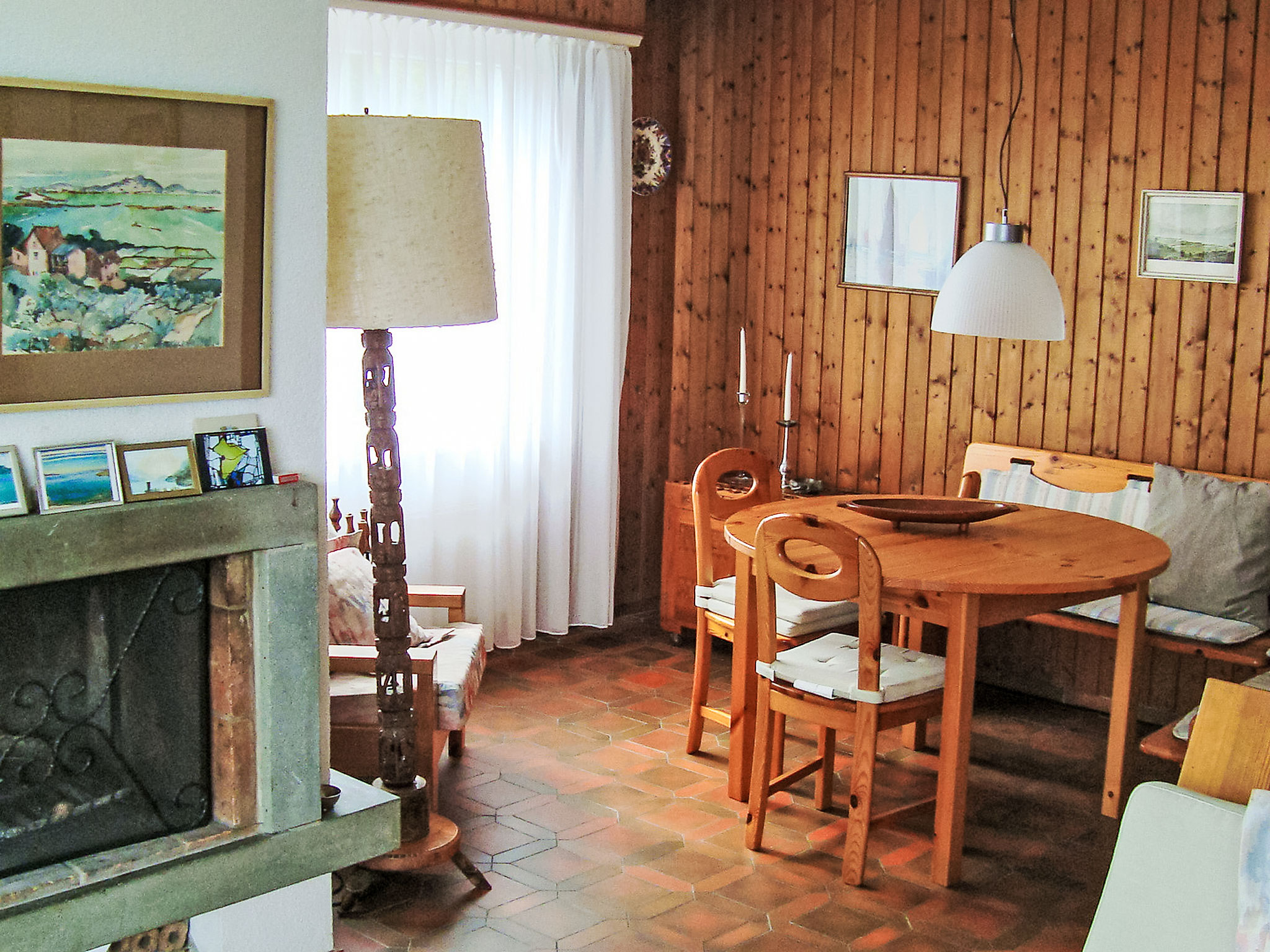 "Noisette", 4-Zimmer-Haus 100 m2 auf 2 Stockwerken. Objekt geeignet für 4 Erwachsene + 2 Kinder. Komfortabel und gemütlich eingerichtet: Wohn-/Esszimmer mit offenem Kamin, Essecke und Sat-TV (Flachbildschirm), Stereoanlage. Ausgang zur Terrasse. 1 Doppelzimmer mit 1 Doppelbett. 1 Kinderzimmer mit 1 Ausziehbett (2 Pers.). Kleine Küche (Backofen, Geschirrspüler, 4 Glaskeramikherd Platten, Mikrowelle, elektrische Kaffeemaschine). Bad/WC. Unteres Geschoss: 1 Zimmer mit 2 Betten. Sep. WC. Terrasse 7 m2, Gartensitzplatz. Terrassenmöbel. Herrliche Sicht auf den See und die Landschaft. Zur Verfügung: Waschmaschine, Wäschetrockner, Kinderhochstuhl, Babybett (extra). Internet (Wireless LAN, gratis). Bitte beachten: Nichtraucher-Unterkunft. Nur für Urlaubsgäste.