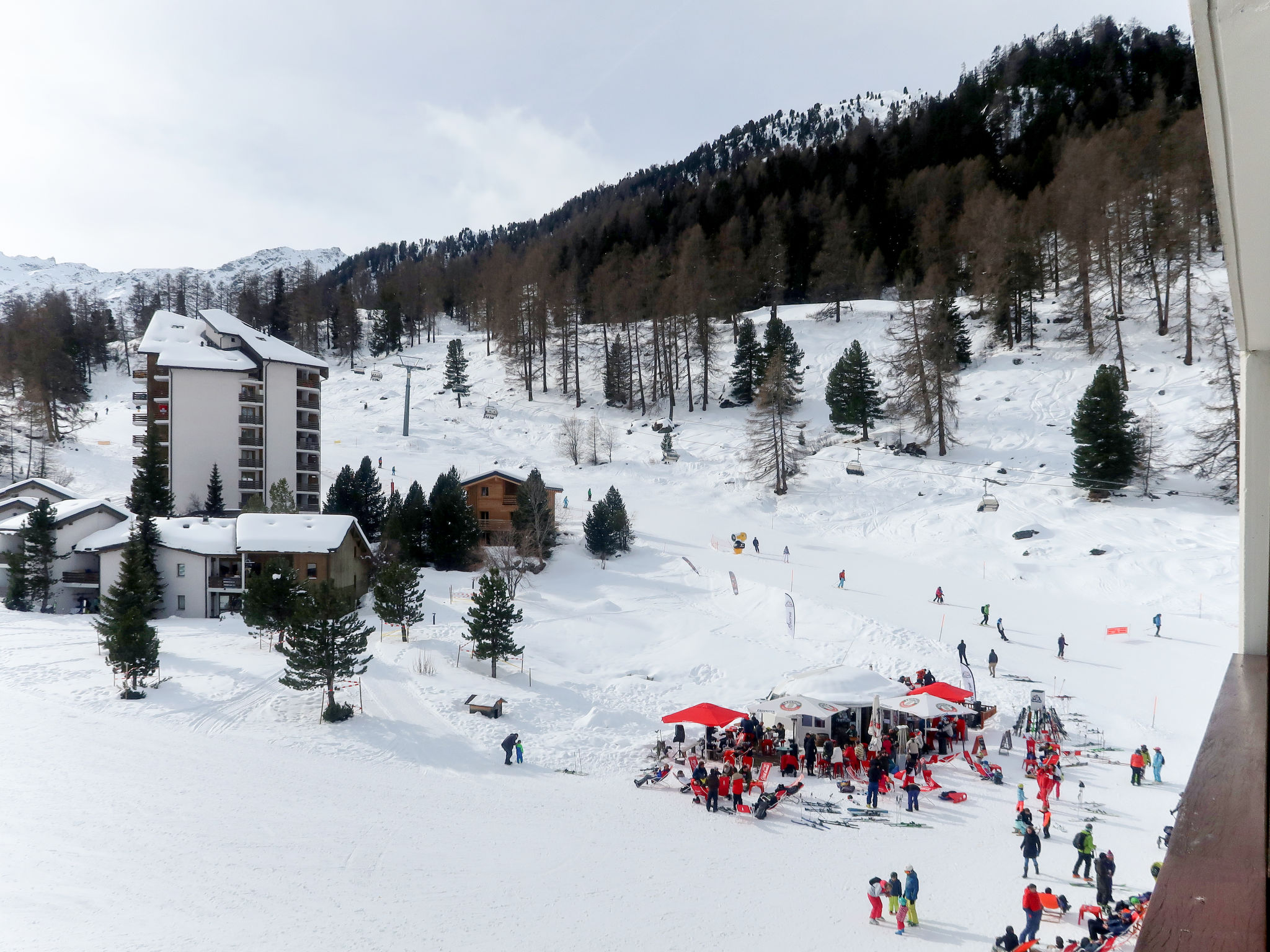 Die Residenz MONTFORT steht in sonniger und strategisch erstklassiger Lage von Siviez inmitten des Skigebietes, die Piste vom Tortin hinunter führt am Haus vorbei; man kann die Ski vor der Haustür anschnallen und fährt die ca. 50 m zur Vierer-Sesselbahn, die die schnelle Verbindung auf den Mont-Fort herstellt. Stets geräumte Zufahrt bis zum großen öffentlichen, kostenfreien Parkplatz ca. 100 m unterhalb der Residenz; die unmittelbare Umgebung bleibt autofrei, erfreulich für Familien mit Kindern (neben der Residenz ein Kinderlift, Rodelhang und große Freiflächen zum Spielen). Das Gepäck kann man sich mit Hilfe eines Schlittendienstes zur Residenz befördern lassen (CHF 10 pro Fahrt, Stand Winter 19). Die ansprechende Ferienanlage besteht aus dem Hauptgebäude und zweistöckigen Reihenchalets, die im Halbkreis neben dem Hauptgebäude angeordnet sind. Supermarkt, Post, Sportgeschäft, Skischule, Snack-Bar, Squash-Courts jeweils in der ca. 100 m entfernten Residenz Rosablanche.