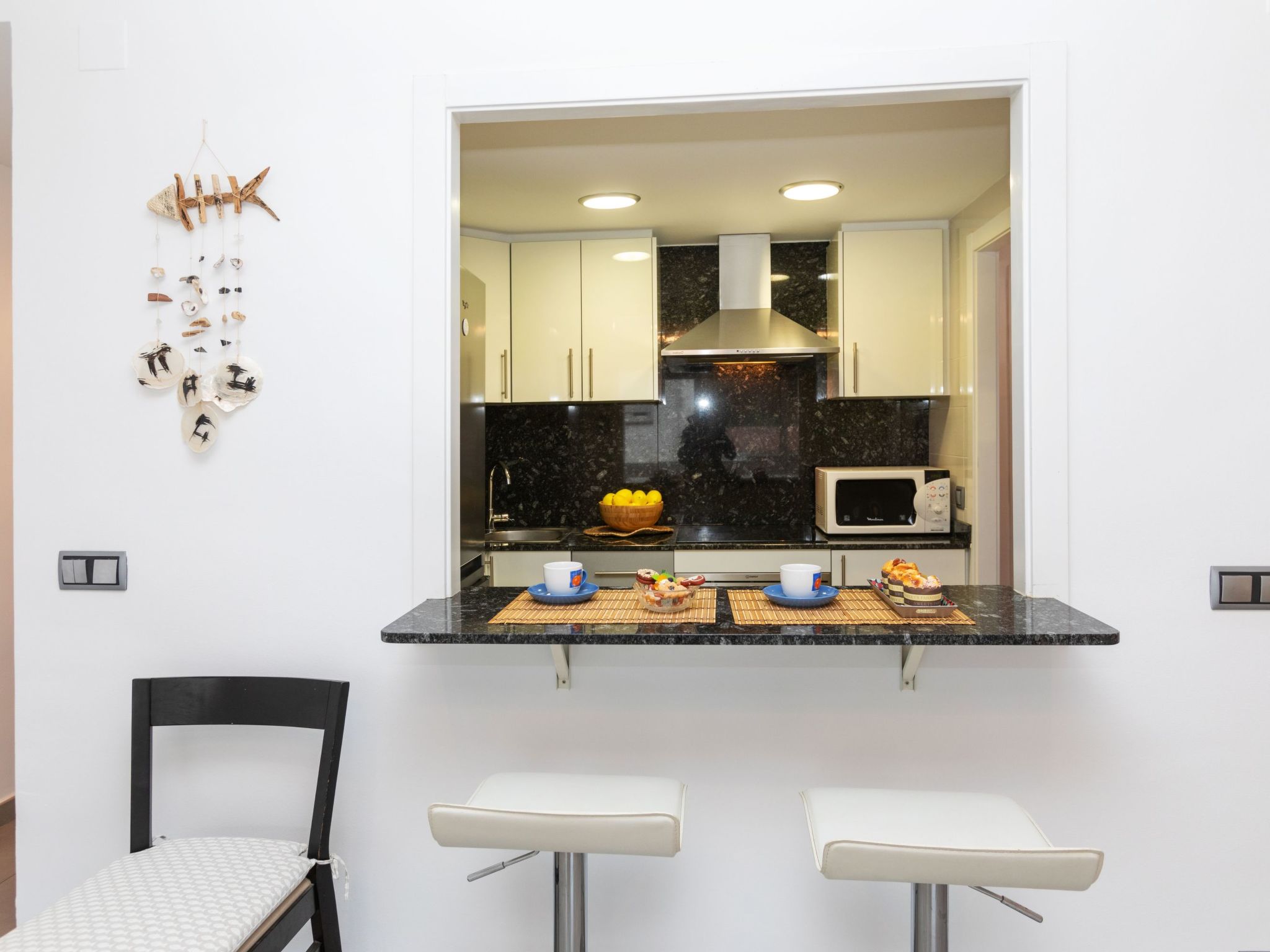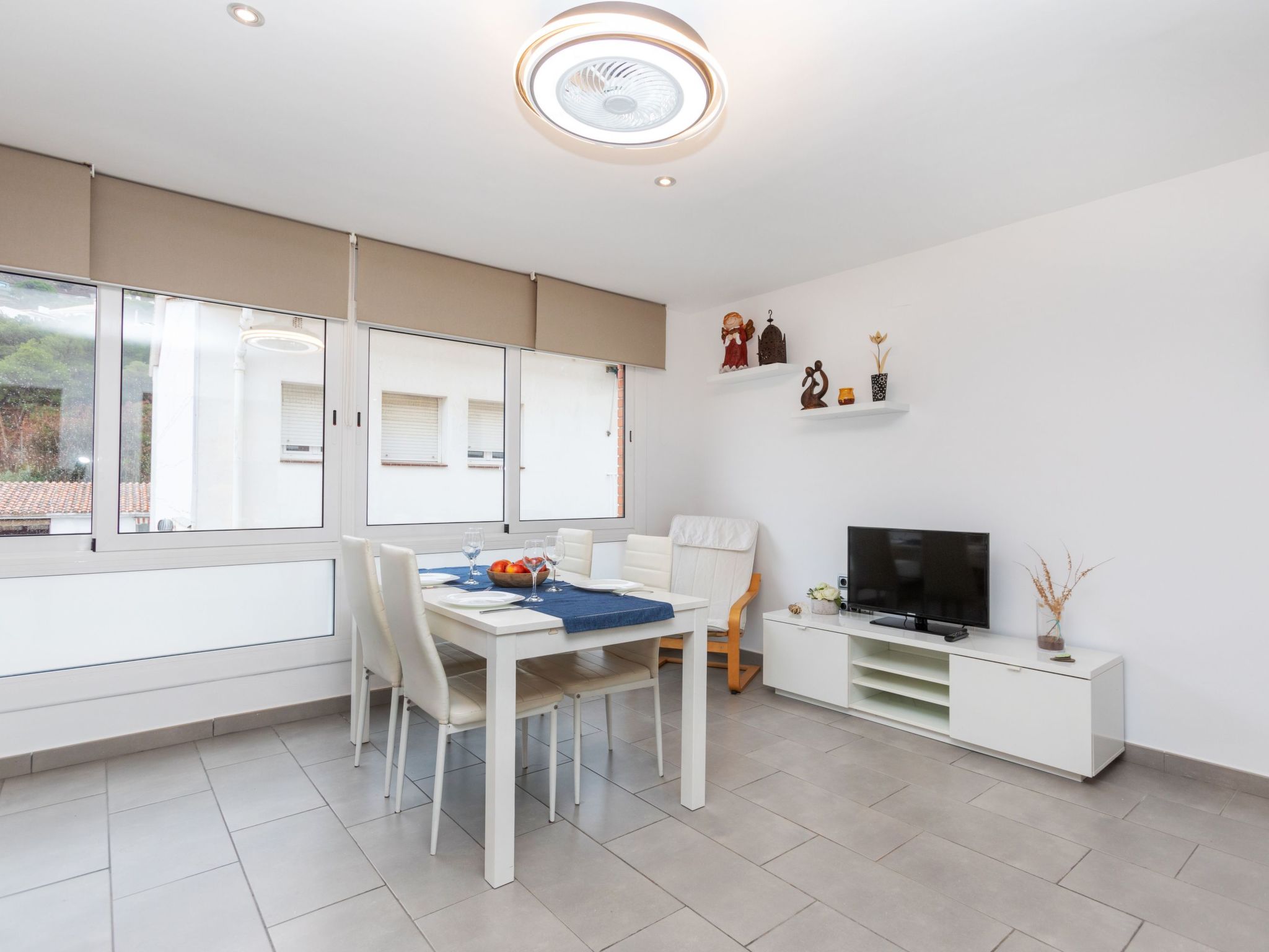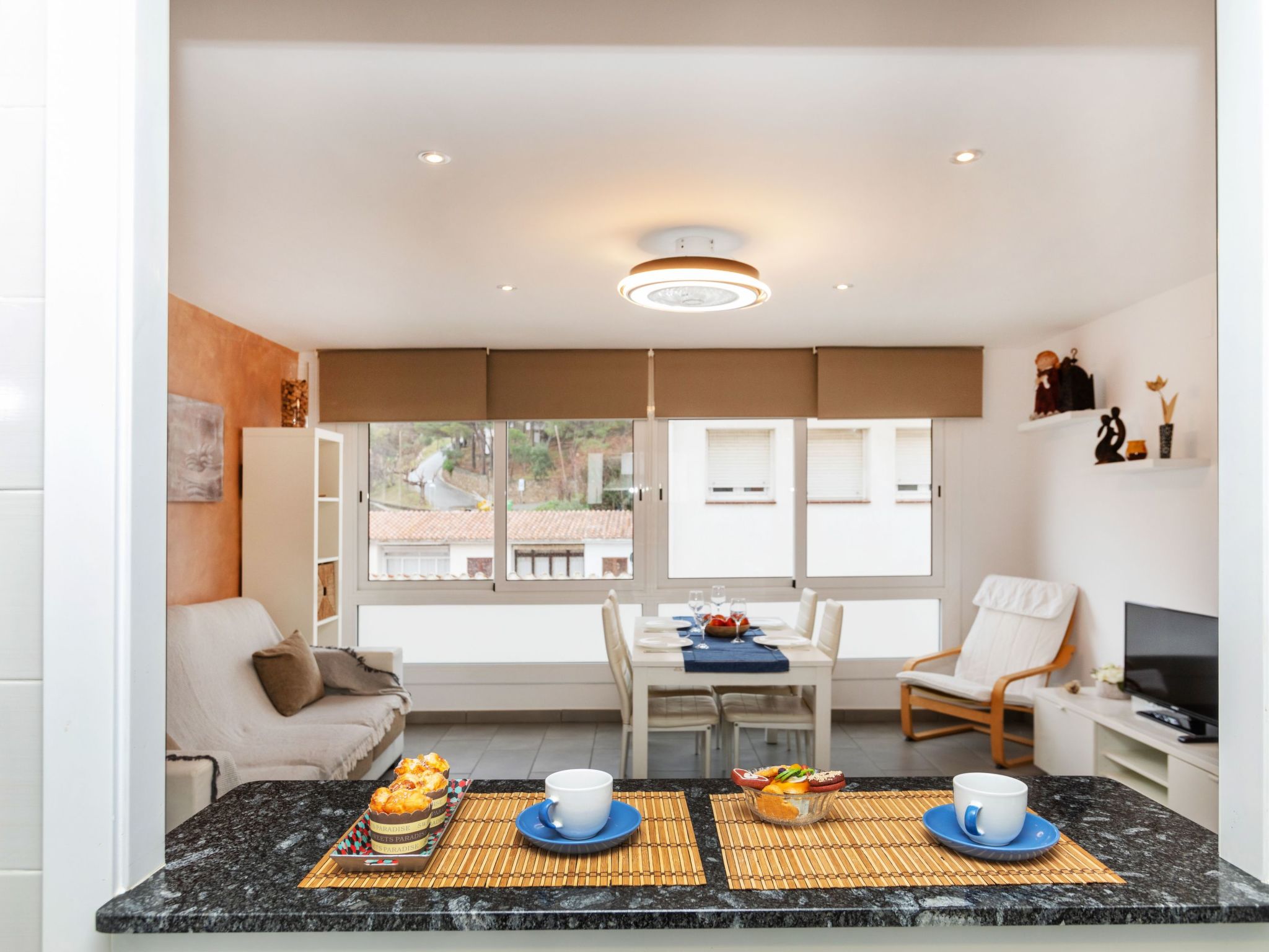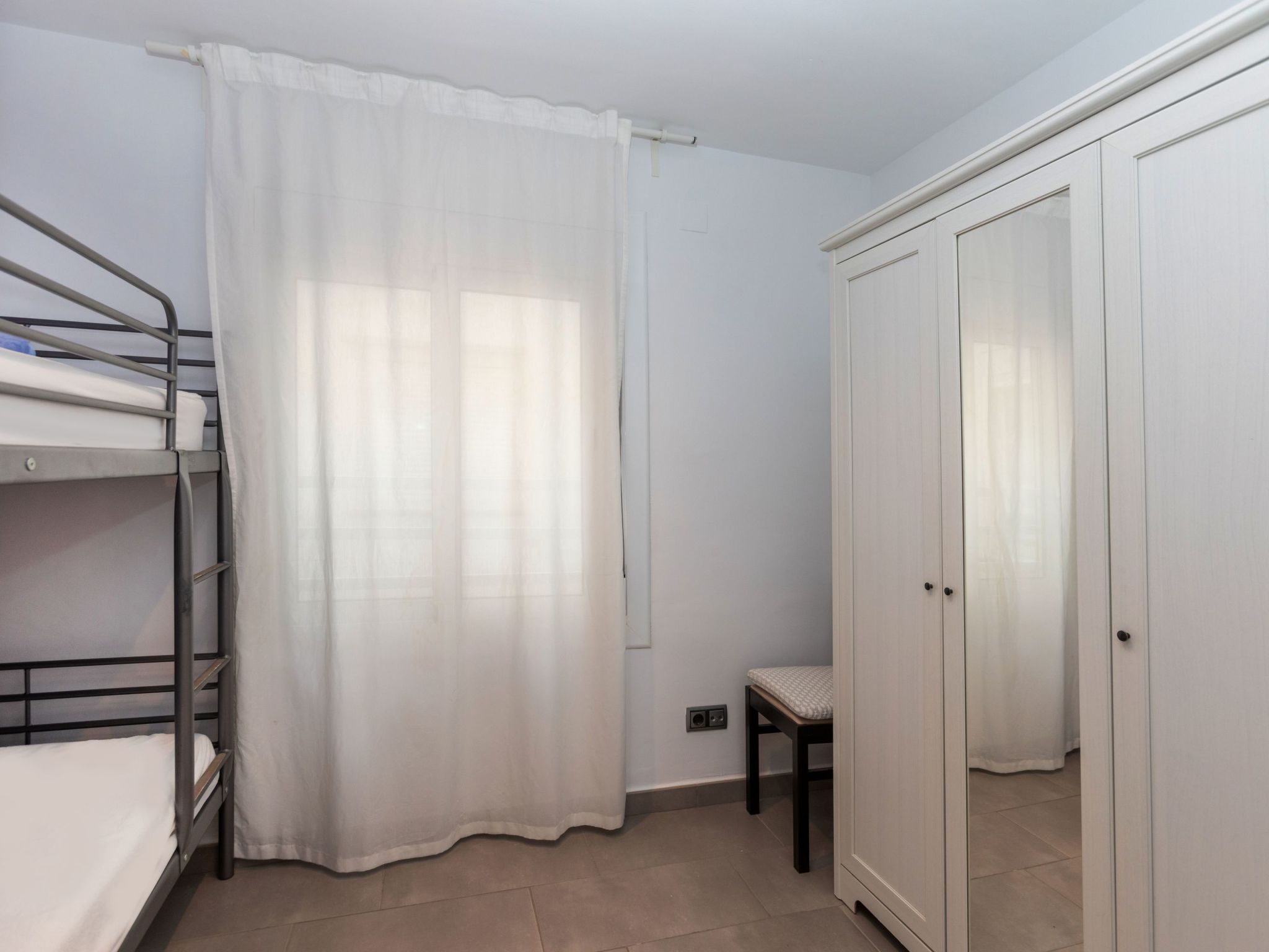 "Pinos", 4-Zimmer-Wohnung 73 m2 im 2. Stock. Zweckmässig und gemütlich eingerichtet: Wohn-/Esszimmer mit TV (Flachbildschirm), Ventilator. 1 Zimmer mit 1 franz. Bett (150 cm). 1 Zimmer mit 1 x 2 Etagenbetten (90 cm). 1 Zimmer mit 1 franz. Bett (1 x 150 cm). Küche (Backofen, 3 Glaskeramikplatten, Toaster, Mikrowelle) mit Durchreiche. Bad/WC. Zur Verfügung: Waschmaschine, Bügeleisen. Internet (WLAN, gratis). Bitte beachten: TV nur ES. HUTG-024040