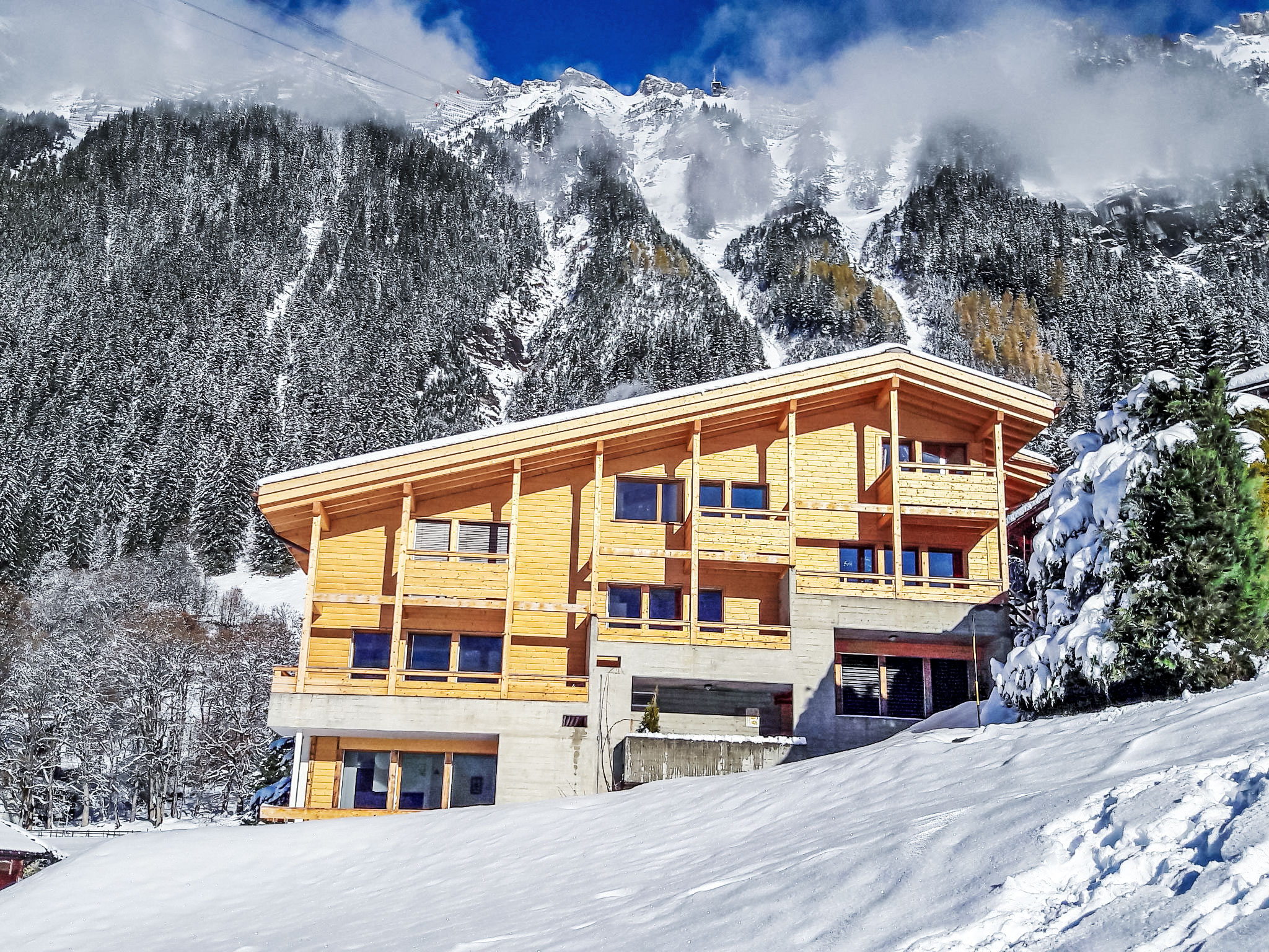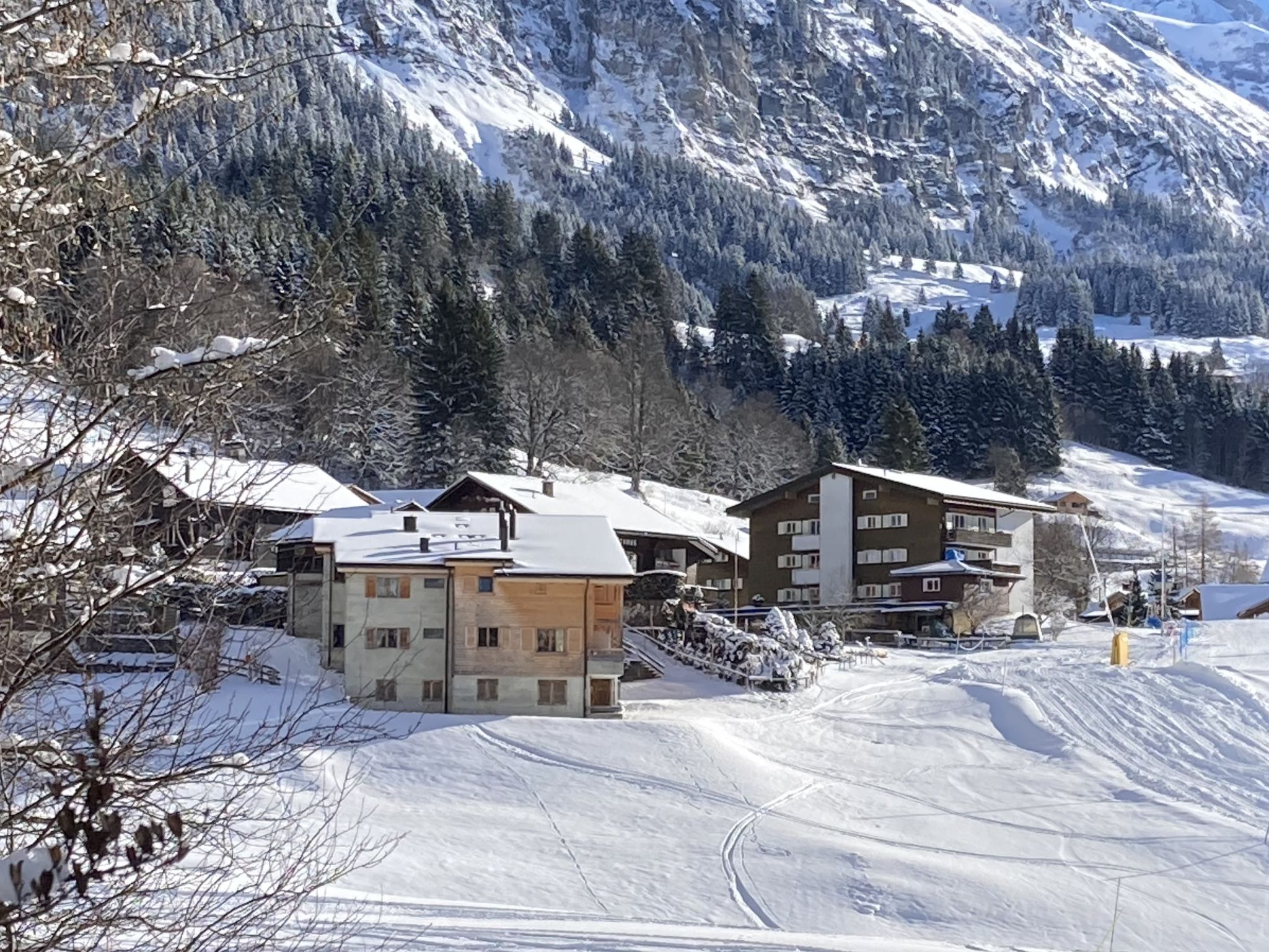 "Apt. 03", 5-Zimmer-Wohnung 96 m2 auf 2 Stockwerken. Objekt geeignet für 4 Erwachsene + 4 Kinder. Renoviert im Jahre 2016, modern und geschmackvoll eingerichtet: Wohn-/Esszimmer mit offenem Kamin, Kabel-TV, Radio, CD und DVD. 1 kleines Zimmer, ohne Schrank mit 2 Betten (90 cm, Länge 200 cm). Offene Küche (Geschirrspüler, 4 Induktionskochplatten, Toaster, Wasserkocher, elektrische Kaffeemaschine, Kapseln für die Kaffeemaschine (Nespresso) extra, Racletteofen, Kombinationsmikrowelle, Fondue Set (Käse)). Dusche/WC. Obergeschoss: 2 Zimmer, jedes Zimmer mit 1 Doppelbett (180 cm, Länge 200 cm). 1 kleines Zimmer, ohne Schrank mit 2 Betten (90 cm, Länge 200 cm). Bad/WC, sep. WC. Parkettböden. 2 Balkone, Westlage. Balkonmöbel. Sehr schöne Sicht auf die Berge, die Skipiste und die Ortschaft. Zur Verfügung: Bügeleisen, Haartrockner, Holz (extra). Internet (Wireless LAN, gratis). Bitte beachten: geeignet für Familien. Nichtraucher-Unterkunft.