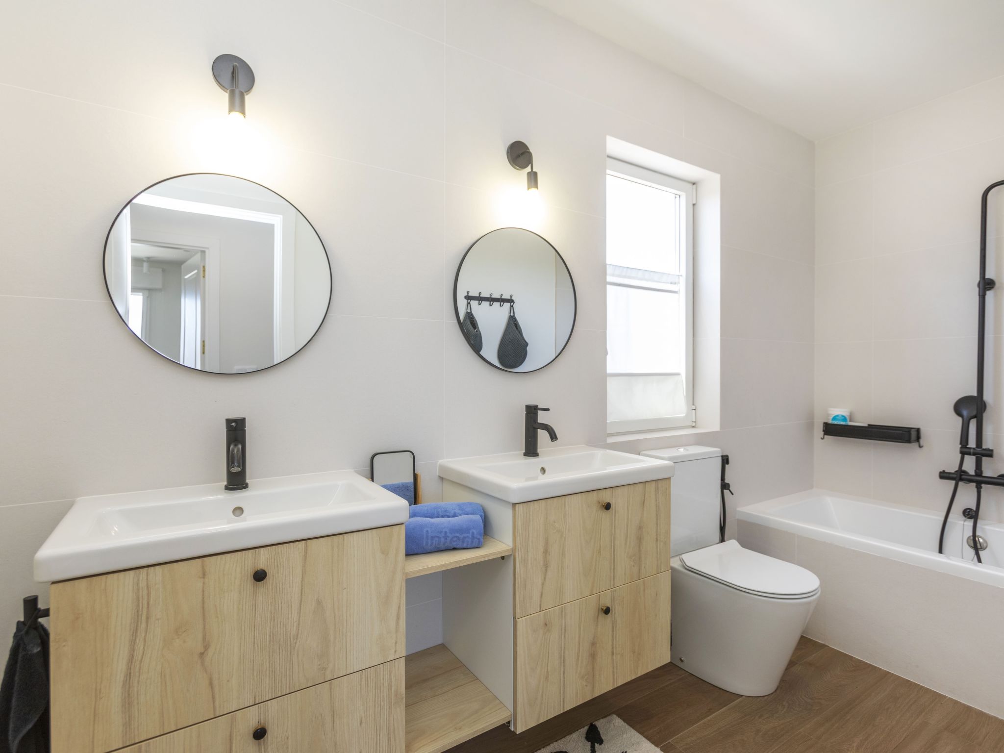 "Les Oliveres", 5-Zimmer-Villa 216 m2 auf 2 Stockwerken. Objekt geeignet für 6 Erwachsene + 2 Kinder. Zweckmässig und komfortabel eingerichtet: Wohn-/Esszimmer mit Esstisch, Digital-TV, Klimaanlage und Warmluftheizung. Ausgang zum Gartensitzplatz, zum Schwimmbad. 1 Zimmer mit 2 Betten (90 cm, Länge 190 cm), Klimaanlage und Warmluftheizung. Grosse Küche (Backofen, Geschirrspüler, 3 Induktionskochplatten, Toaster, Mikrowelle, elektrische Kaffeemaschine). Dusche/WC. Obergeschoss: 1 Zimmer mit 1 franz. Bett (1 x 150 cm, Länge 190 cm), Klimaanlage und Warmluftheizung. 1 Zimmer mit 1 x 2 Etagenbetten (90 cm, Länge 200 cm), Klimaanlage und Warmluftheizung. 1 Zimmer mit 1 franz. Bett (1 x 135 cm, Länge 190 cm), Klimaanlage und Warmluftheizung. 2 Duschen/WC. Gartensitzplatz. Terrassenmöbel, Liegestühle (2). Zur Verfügung: Waschmaschine, Bügeleisen, Kinderhochstuhl, Babybett, Haartrockner. Internet (WLAN, gratis). Parkplatz (eingezäunt, 2 Autos). Bitte beachten: Nichtraucher-Haus. TV nur ES. VT-46903-CS // Reg. Nr.: ESFCTU00001200900028802400000000000000000VT-46903-CS4