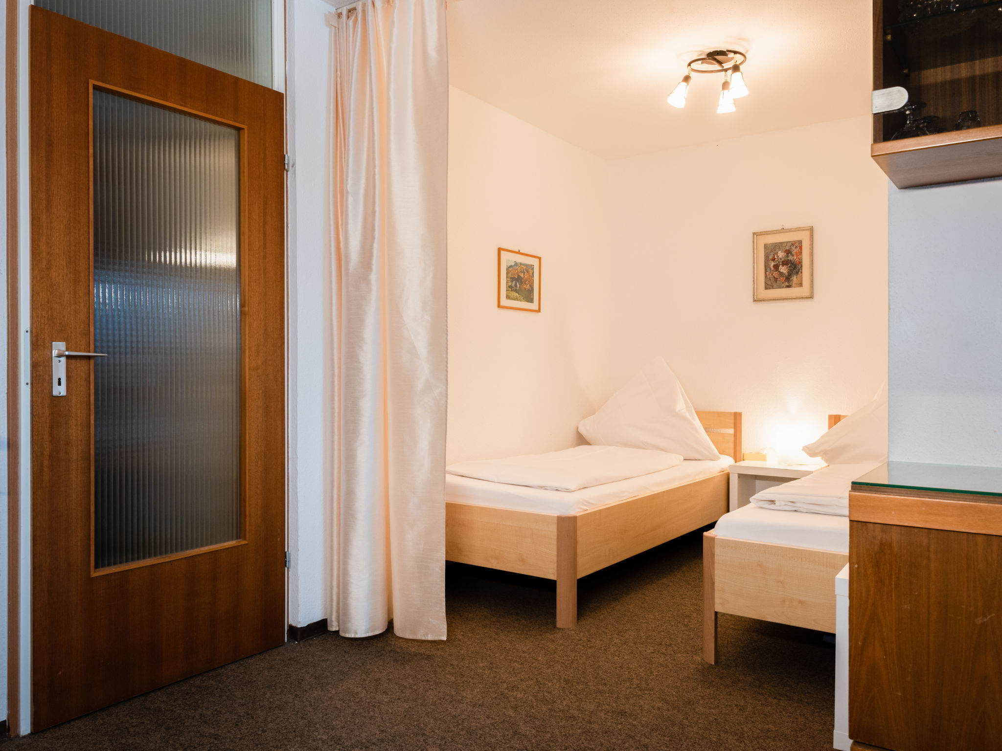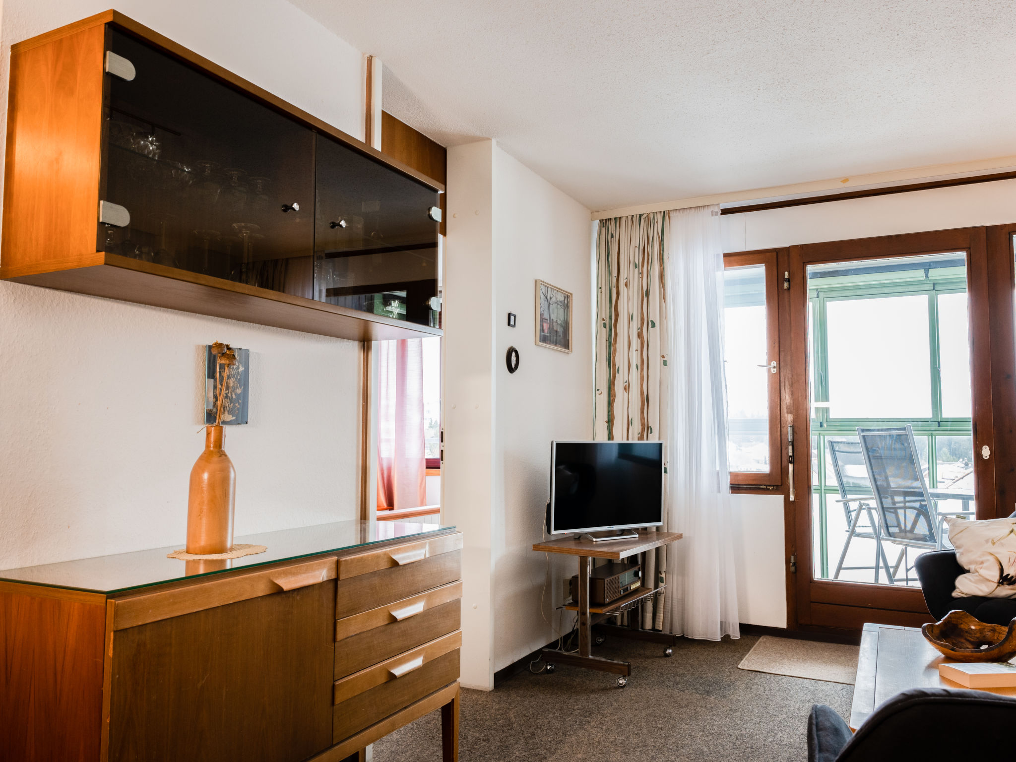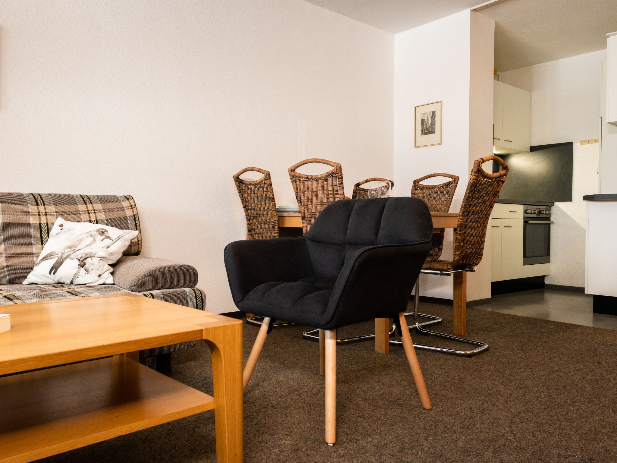 "F 112", 2-Zimmer-Wohnung 54 m2 im 4. Stock. Komfortabel eingerichtet: Wohn-/Esszimmer mit 1 Diwanbett und Sat-TV (Flachbildschirm), Radio. Schlafnische mit Vorhang mit 2 Betten (80 cm, Länge 200 cm). 1 Zimmer mit 1 Doppelbett (2 x 90 cm, Länge 200 cm). Kochnische (Backofen, 4 Glaskeramikherd Platten, Toaster, Wasserkocher, elektrische Kaffeemaschine). Bad/WC. Balkon. Balkonmöbel. Zur Verfügung: Telefon, Kinderhochstuhl (extra). Internet (DSL/LAN, gratis). Bitte beachten: Nichtraucher-Unterkunft. Der Balkon ist verglast.