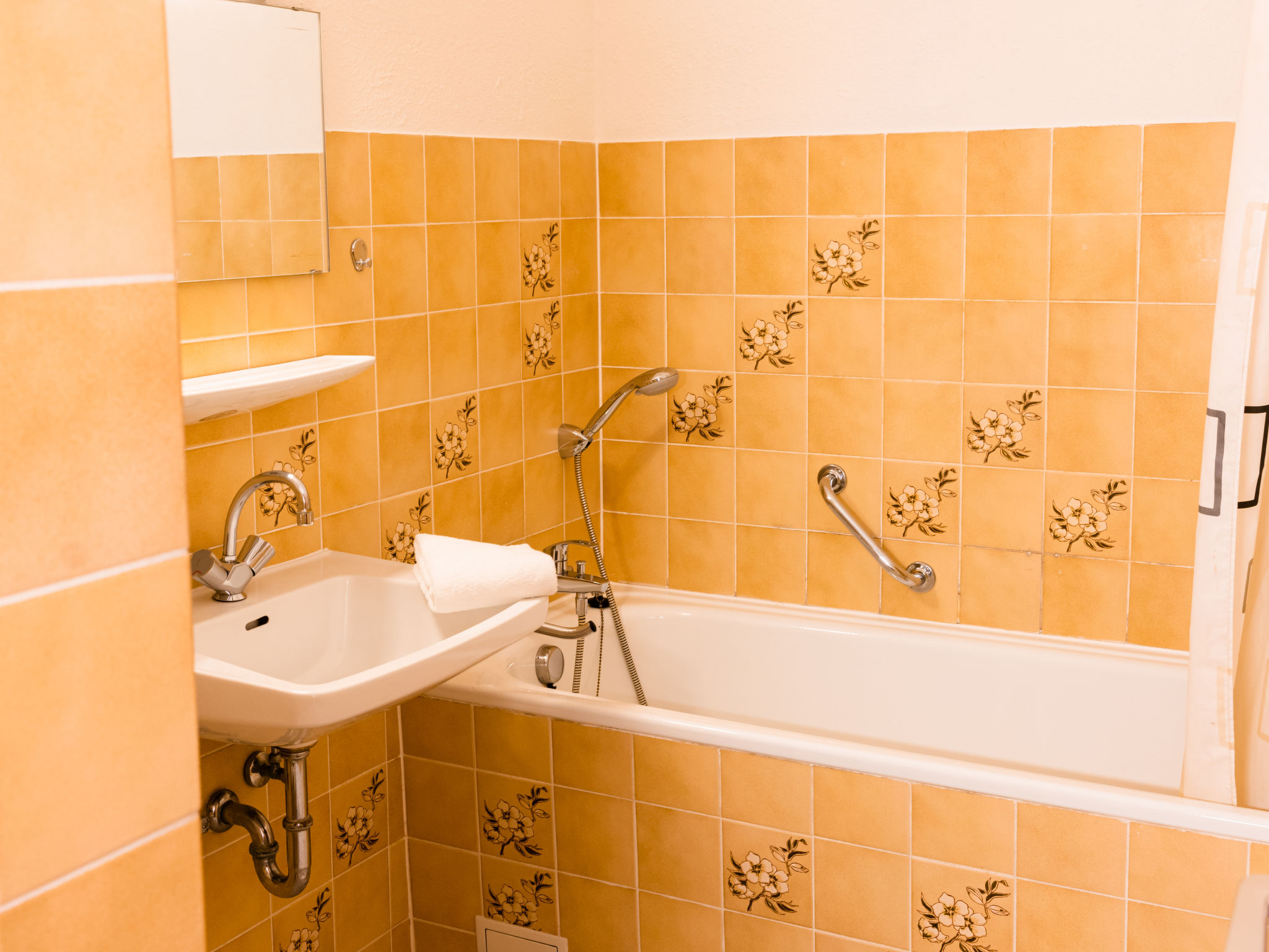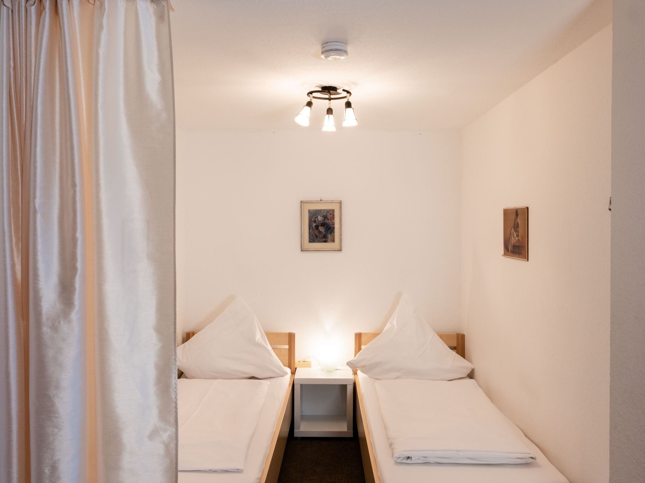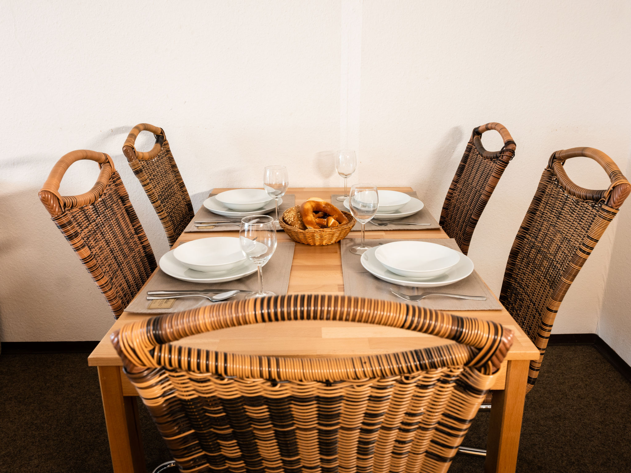"F 112", 2-Zimmer-Wohnung 54 m2 im 4. Stock. Komfortabel eingerichtet: Wohn-/Esszimmer mit 1 Diwanbett und Sat-TV (Flachbildschirm), Radio. Schlafnische mit Vorhang mit 2 Betten (80 cm, Länge 200 cm). 1 Zimmer mit 1 Doppelbett (2 x 90 cm, Länge 200 cm). Kochnische (Backofen, 4 Glaskeramikherd Platten, Toaster, Wasserkocher, elektrische Kaffeemaschine). Bad/WC. Balkon. Balkonmöbel. Zur Verfügung: Telefon, Kinderhochstuhl (extra). Internet (DSL/LAN, gratis). Bitte beachten: Nichtraucher-Unterkunft. Der Balkon ist verglast.