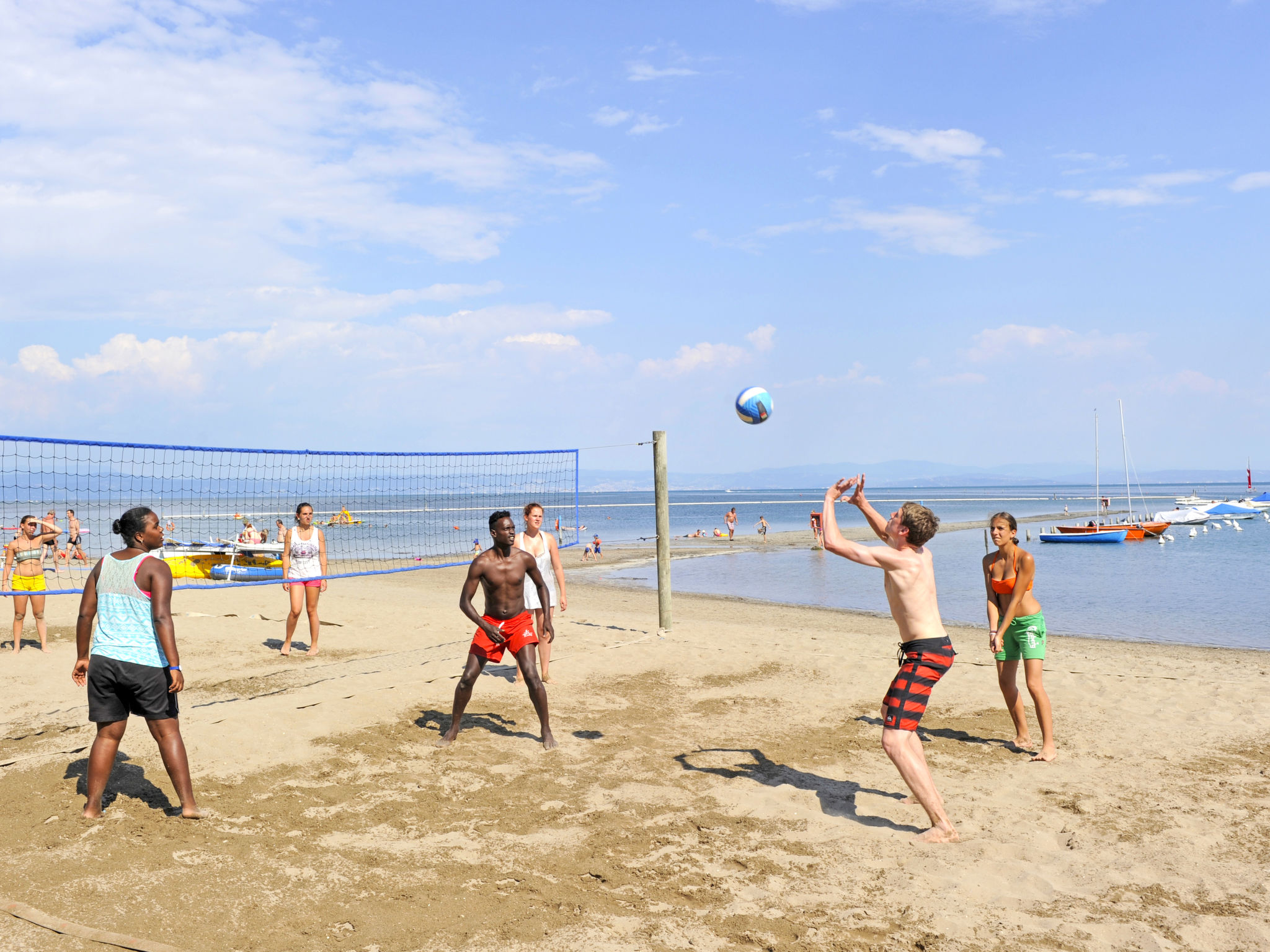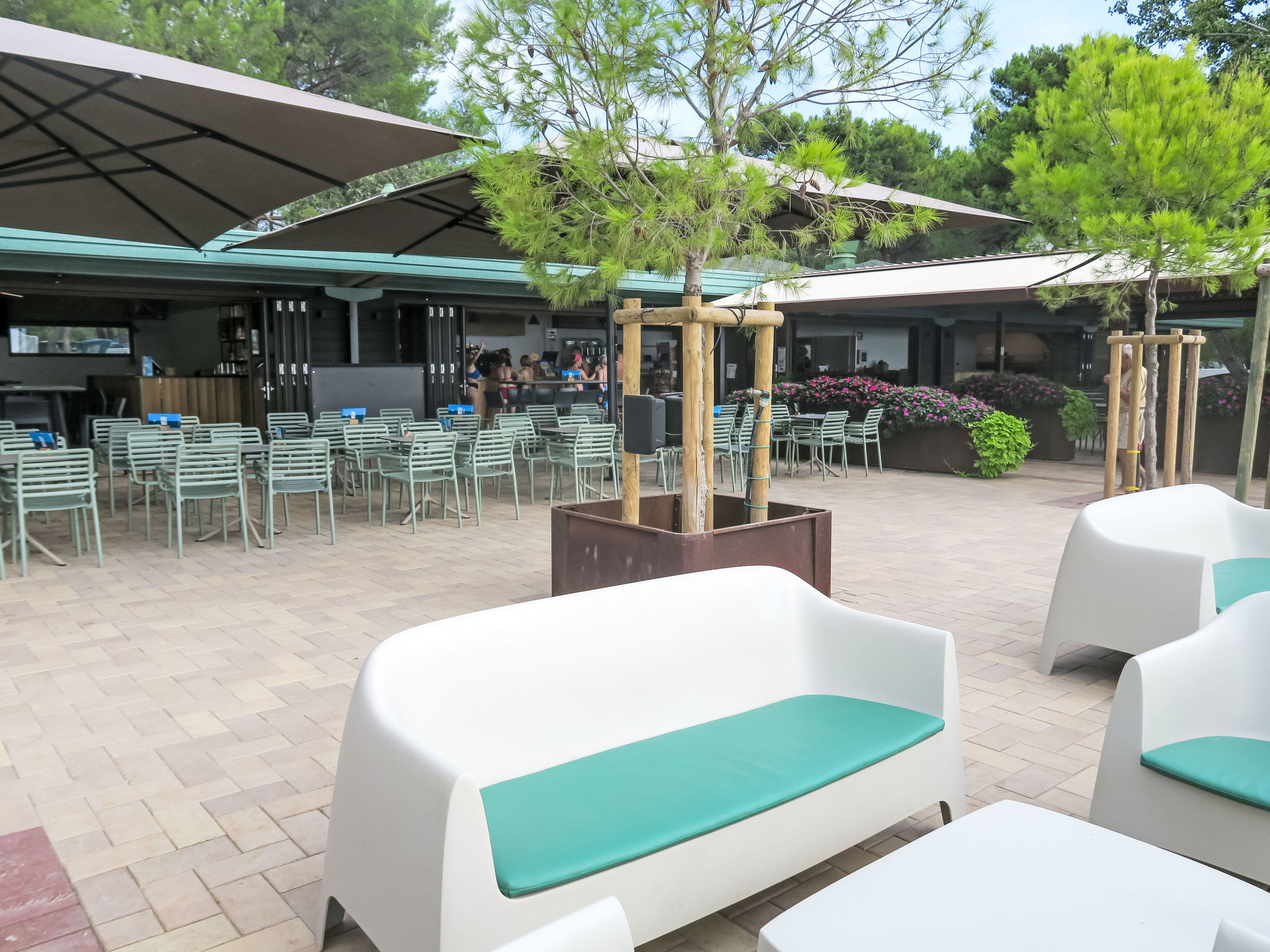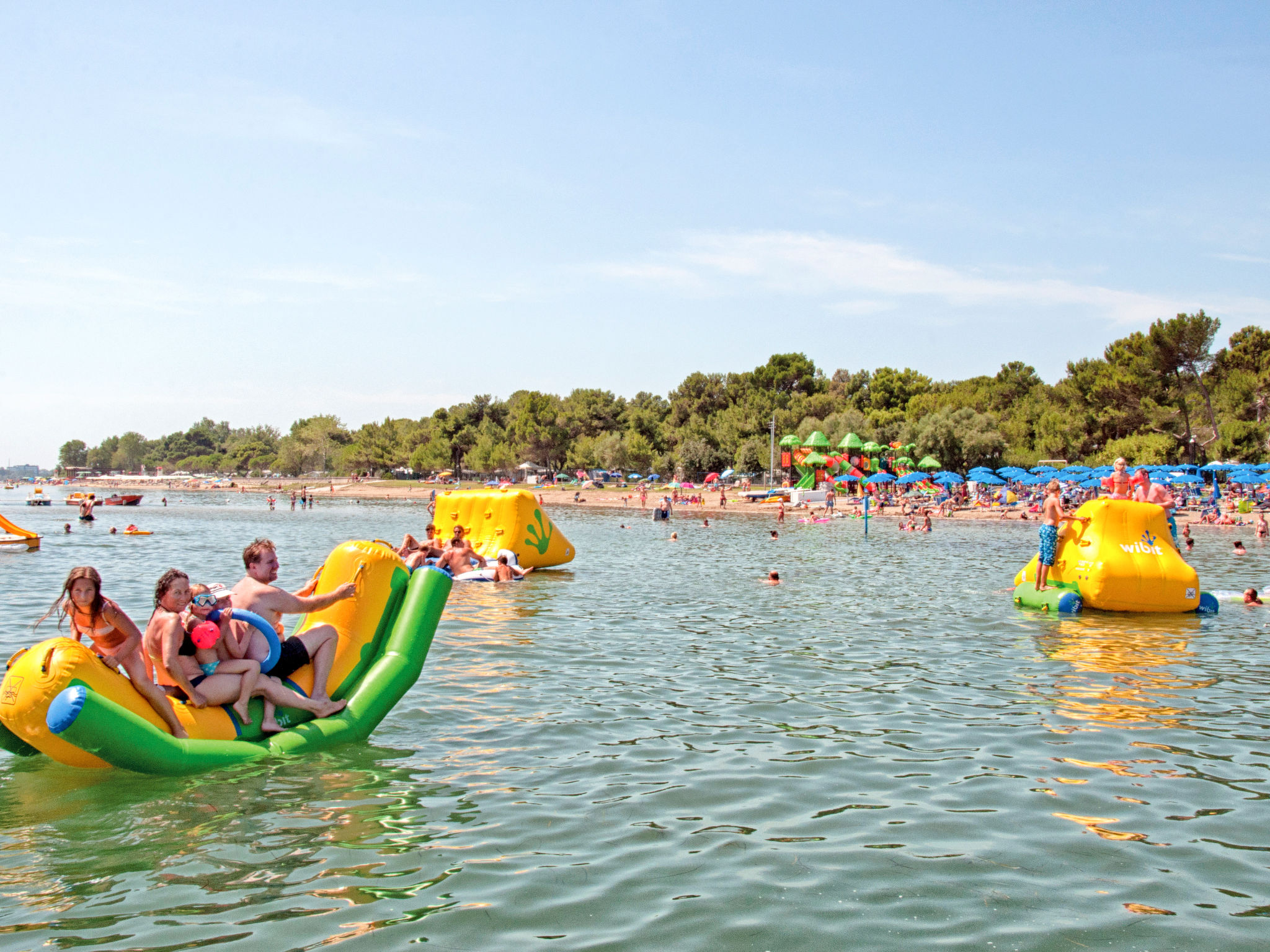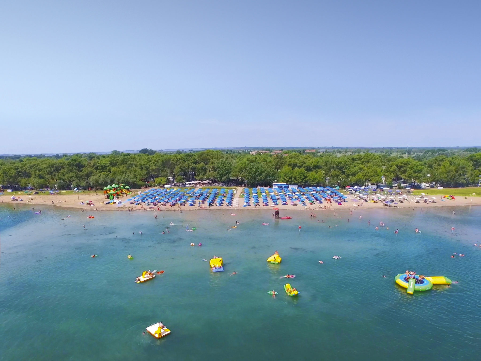 Grado: Sehr grosses, kinderfreundliches Feriendorf "Camping Europa 4*". 5 km vom Zentrum von Grado, 50 km vom Zentrum von Trieste, 130 km vom Zentrum von Venezia, 20 m vom Meer, direkter Zugang zum Strand. Zur Mitbenutzung: Grundstück 22 ha (eingezäunt) mit Pflanzen und Bäumen, Schwimmbad (1'500 m2, saisonale Verfügbarkeit: 23.Apr. - 27.Sep.). WC im Poolbereich, Kinderbecken, Rutschbahn, Aussendusche, Tennis (1 x Hartbelag), beleuchtet (extra), Tischtennis, Beachvolleyball, Kinderspielplatz. In der Anlage: Restaurant, Bar, Bistro, Internetzugang, Wireless LAN, Einkaufsmöglichkeit, Kiosk, Waschmaschine, Wäschetrockner (zur Mitbenutzung, extra). Bushaltestelle 500 m, Bahnstation "Airport Station Trieste" 20 km. Nahe gelegene Sehenswürdigkeiten: Castello di Duino 25 km, Riserva Naturale della Foce dell'Isonzo 14 km, Aquileia 16 km, Castello Miramare 40 km, Redipuglia 20 km, Collio 35 km. Bitte beachten: Animation. Geeignet für Familien. Das Armband "electronic watch" ist im Mietpreis inbegriffen. Es ist ausschließliches Zahlungsmittel im Feriendorf und kann online oder während der Kassenstunden mit Bargeld oder mit der Kreditkarte aufgeladen werden. Strandservice 2 Sonnenliegen und 1 Sonnenschirm pro Ferienhaus (23.04.-27.09.) im Mietpreis eingeschlossen. Animation 23.04.-27.09.).