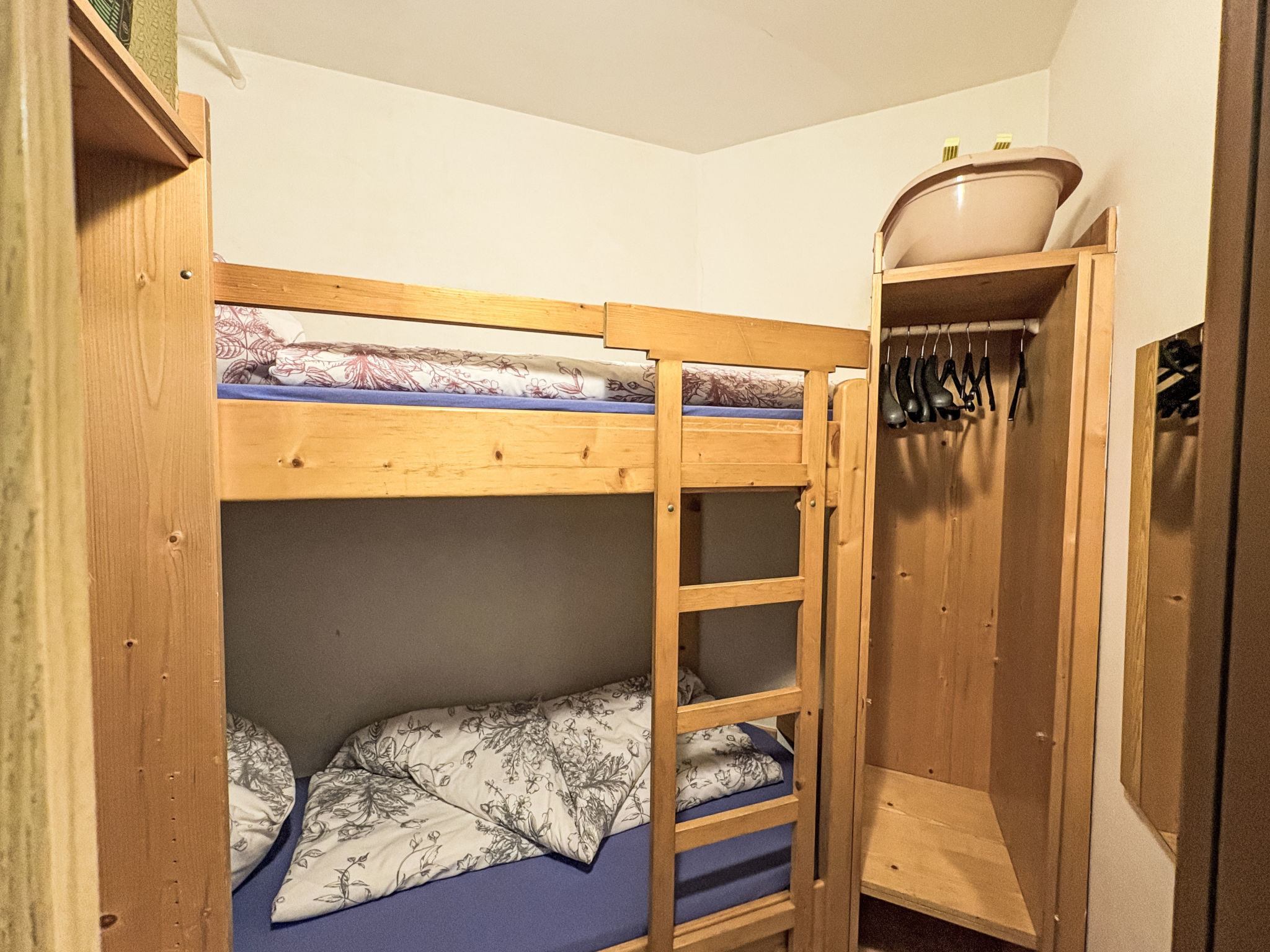 2-Zimmer-Wohnung 42 m2, im Erdgeschoss. Objekt geeignet für 2 Erwachsene + 2 Kinder. Einfach und gemütlich eingerichtet: Wohn-/Schlafzimmer mit 2 Wandklappbetten (90 cm, Länge 200 cm), Essecke und Kabel-TV (Flachbildschirm), Radio. Ausgang zur Loggia. Kabine mit 1 x 2 Etagenbetten. Offene Küche im Eingang (4 Kochplatten, Backofen). Bad/WC. Balkon, Südlage und Ostlage. Balkonmöbel. Seitliche Sicht auf die Landschaft. Zur Verfügung: Internet (Wireless LAN, gratis). Maximal 1 Haustier/Hund erlaubt. 50408-000602-2021