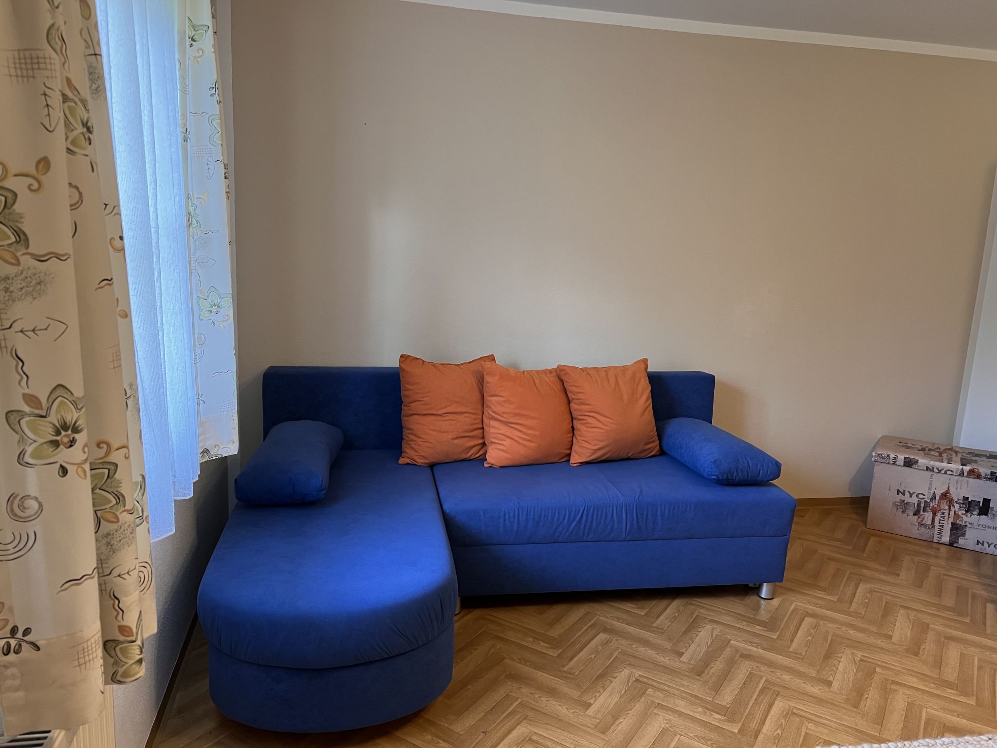3-Zimmer-Wohnung, 1. Etage, ca. 70 m². Flur mit Garderobe. Wohnküche (4 Platten, Backofen, Geschirrspüler, Kühlschrank, Kaffeemaschine, Wasserkocher) mit Essplatz, Sitzcouch. Schlafzimmer mit Doppelbett und Einzelbett. Schlafzimmer mit Doppelbett und Bettcouch. Abstellraum. Bad/Dusche. Sep.WC. REG.NR.:50616-001093-2020