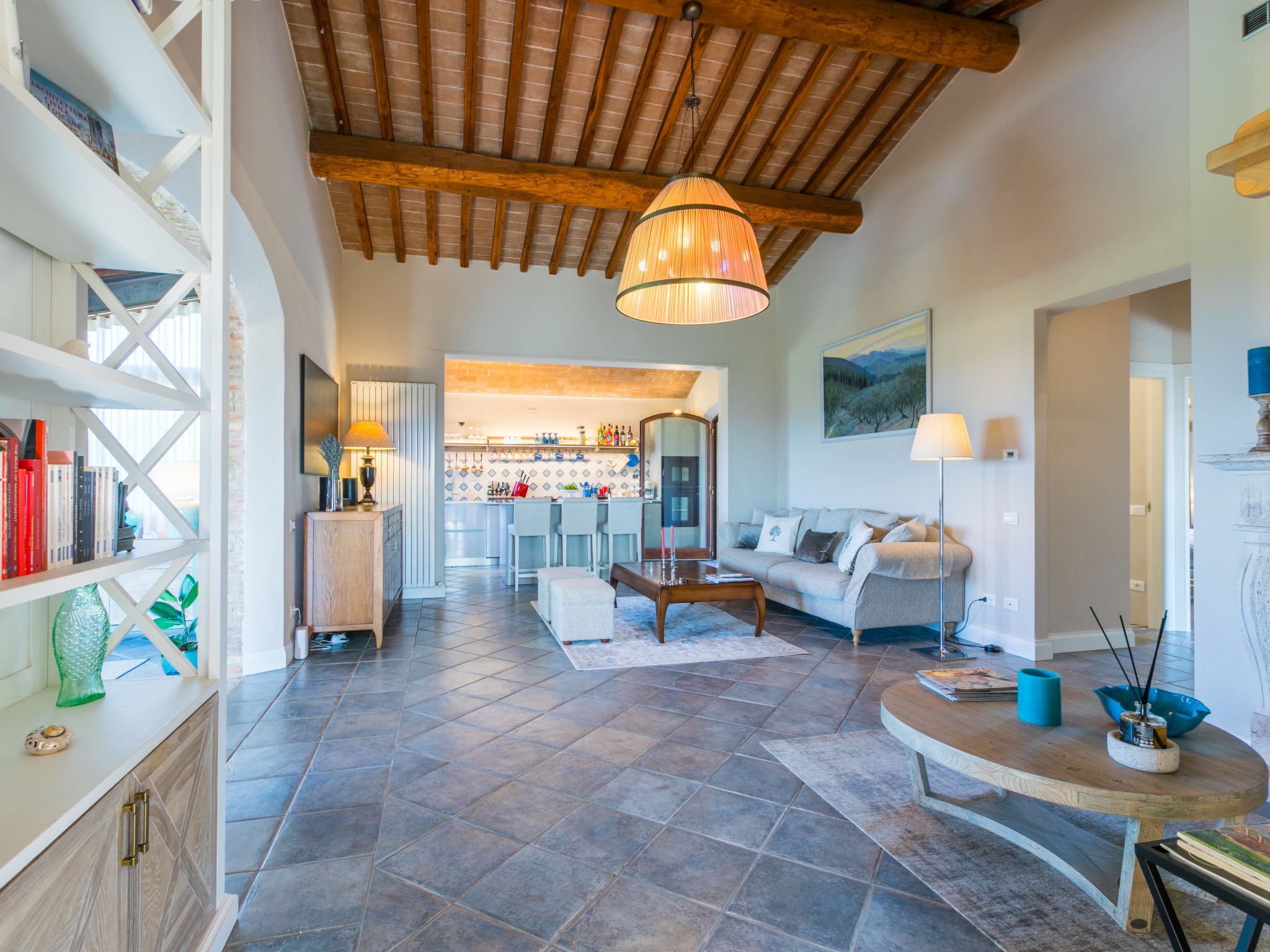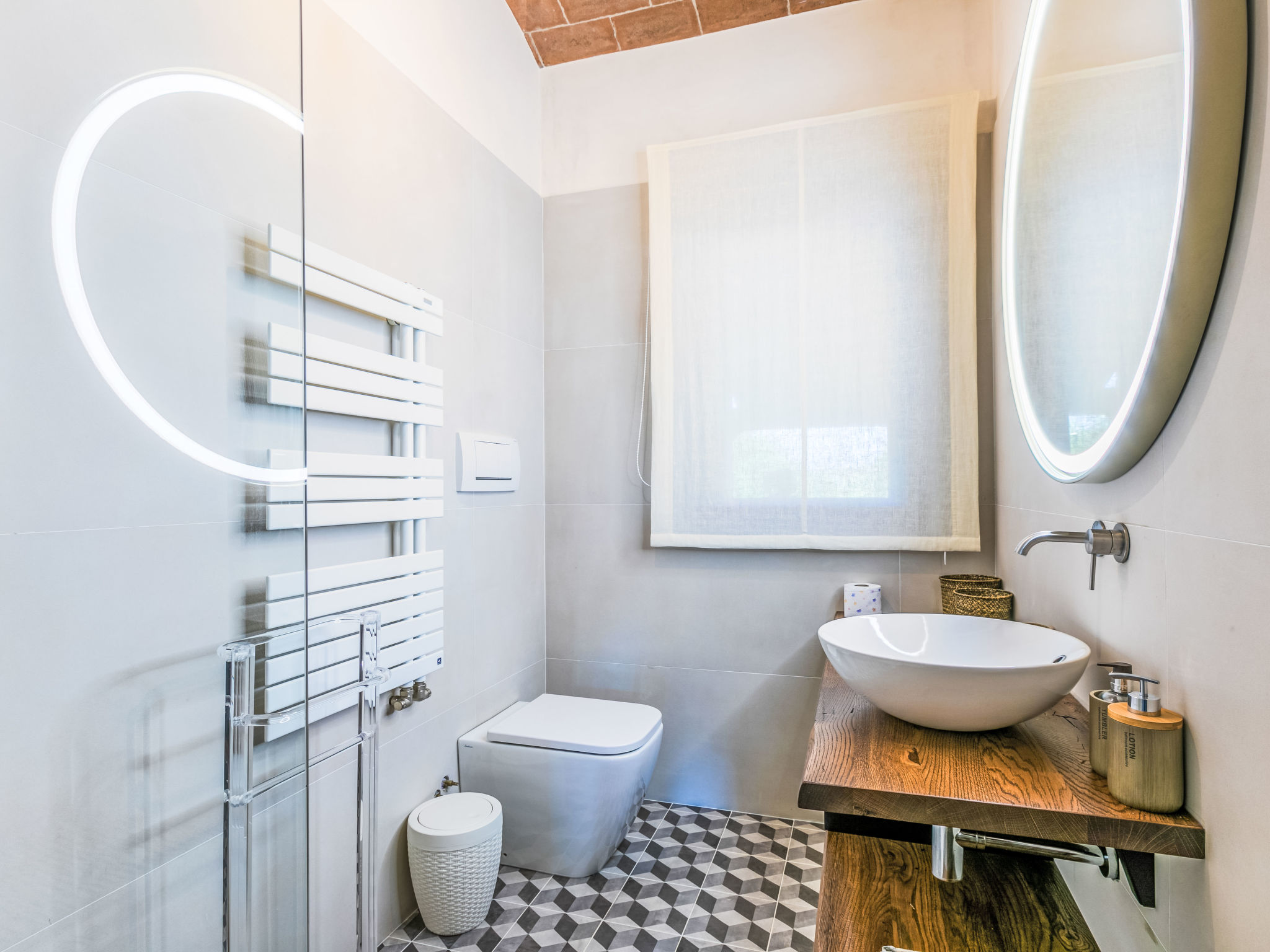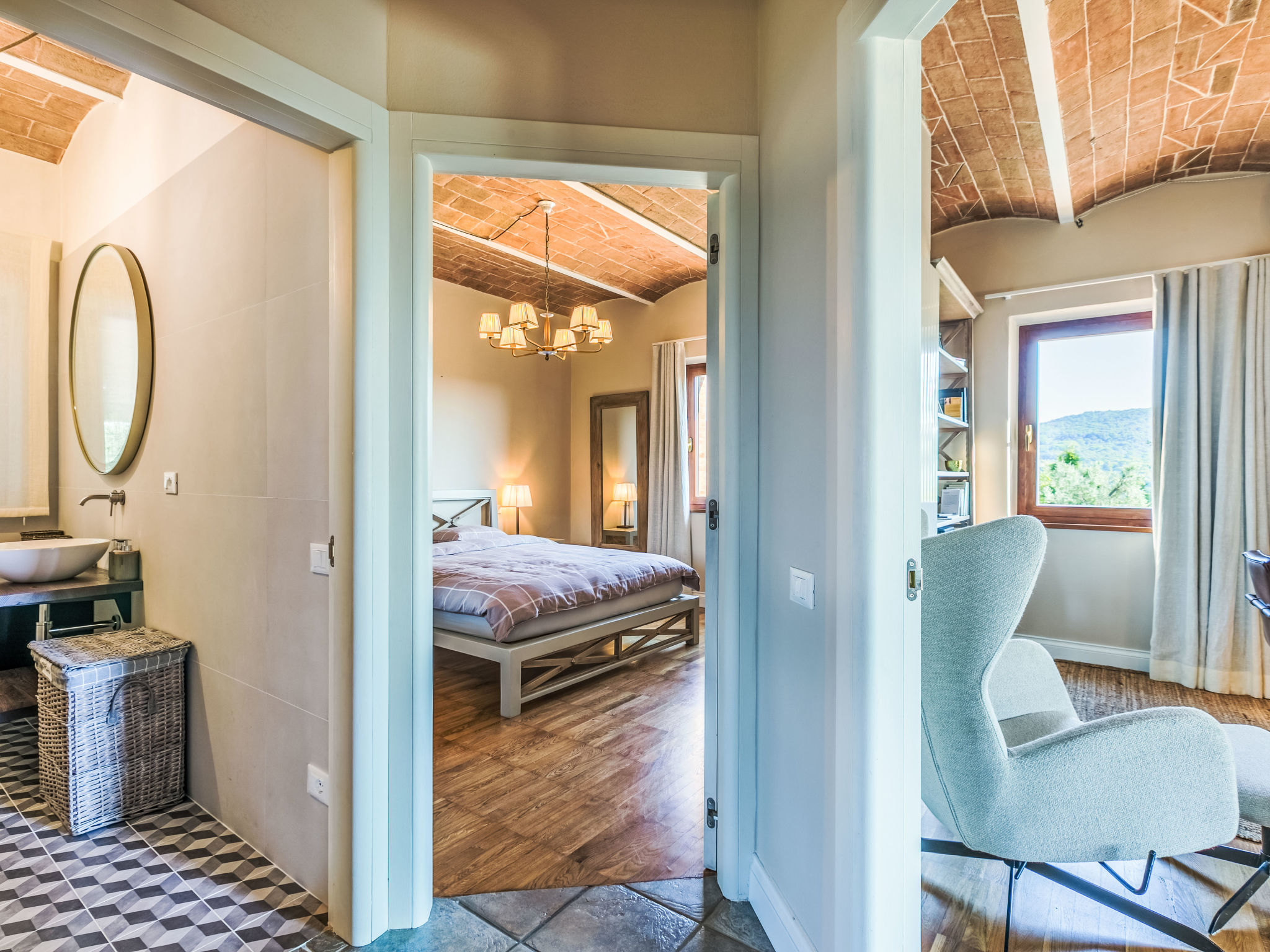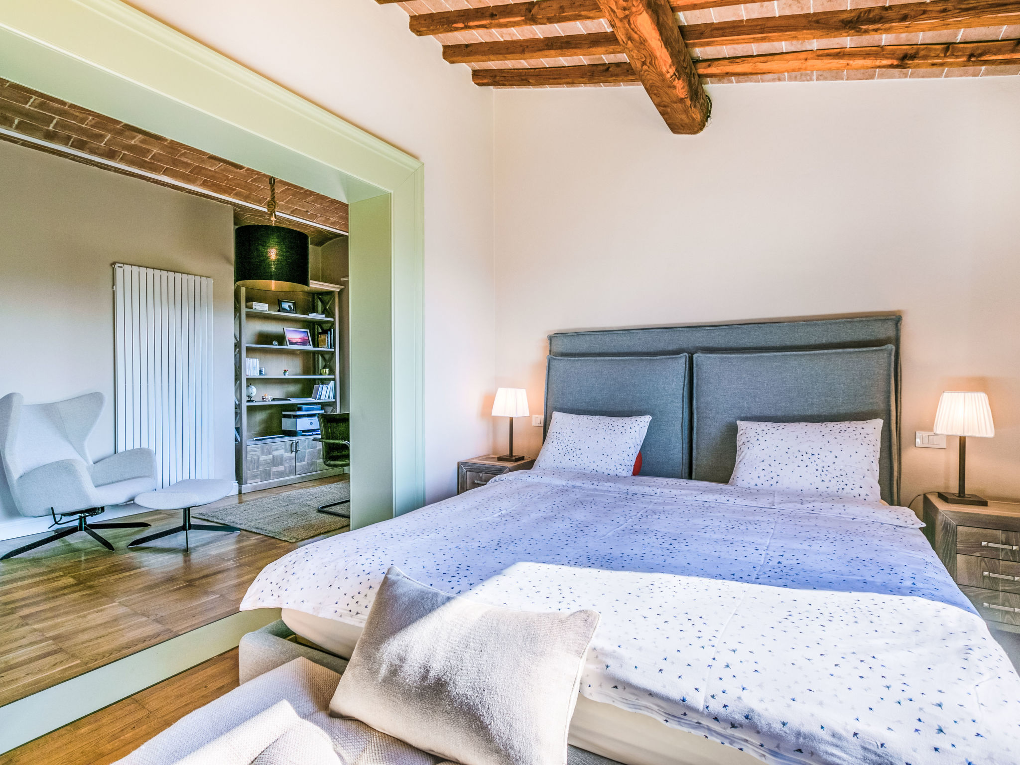 Rustico "Podere Boscherini", umgeben von Bäumen und Wiesen. Mietobjekt bestehend aus Haupt- und Nebengebäude, 3 km vom Zentrum von Riparbella, alleinstehende, erhöhte Lage, 14 km vom Meer, 14 km vom Strand. Zur Alleinbenutzung: gepflegter Garten (nicht eingezäunt), Liegewiese, Schwimmbad (12 x 6 m, 120 - 200 cm tief, saisonale Verfügbarkeit: 01.Apr. - 31.Okt.) mit Innentreppe. Aussendusche, Gartenmöbel, Grill. Wäschewechsel (zusätzlich extra). Handtuchwechsel (zusätzlich extra). Parkplatz beim Haus. Einkaufsgeschäft 4 km, Lebensmittelgeschäft 4 km, Restaurant 2 km, Bushaltestelle "La Melatina" 2 km, Thermalbad "Calidario" 45 km. Jacht-Hafen 16 km, Golfplatz (9 Loch) 20 km. Nahe gelegene Sehenswürdigkeiten: Bolgheri 25 km, Volterra 30 km, Pisa 60 km, Firenze 100 km. Der Besitzer akzeptiert keine Jugendgruppen.